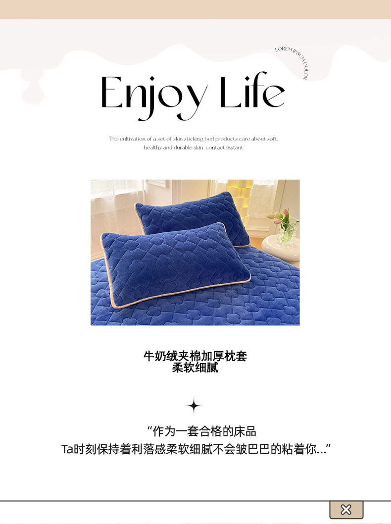 商品名称:新款冬季牛奶绒夹棉枕套加厚加绒亲肤柔软枕芯套 深海蓝