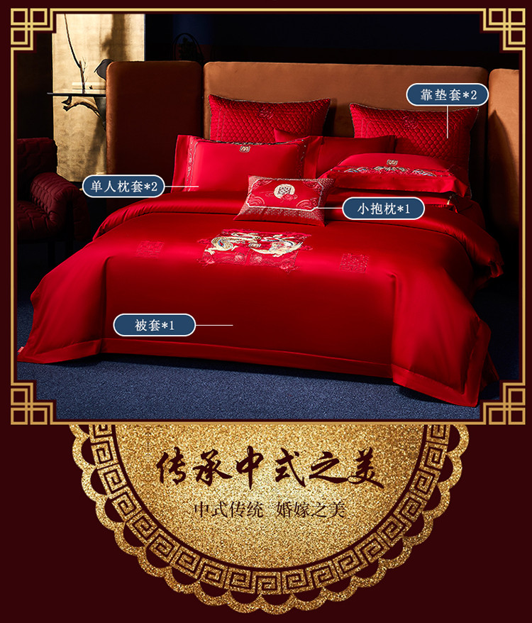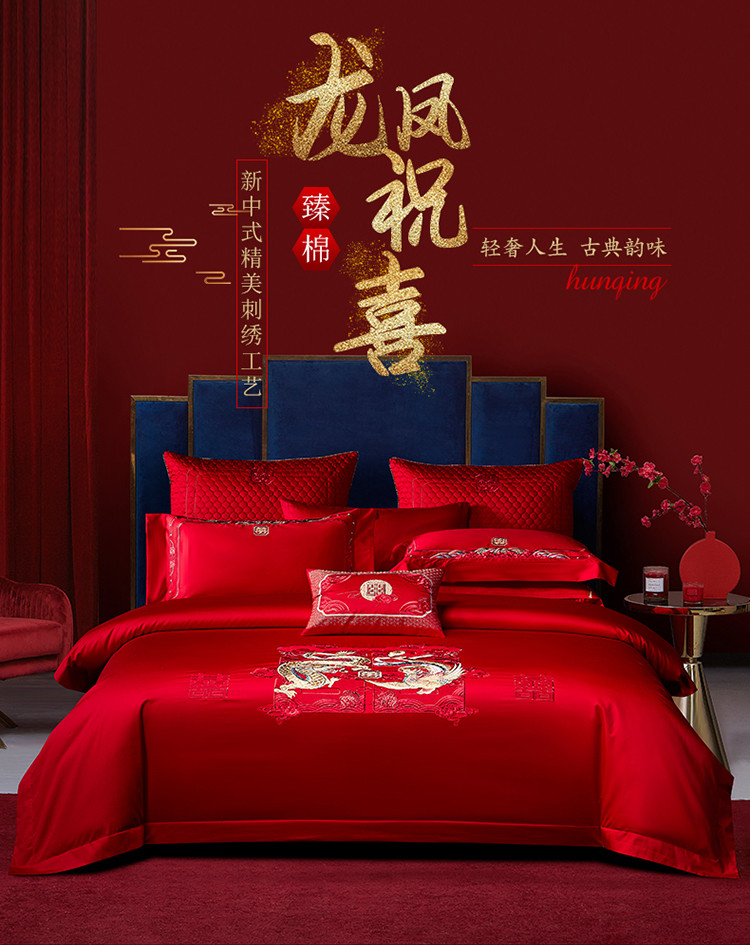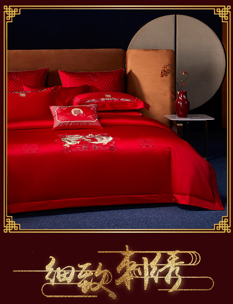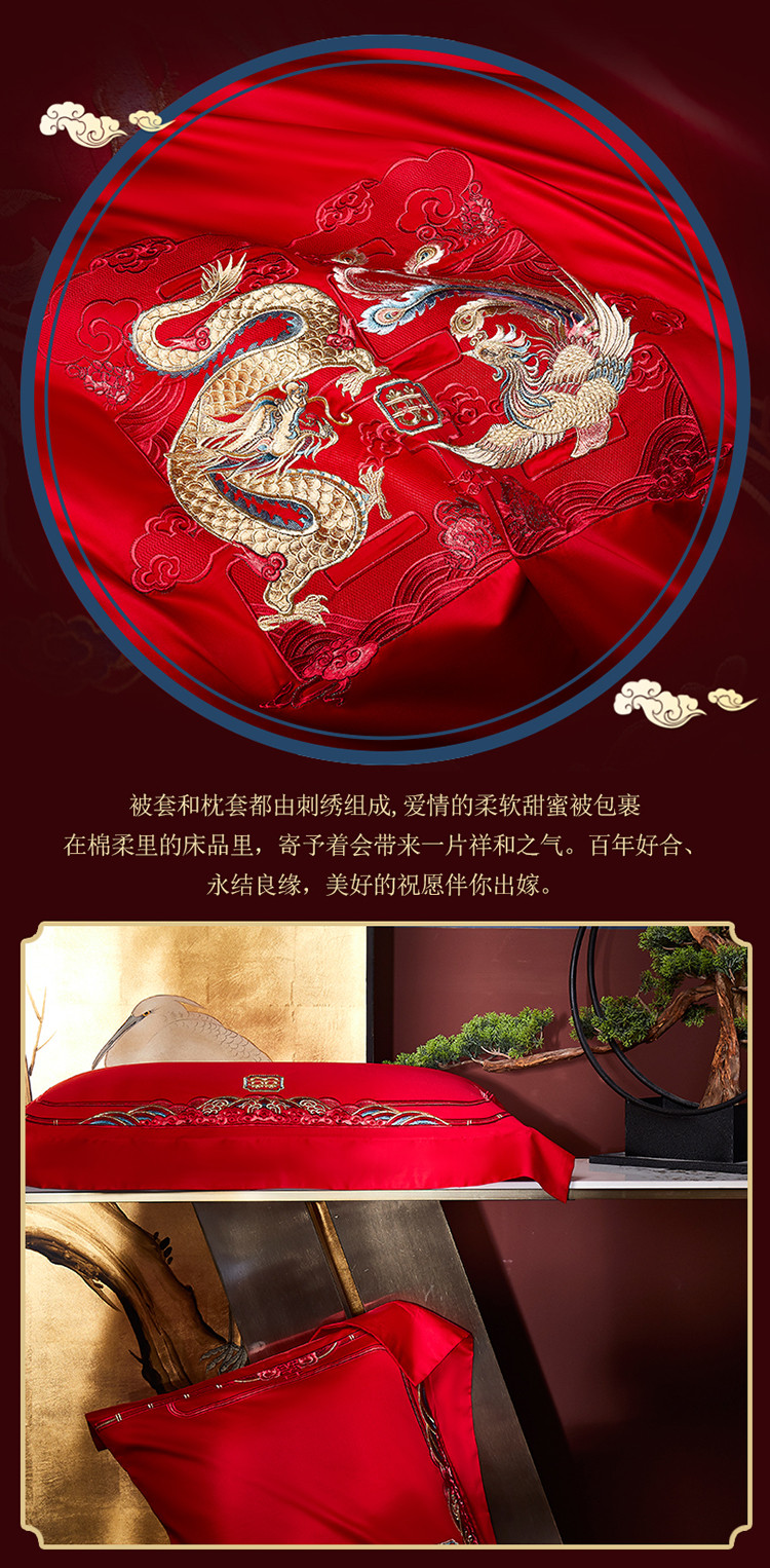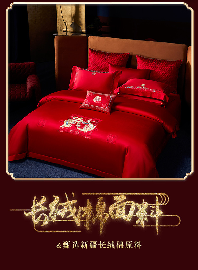 当前位置: 91家纺网 > 商品网购 > 床品套件 > 四件套 > 全棉普通四件套 > 高大尚 2023秋冬新品长绒棉臻棉系列四件套 龙凤祝喜