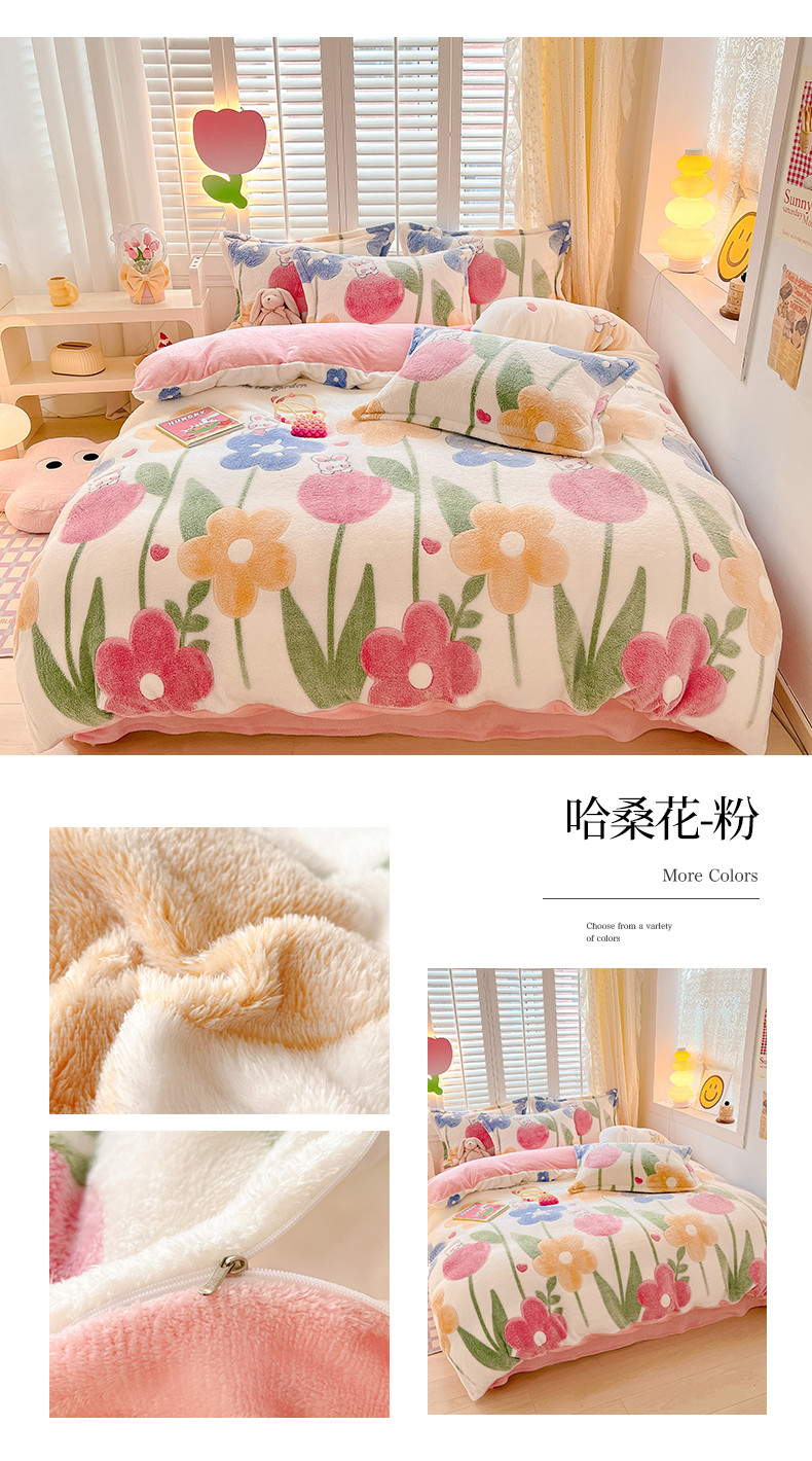 当前位置: 91家纺网 > 商品网购 > 床品套件 > 四件套 > 磨绒四件套 > 川悦生活 2023新款立体雪花绒四件套 哈桑花-粉