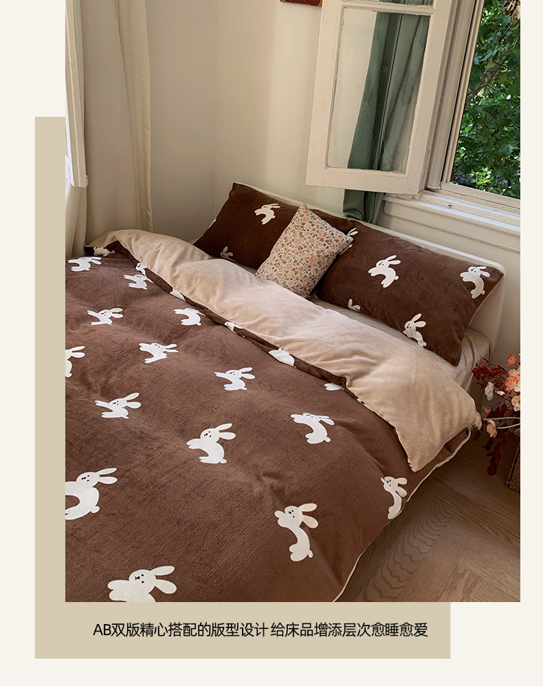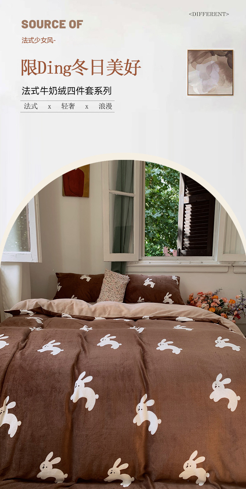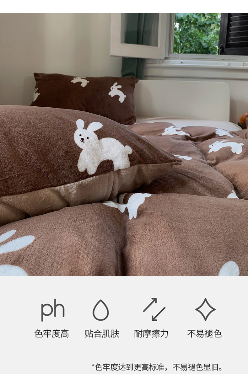 商品名称:花沐 2023新款冬季复古小法式牛奶绒四件套 咖兔先生