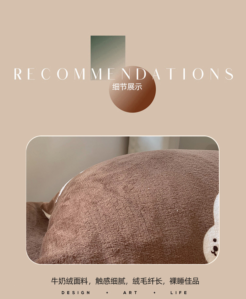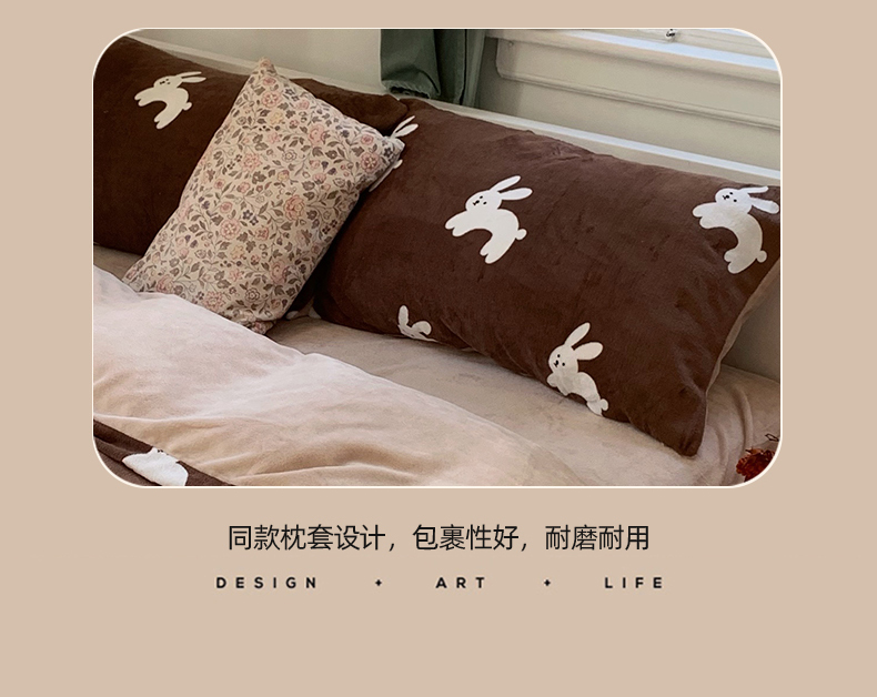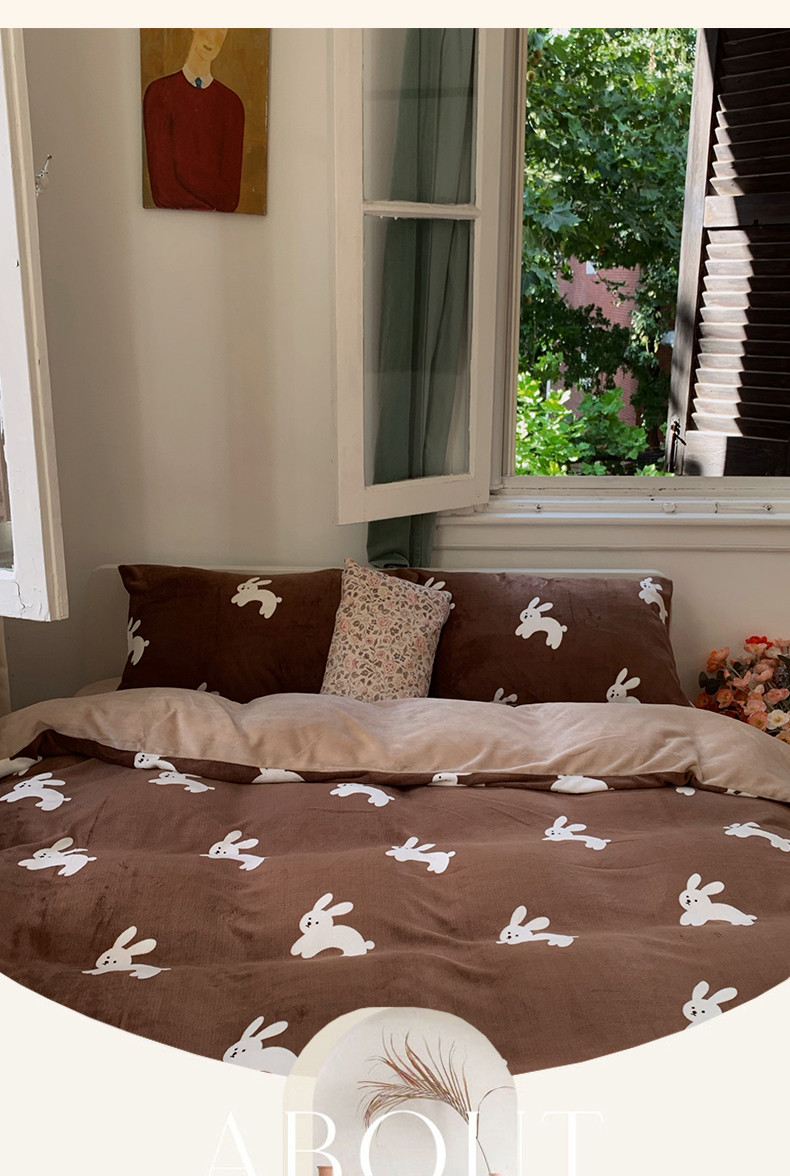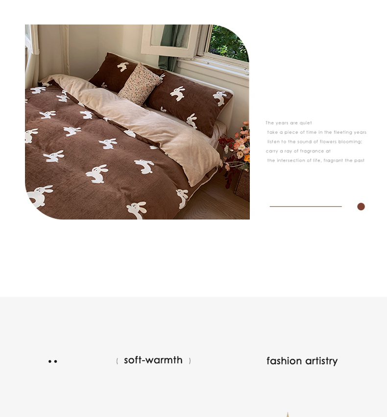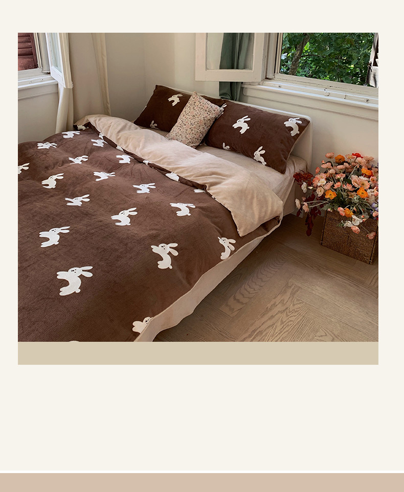 商品名称:花沐 2023新款冬季复古小法式牛奶绒四件套 咖兔先生