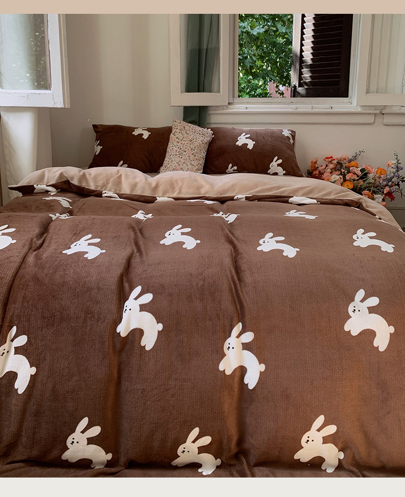 花沐 2023新款冬季复古小法式牛奶绒四件套 咖兔先生