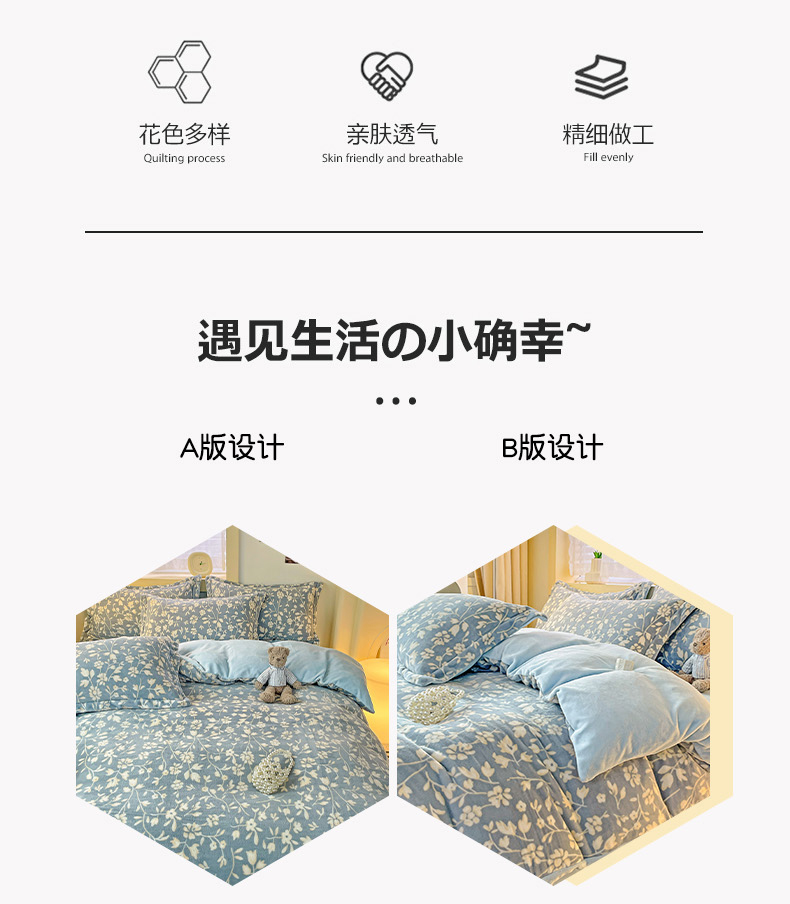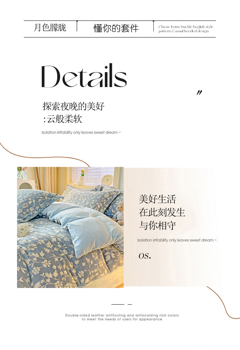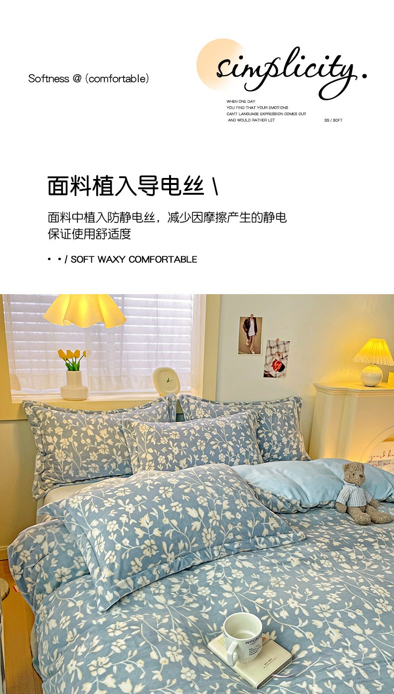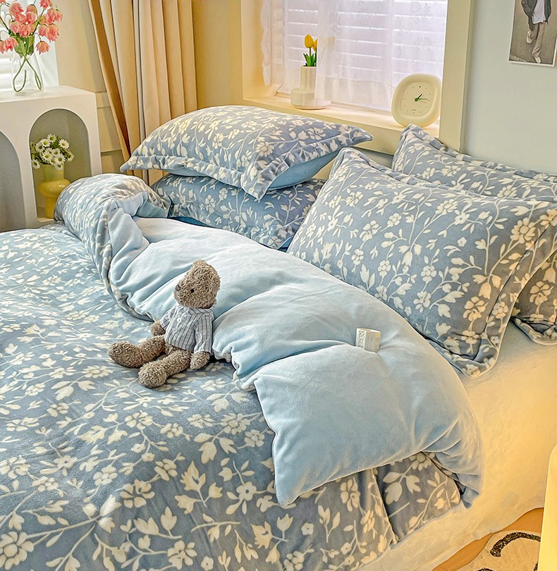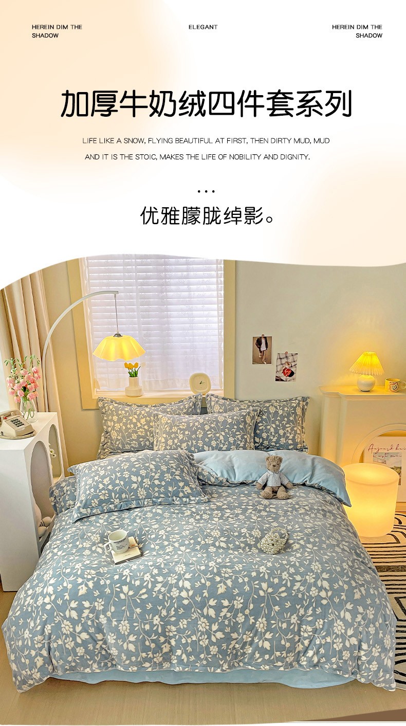 当前位置: 91家纺网 > 商品网购 > 床品套件 > 四件套 > 牛奶绒四件套 > 畅畅家纺 2023新款活性印花小清新AB版加厚高克重法莱绒牛奶绒四件套 浪漫情调