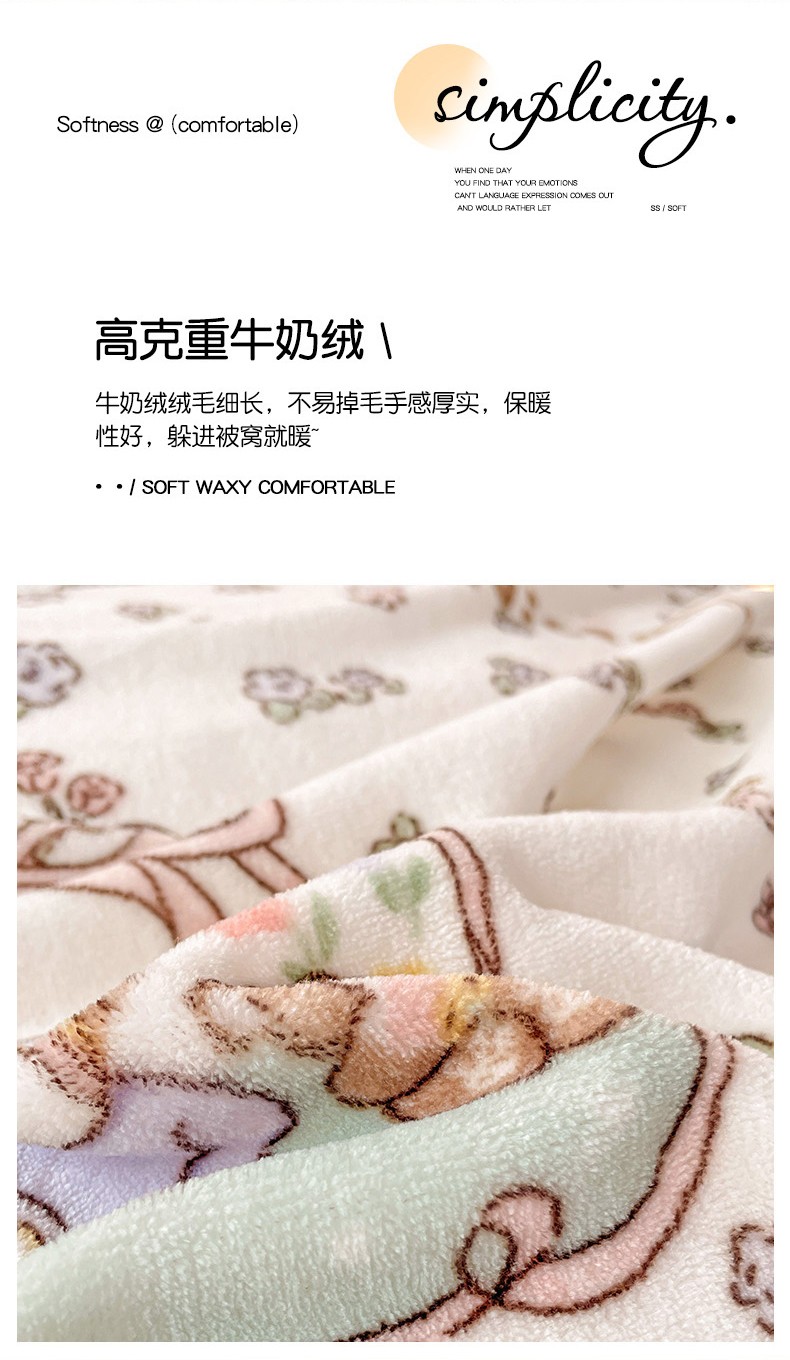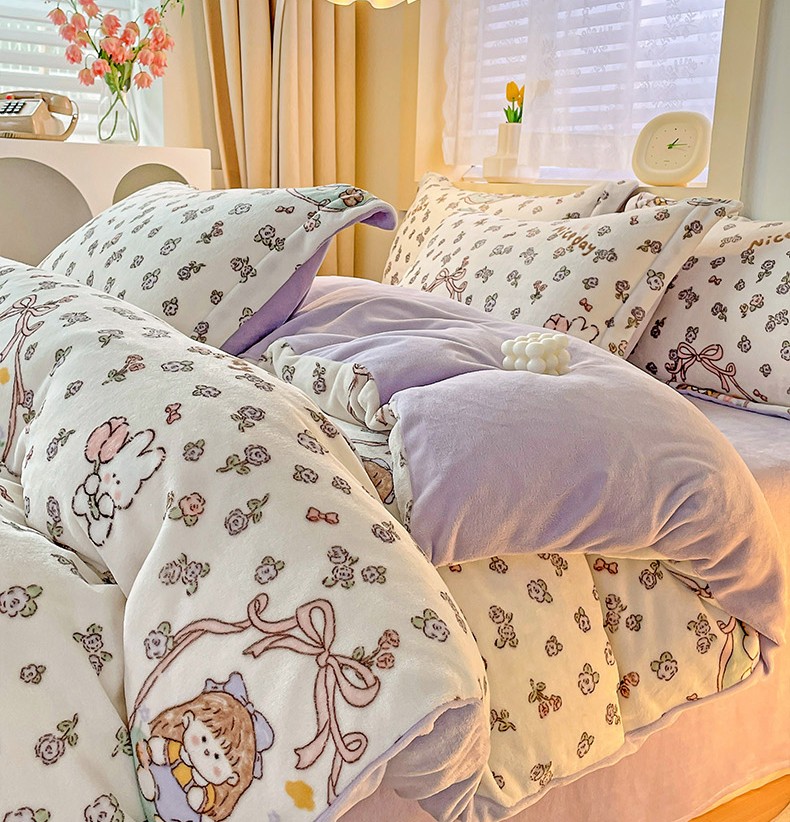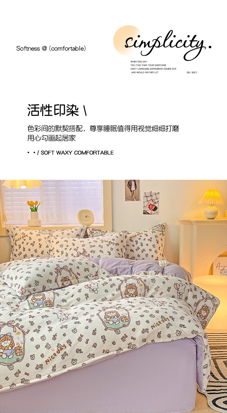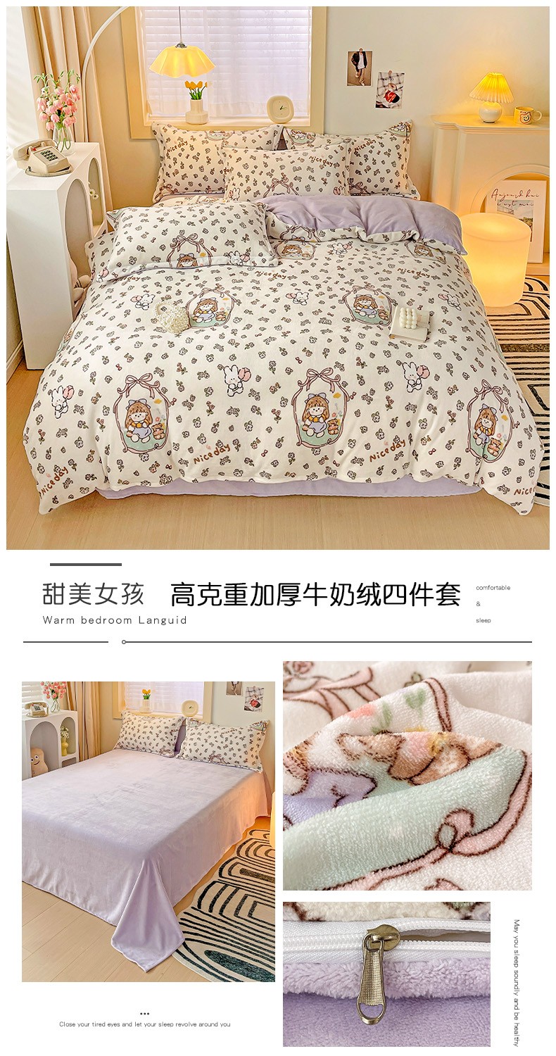 当前位置: 91家纺网 > 商品网购 > 床品套件 > 四件套 > 牛奶绒四件套 > 畅畅家纺 2023新款活性印花小清新AB版加厚高克重法莱绒牛奶绒四件套 甜美女孩