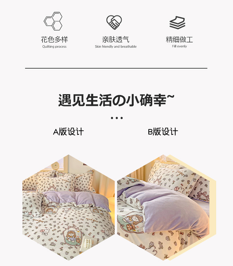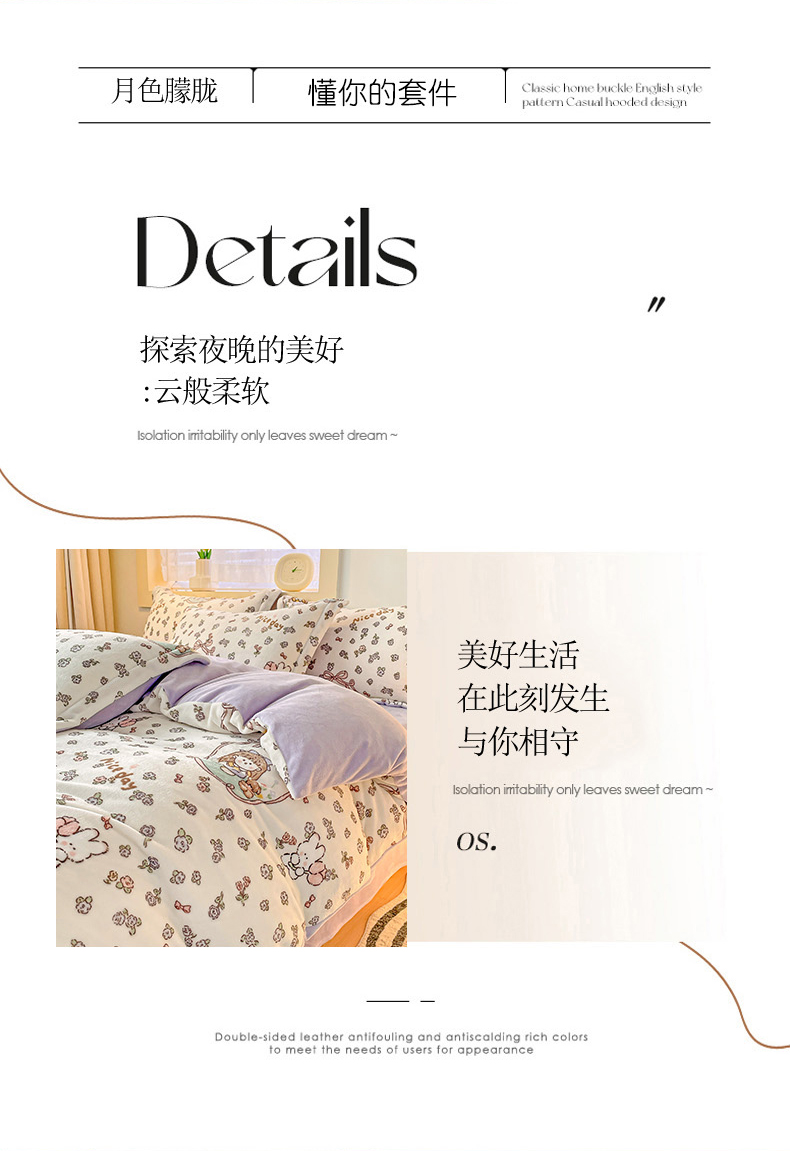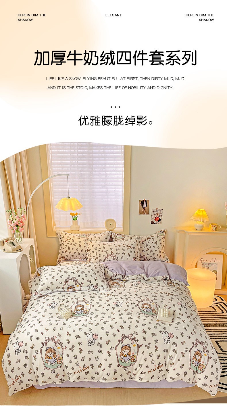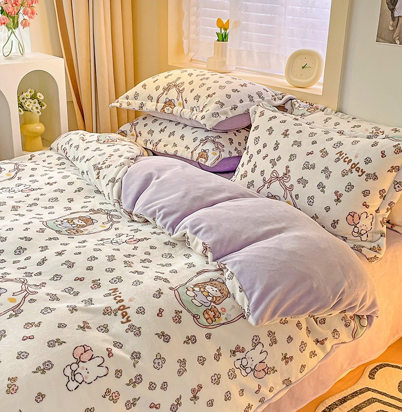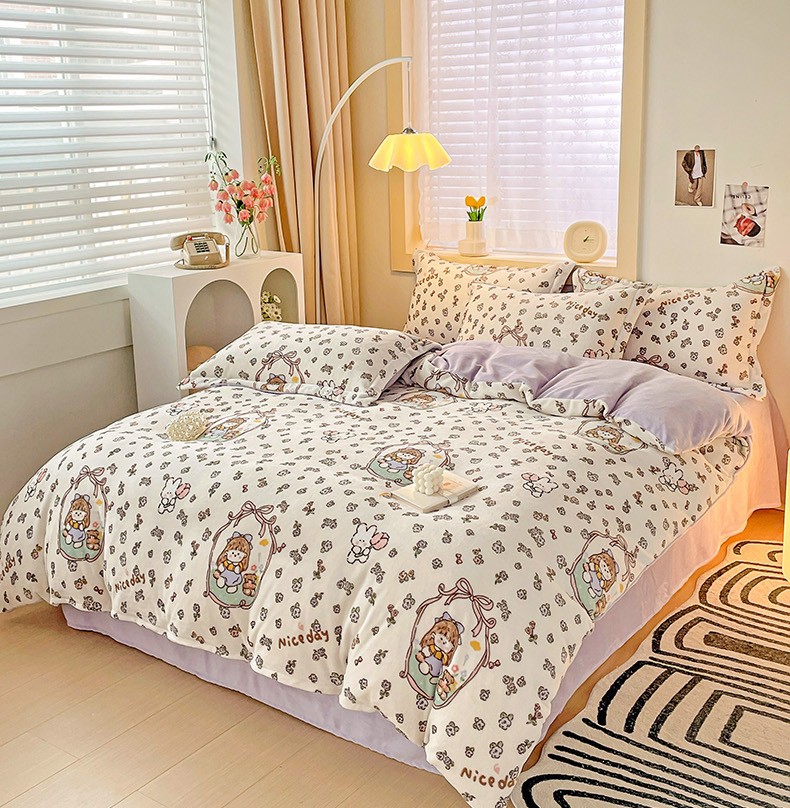当前位置: 91家纺网 > 商品网购 > 床品套件 > 四件套 > 牛奶绒四件套 > 畅畅家纺 2023新款活性印花小清新AB版加厚高克重法莱绒牛奶绒四件套 甜美女孩