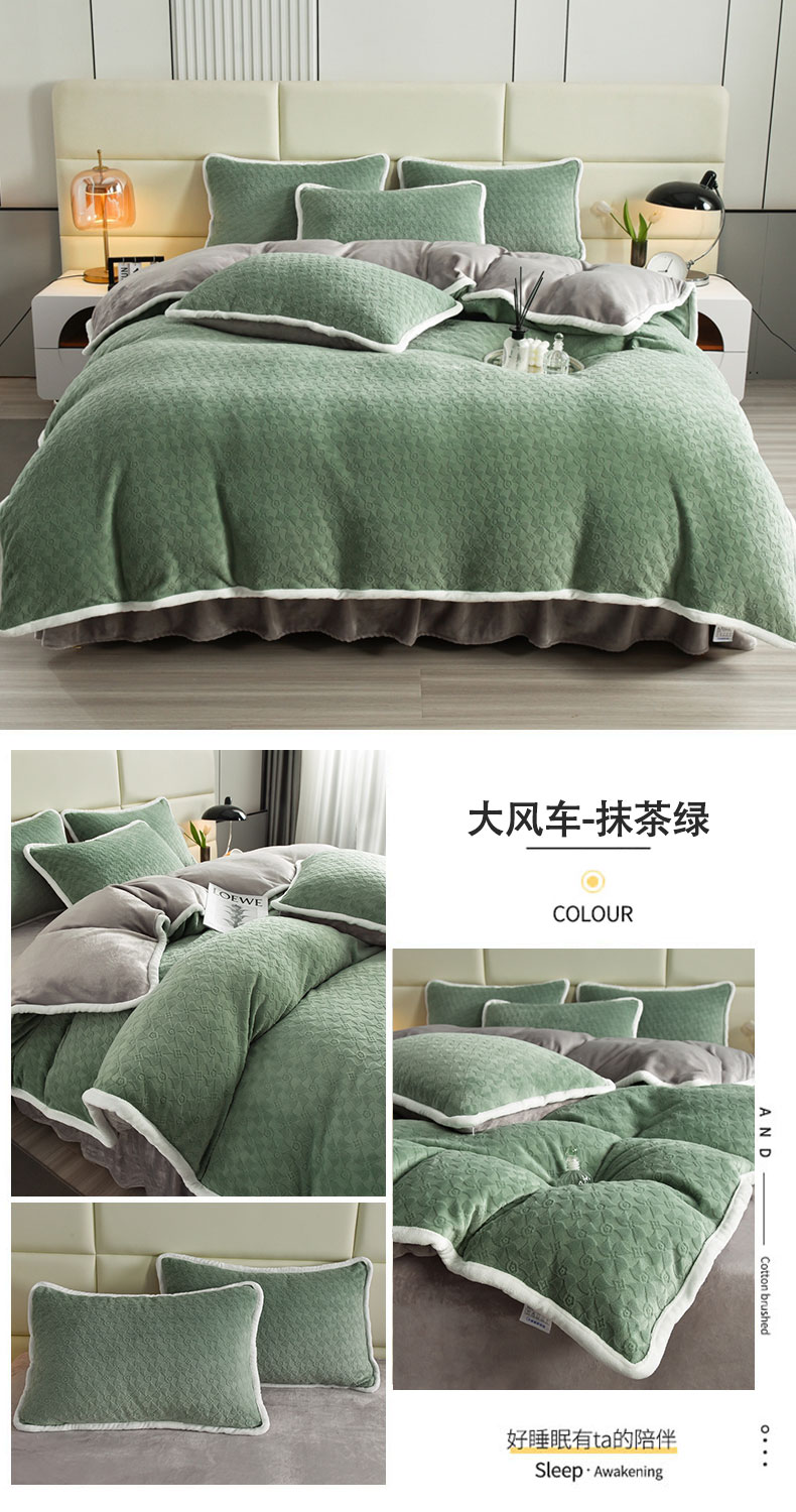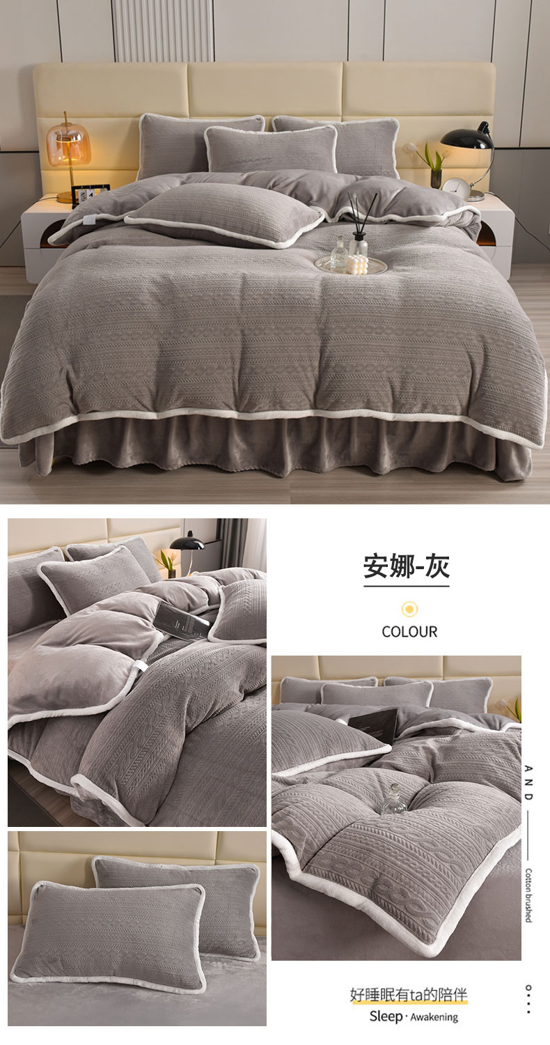 (总)畅畅家纺 2024新款高克重加厚保暖冬季牛奶绒纯色床盖款四件套,豆沙,灰色,天蓝,玉色,中国红