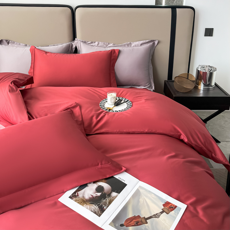 (总)嘉汀兰 2023新款100支双股长绒棉埋绳纯色四件套—卡西欧,红色