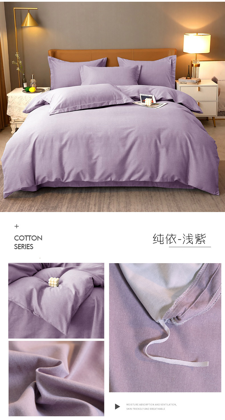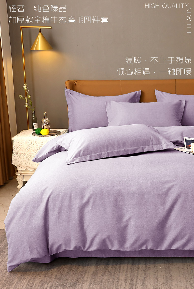 当前位置: 91家纺网 > 商品网购 > 床品套件 > 四件套 > 全棉普通四件套 > 晶缦家纺 2023加厚全棉纯色生态磨毛多规格四件套 纯依-浅紫