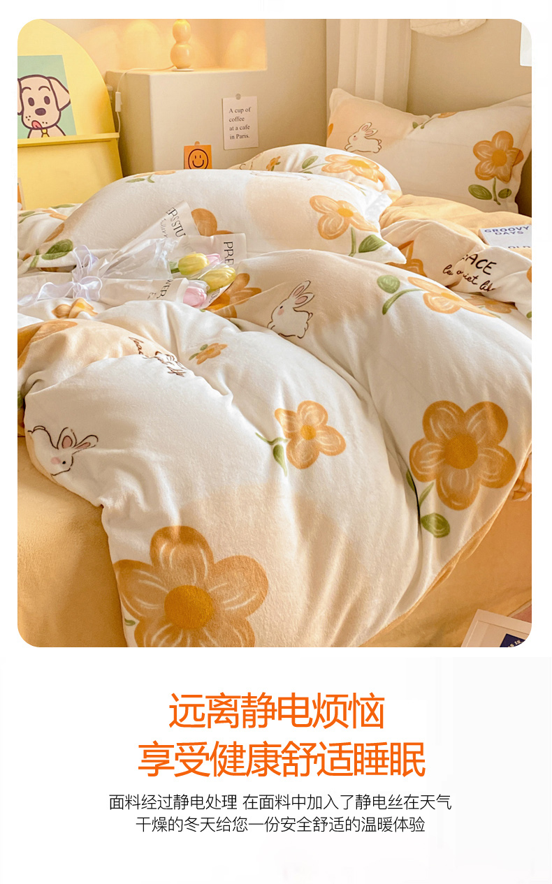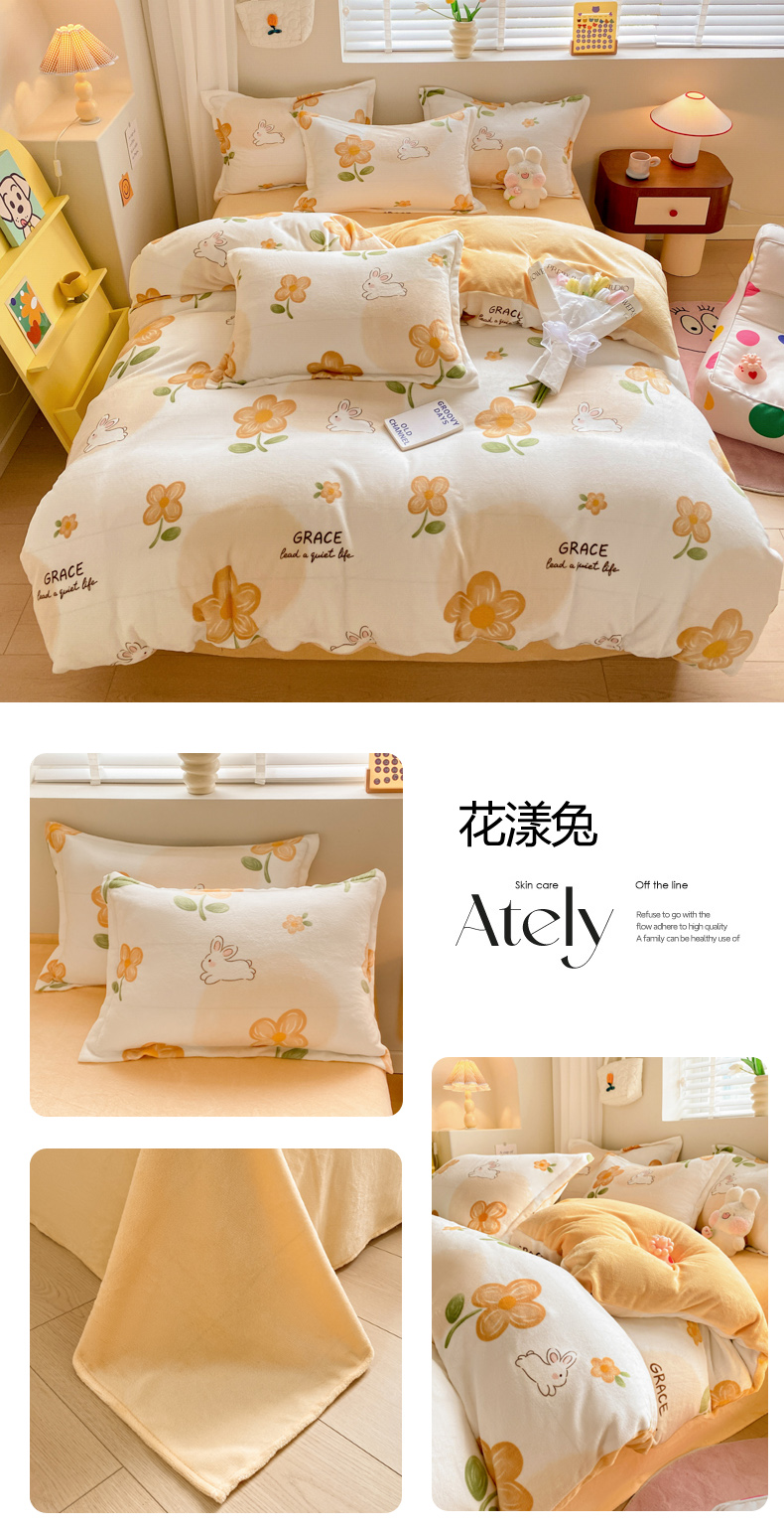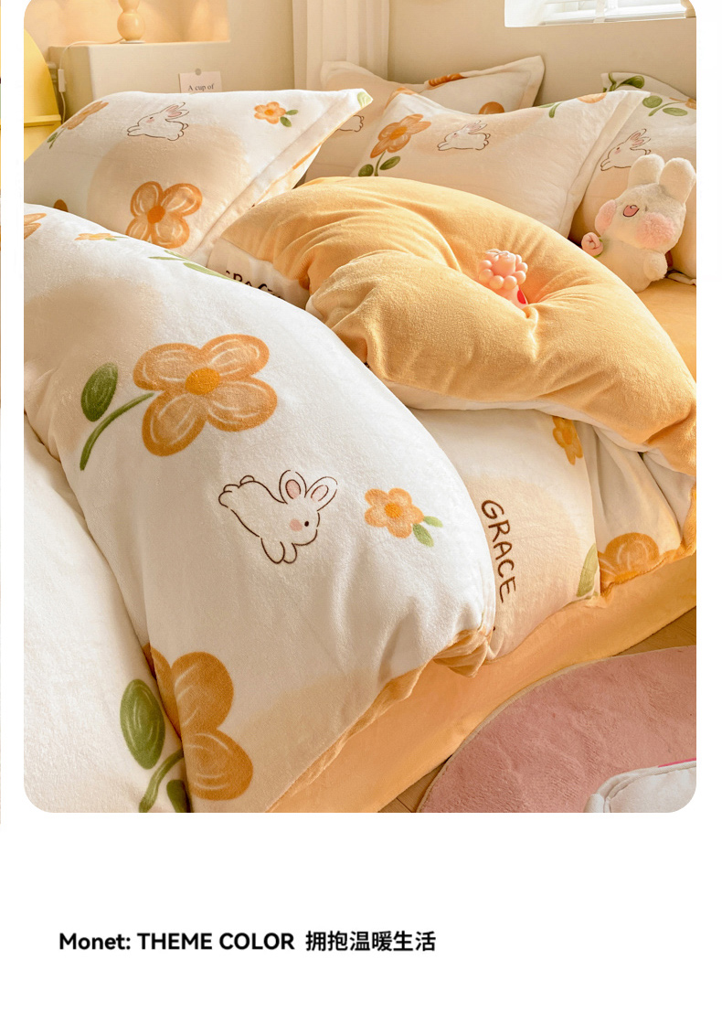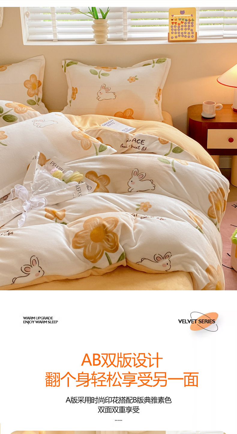 当前位置: 91家纺网 > 商品网购 > 床品套件 > 四件套 > 牛奶绒四件套 > 沐慕 2024新款牛奶绒加厚保暖卡通印花四件套 花漾兔