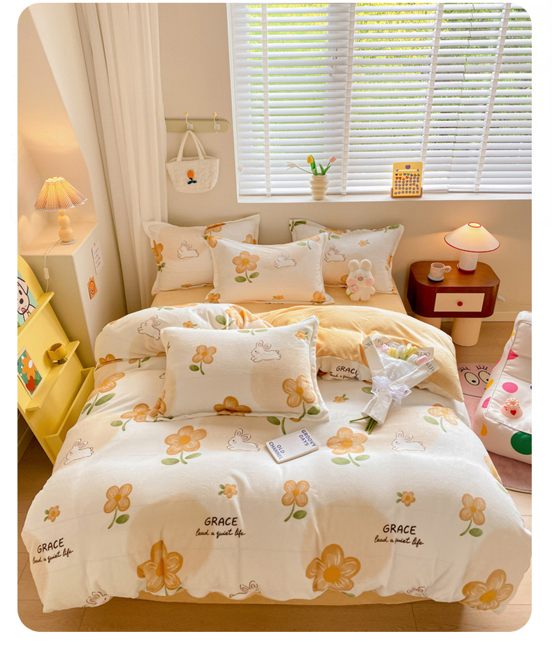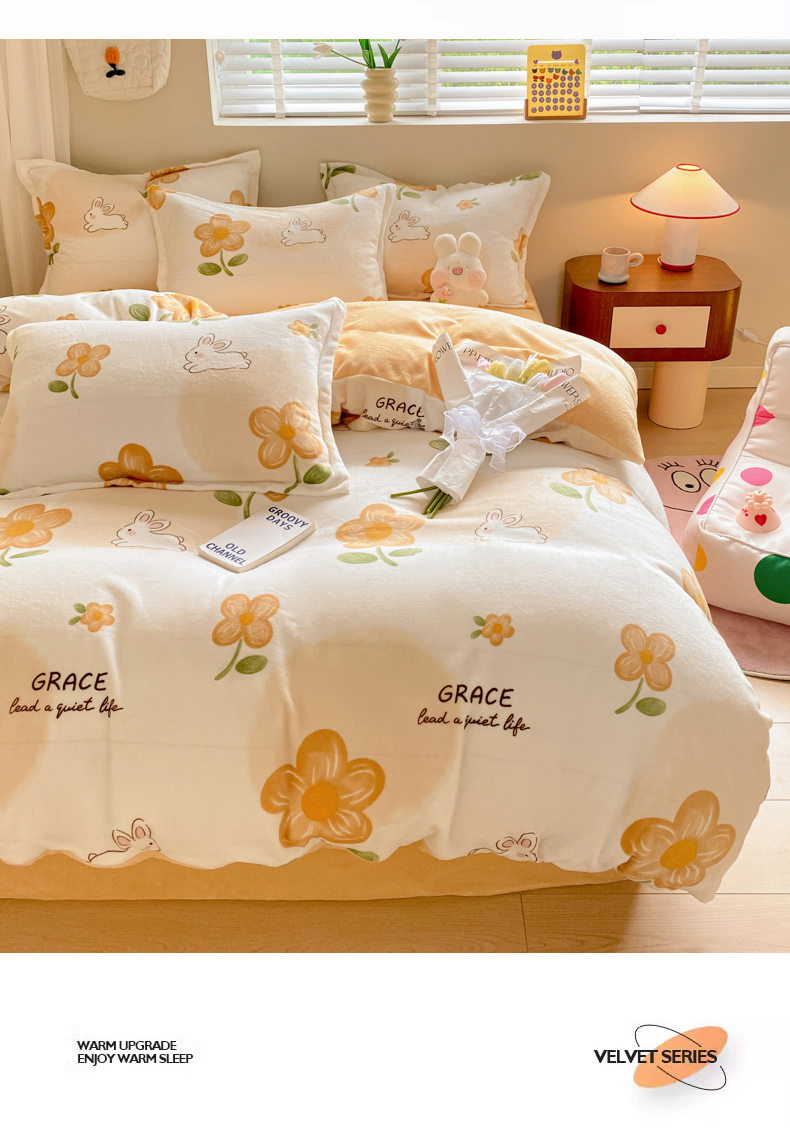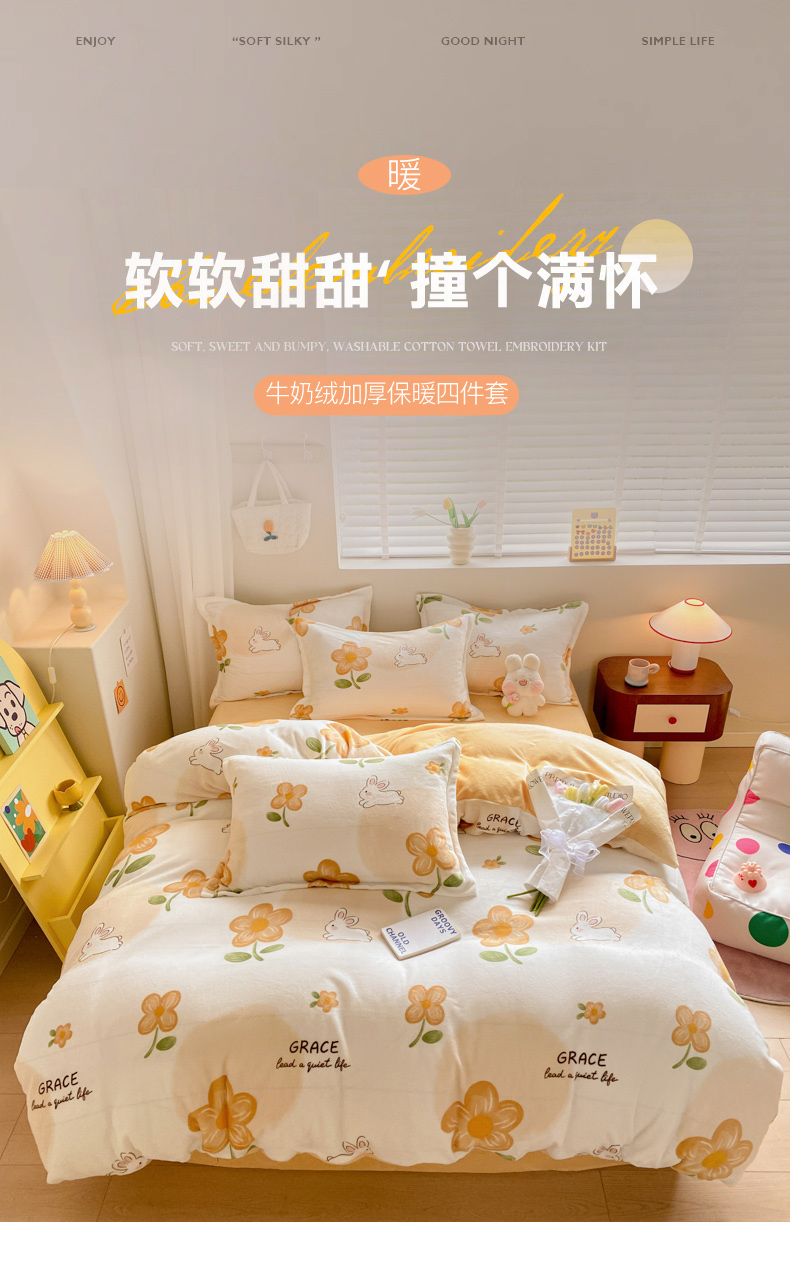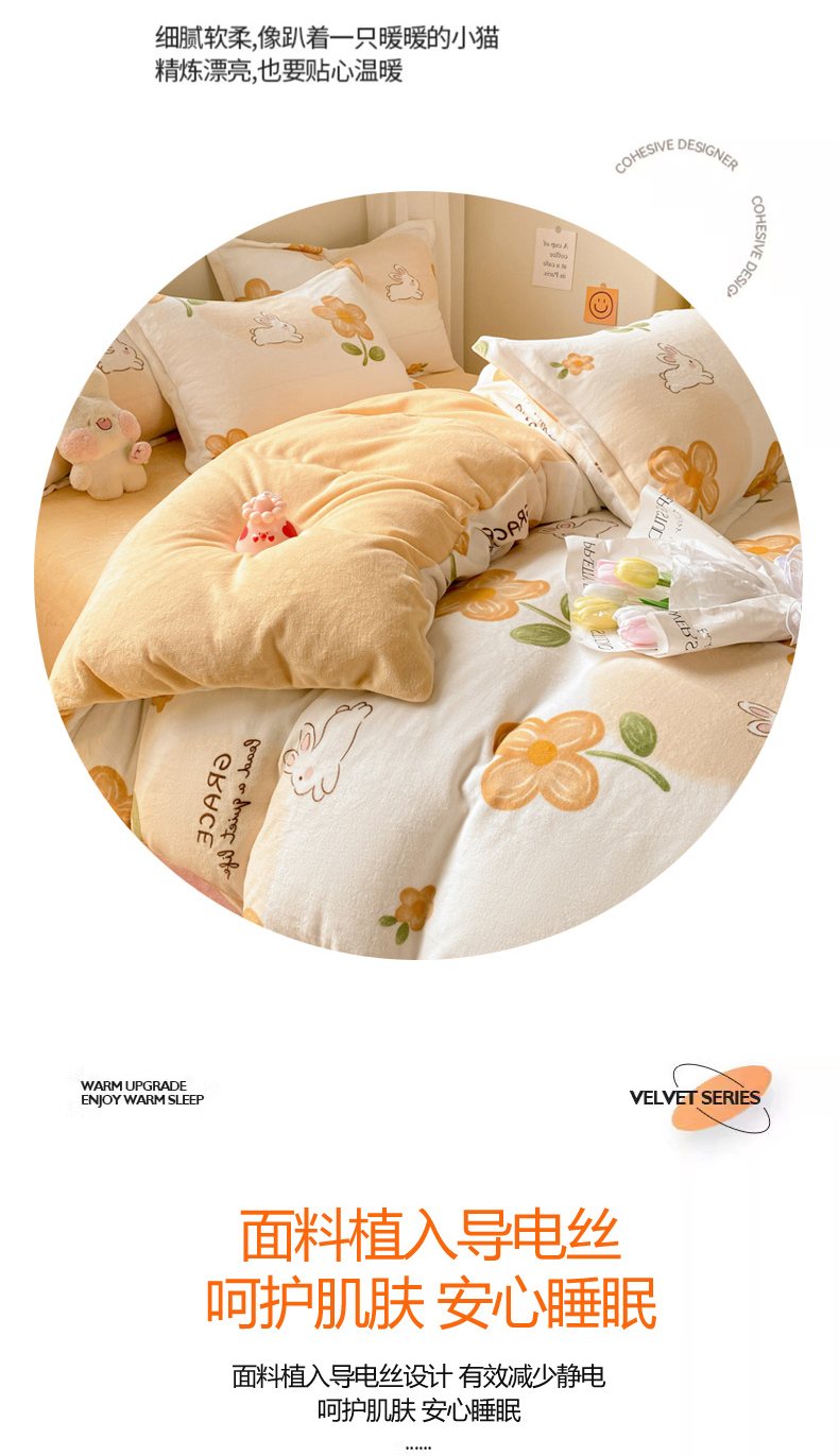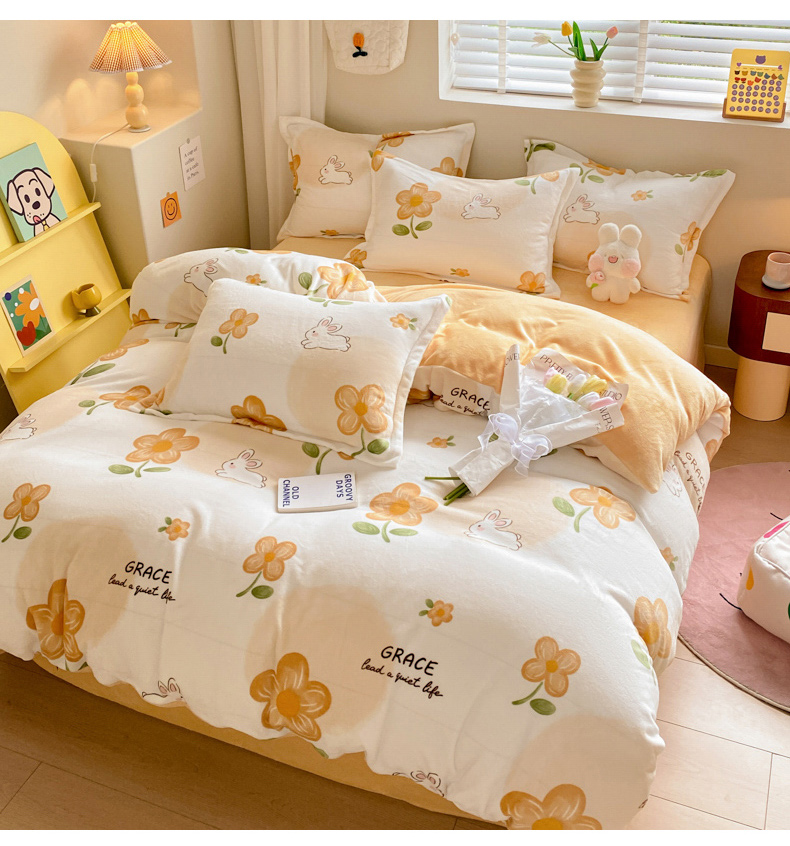 当前位置: 91家纺网 > 商品网购 > 床品套件 > 四件套 > 牛奶绒四件套 > 沐慕 2024新款牛奶绒加厚保暖卡通印花四件套 花漾兔