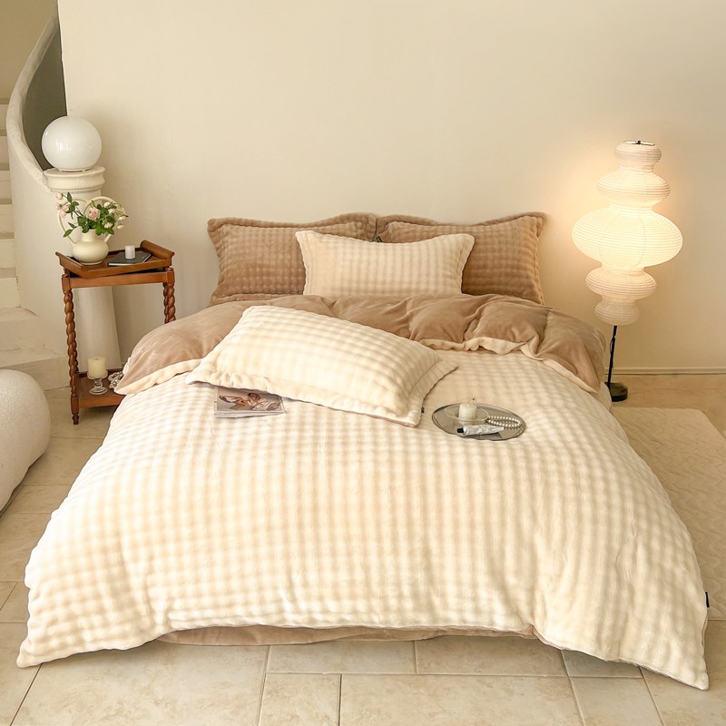 商品名称:佳居缘 2023新款A类兔兔绒四件套柔软亲肤绒轻奢套件 奶白