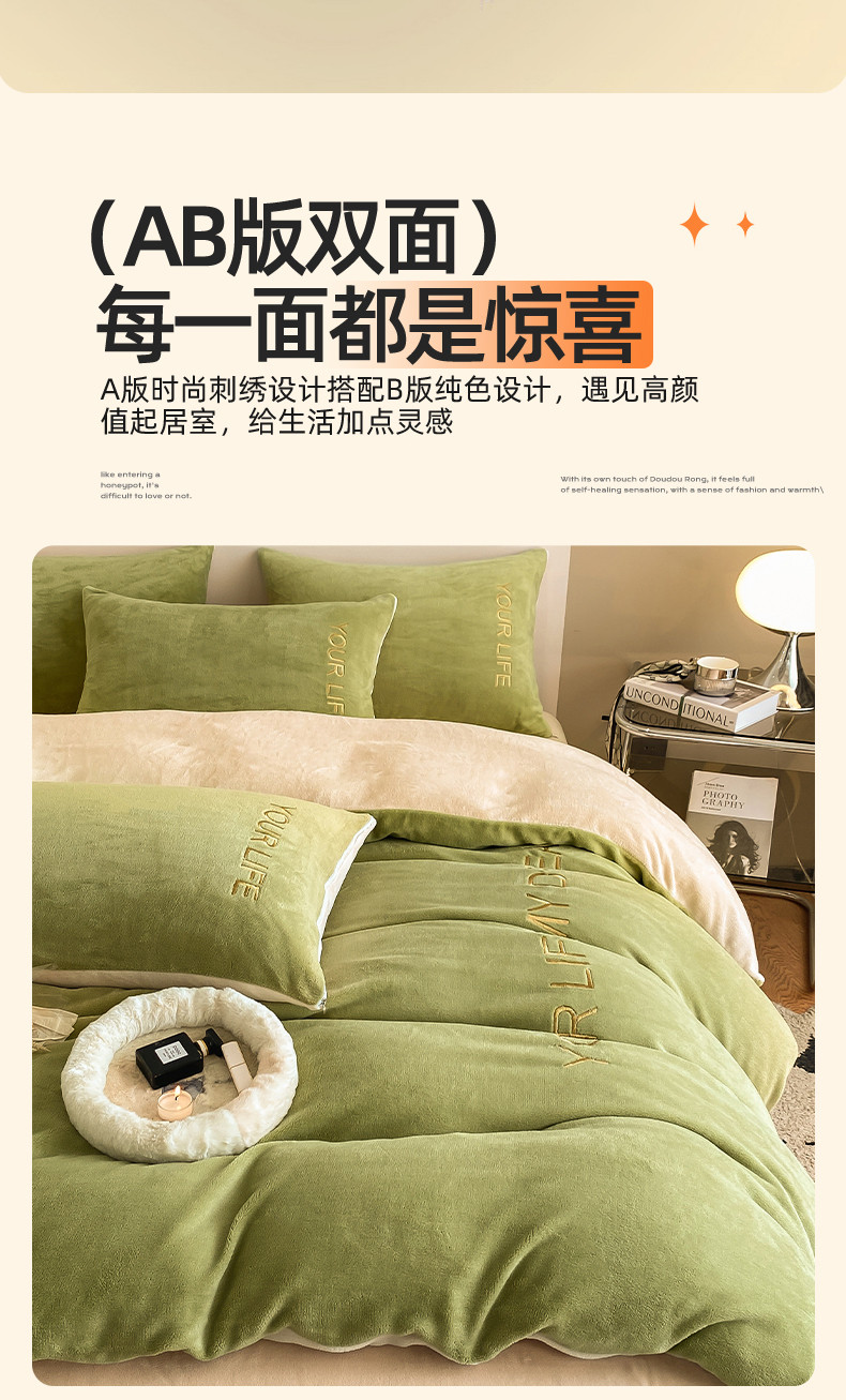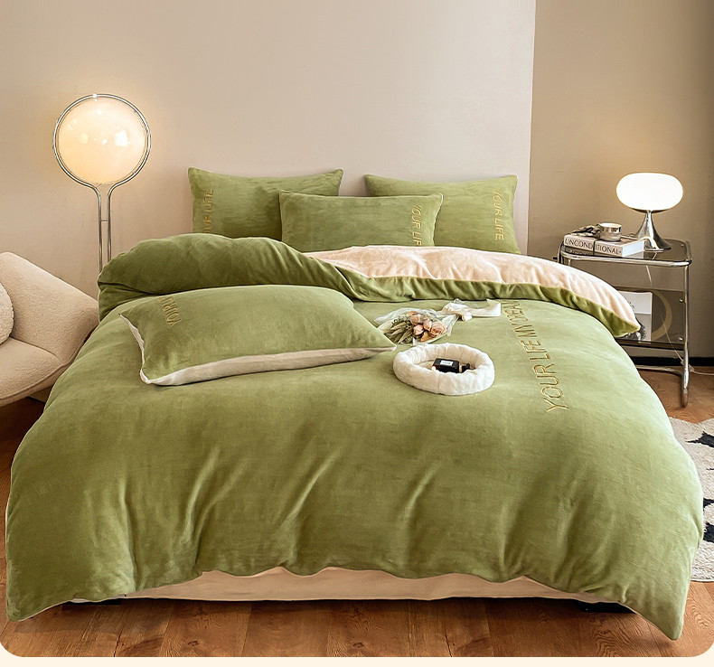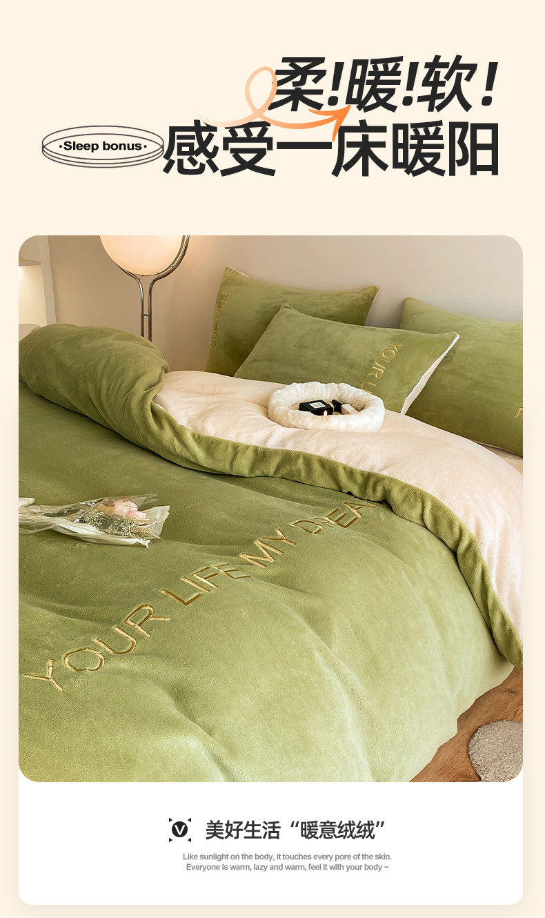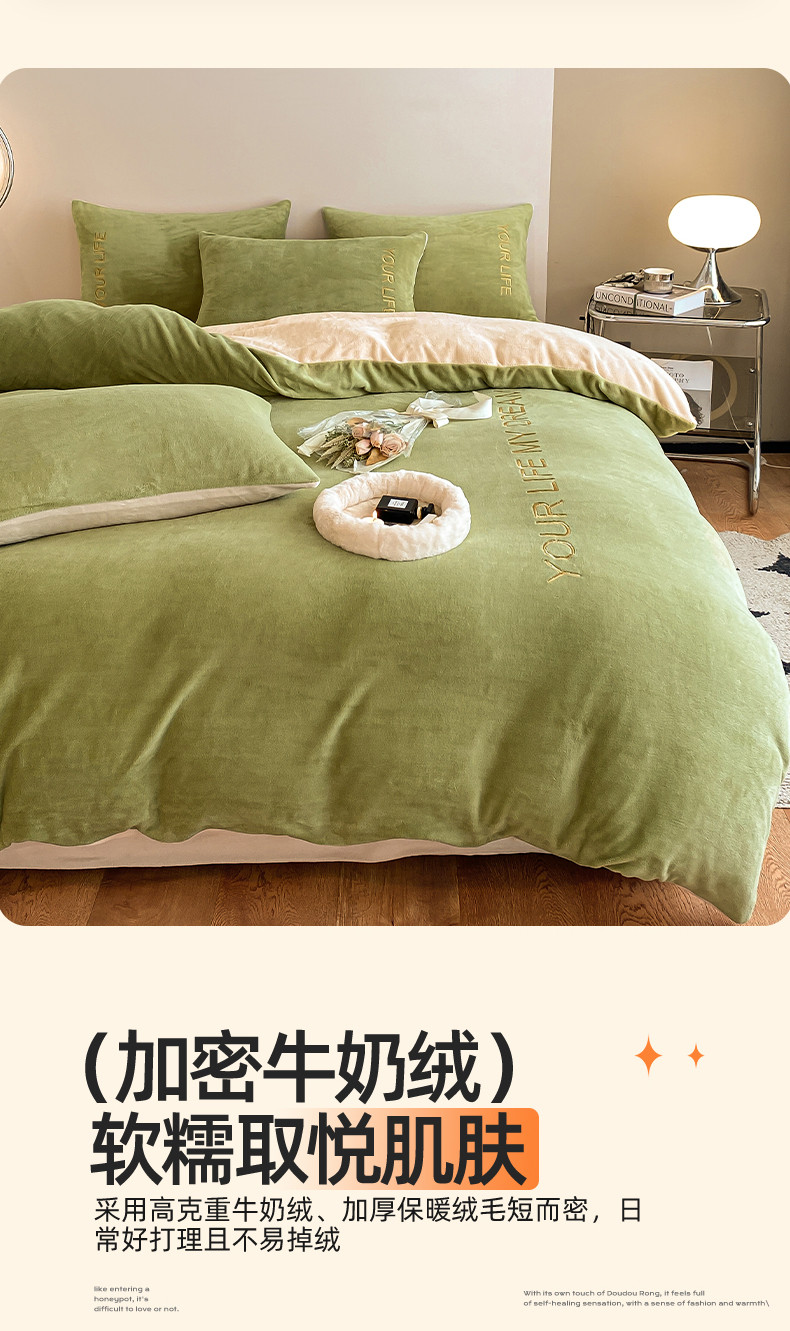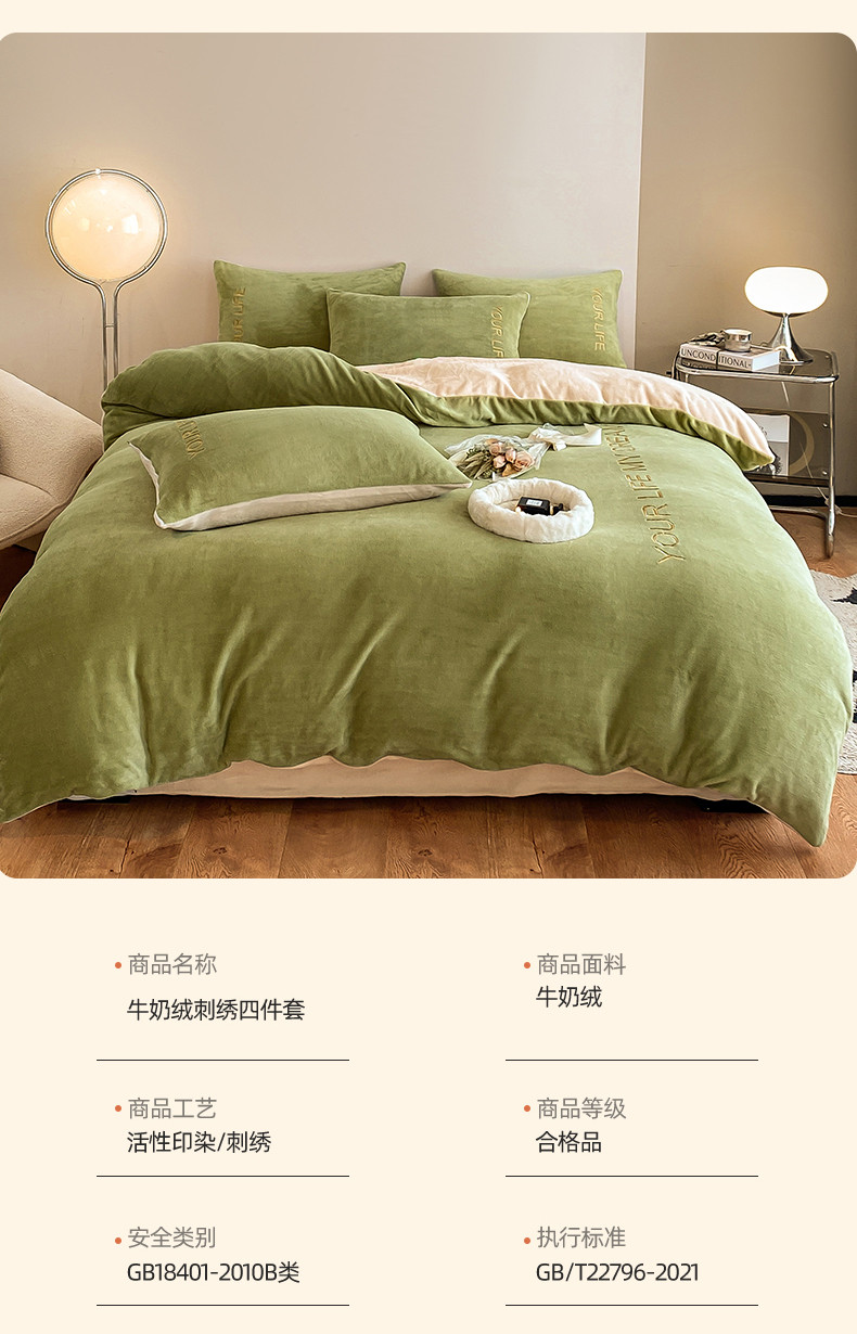 义博 2025新款牛奶绒刺绣四件套-浪漫系列 浪漫-抹茶绿