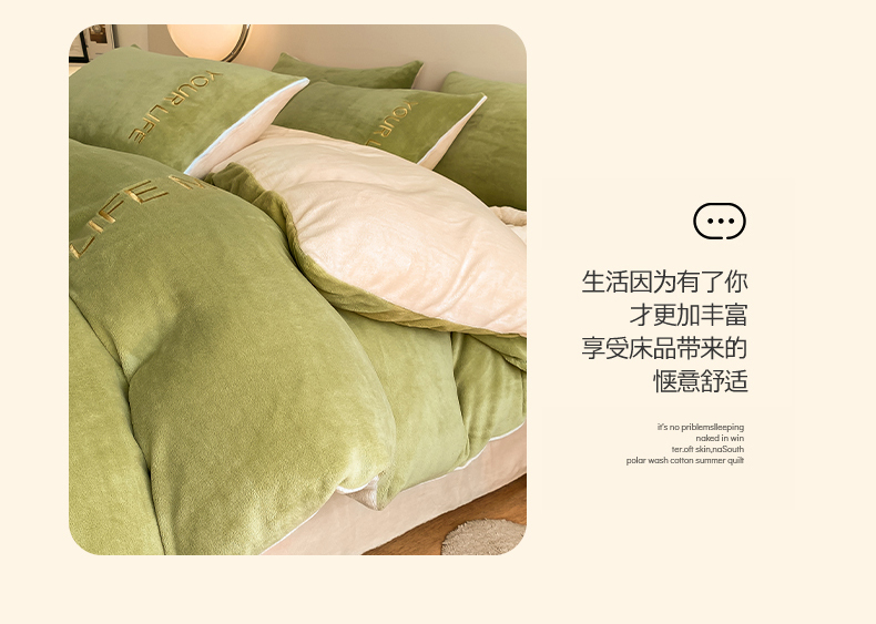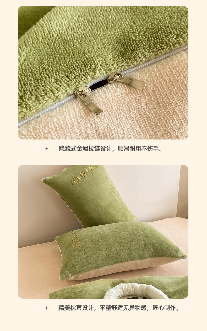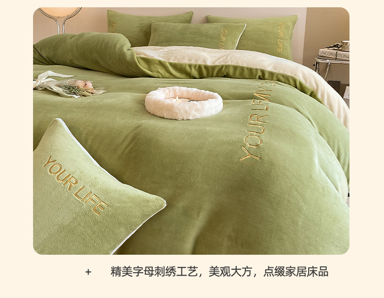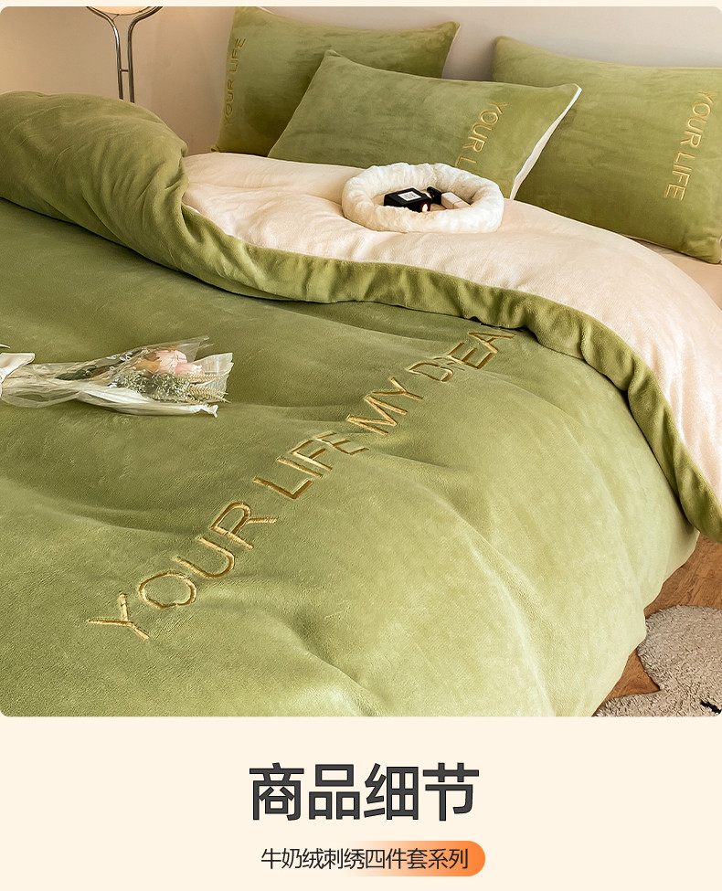 商品名称:义博 2025新款牛奶绒刺绣四件套-浪漫系列 浪漫-抹茶绿
