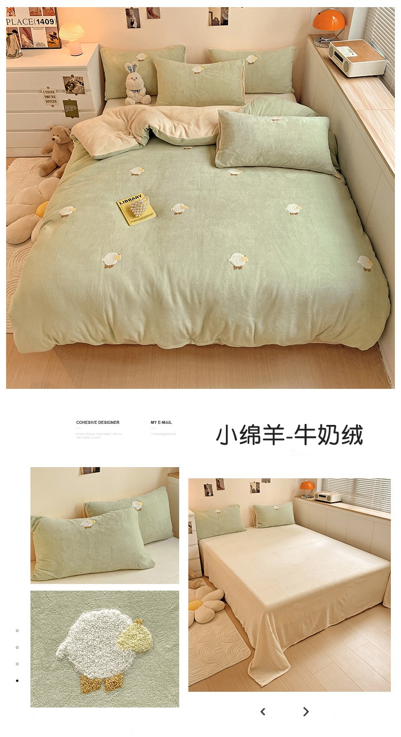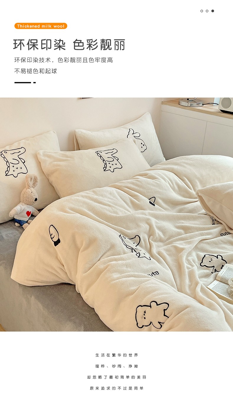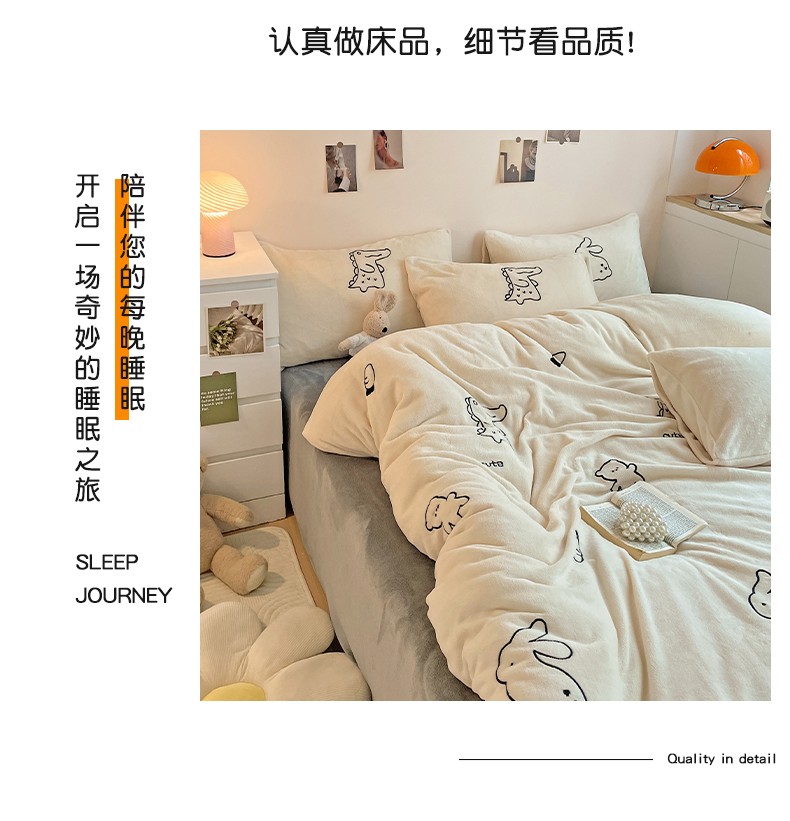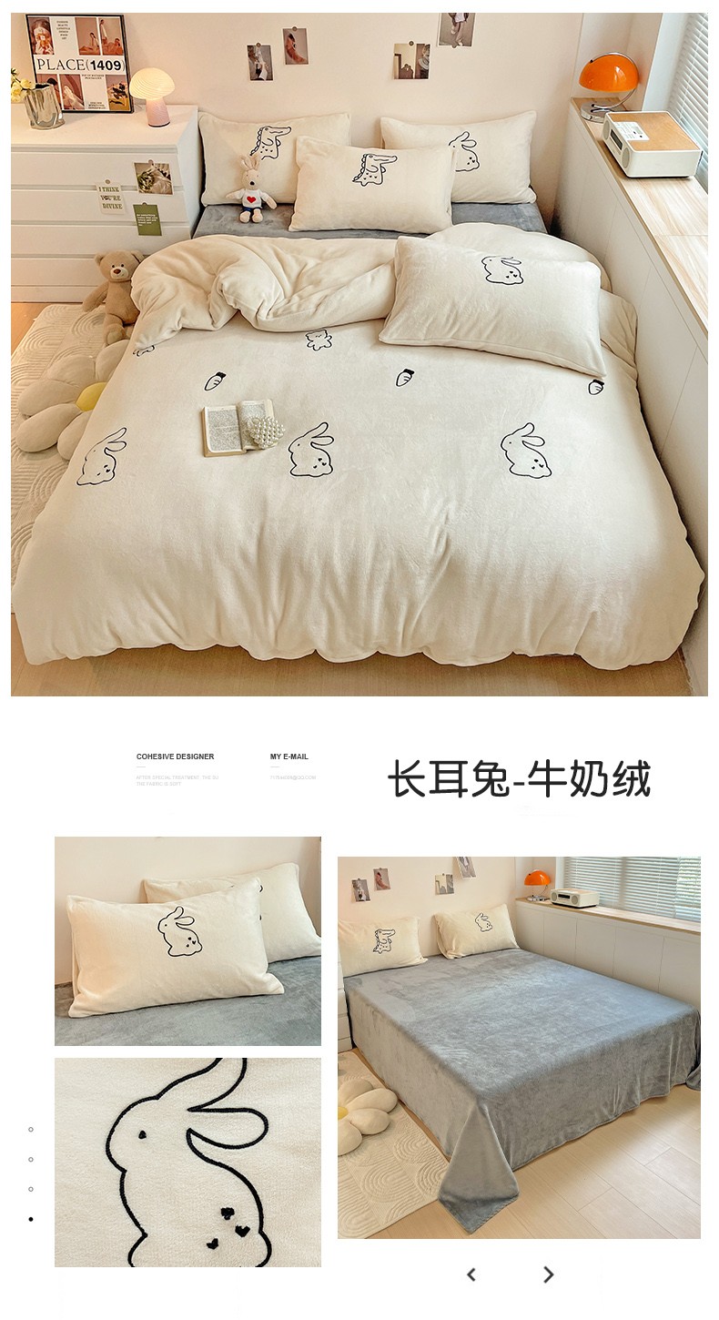 (总)红嘴企鹅 2025新款北欧良品牛奶绒四件套,良品橙色,良品粉色,良品灰色,良品蓝色,良品木绿,良品奶白,良品紫色