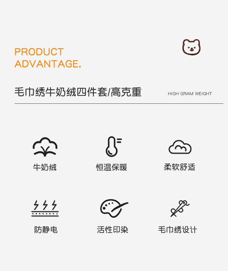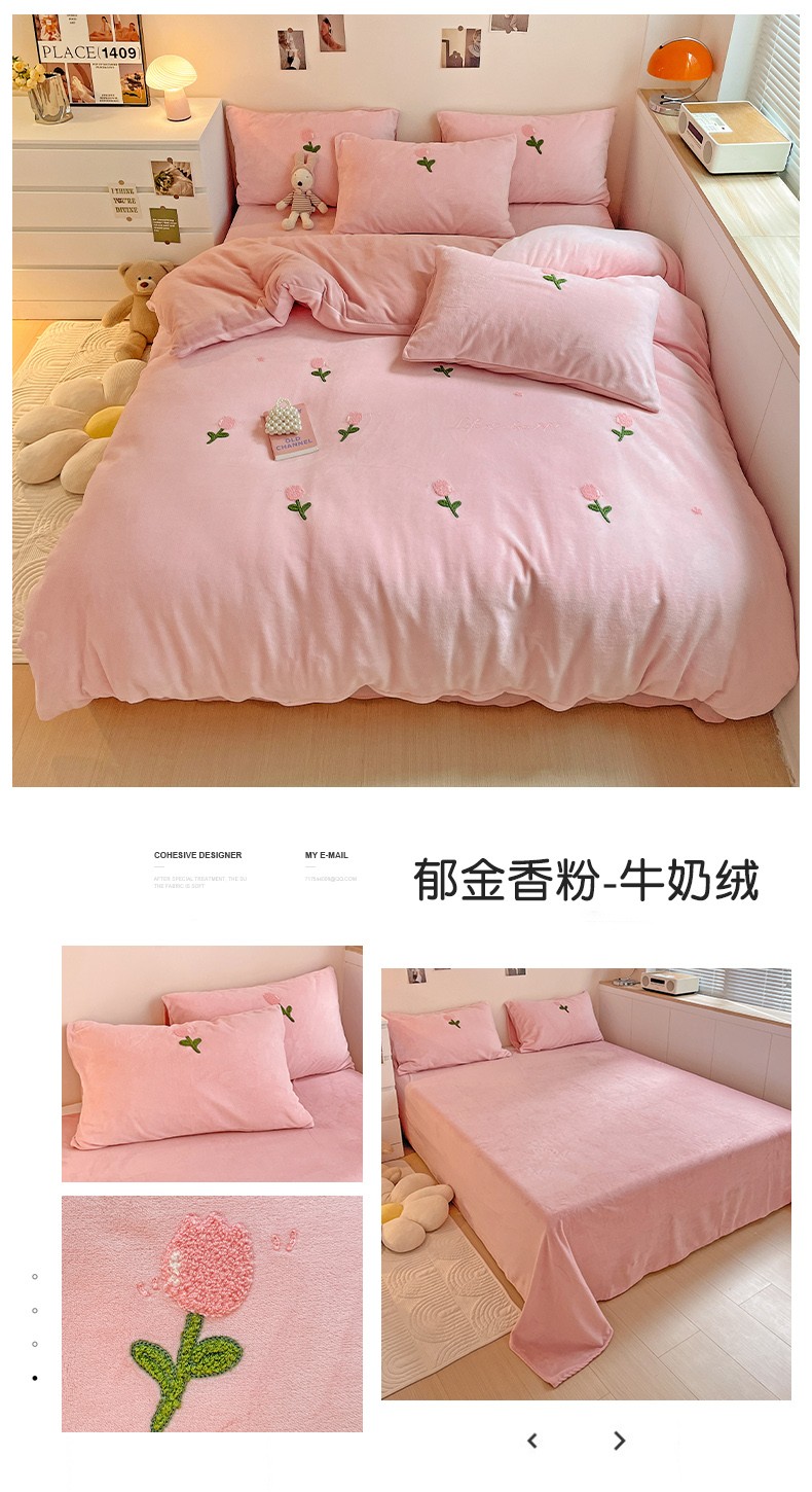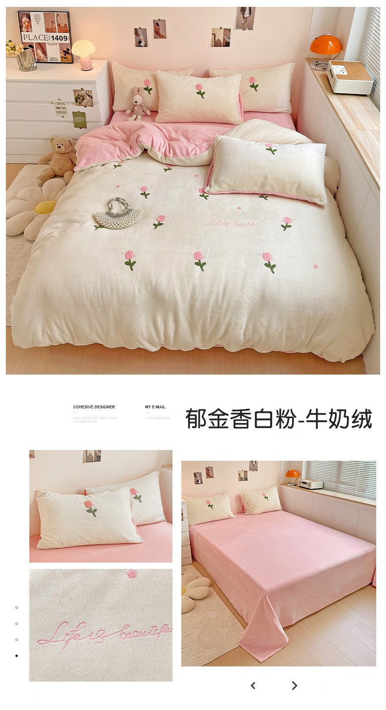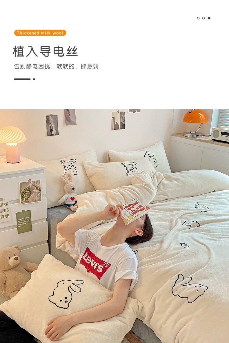 (总)红嘴企鹅 2025新款北欧良品牛奶绒四件套,良品橙色,良品粉色,良品灰色,良品蓝色,良品木绿,良品奶白,良品紫色