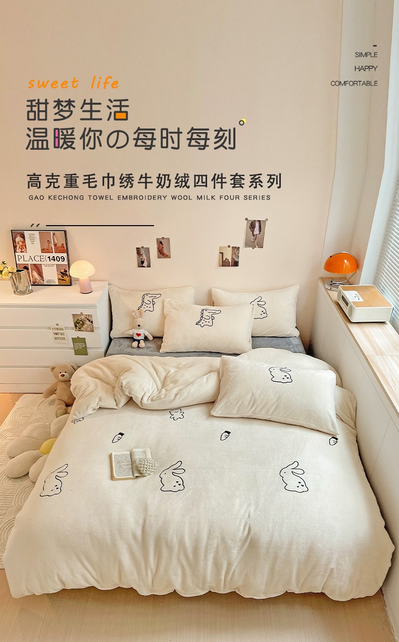 (总)红嘴企鹅 2025新款精致贴布绣牛奶绒四件套,棒棒糖-粉,Bunny兔-粉,Bunny兔-蓝,Bunny兔-紫,Cute狗-粉,Cute狗-蓝,Cute狗-紫