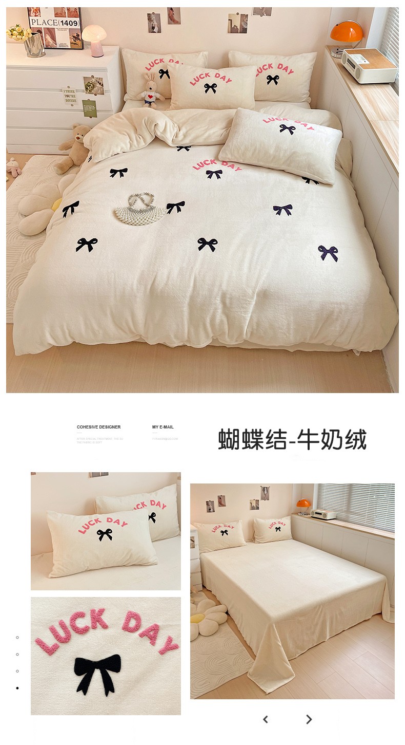 (总)红嘴企鹅 2025新款魅力蝴蝶结牛奶绒四件套,魅力蝴蝶结-粉色,魅力蝴蝶结-蓝色,魅力蝴蝶结-奶白,魅力蝴蝶结-紫色