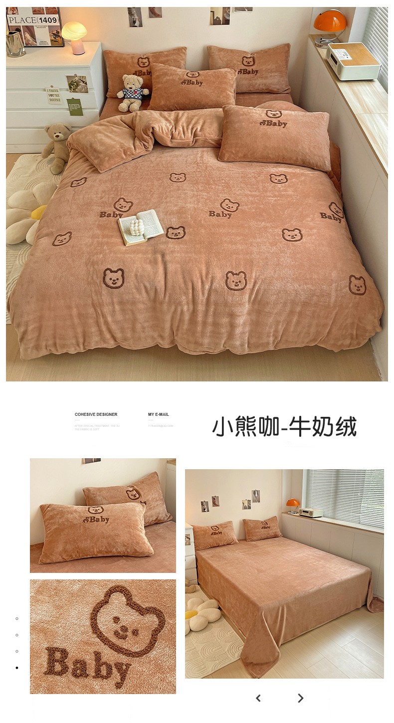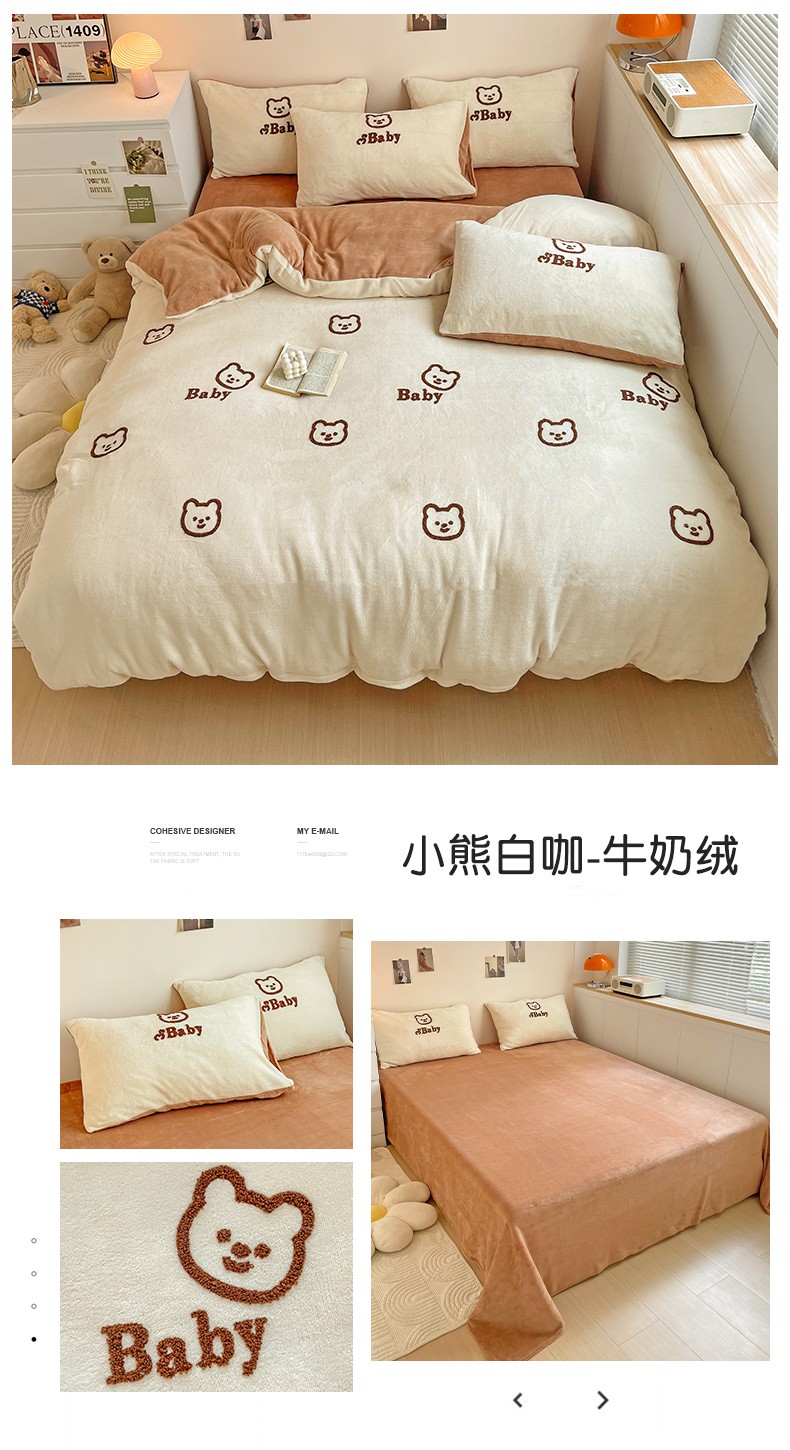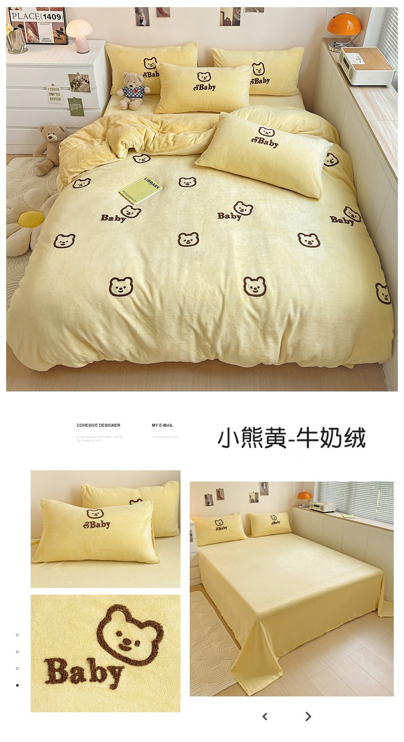 (总)红嘴企鹅 2025新款A类加厚牛奶绒刺绣四件套,学院熊-黑条纹,学院熊-黄条纹,学院熊-灰色,学院熊-咖色,学院熊-绿条纹