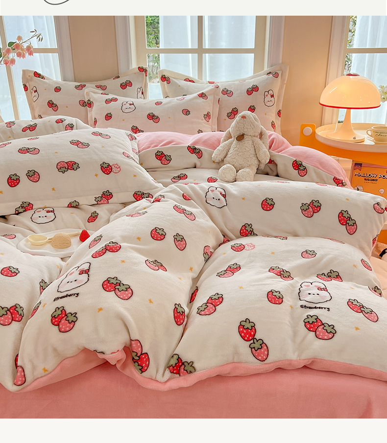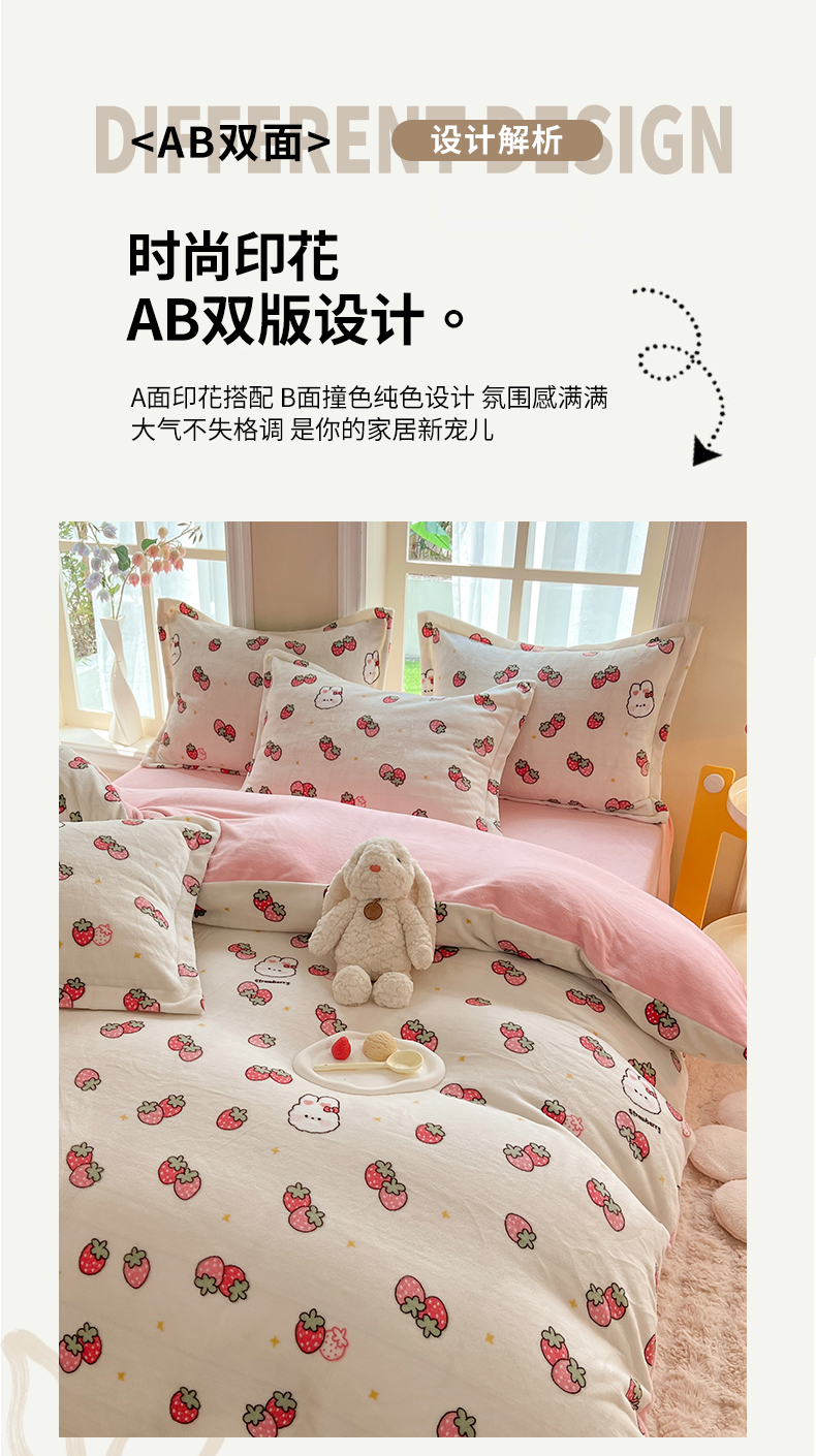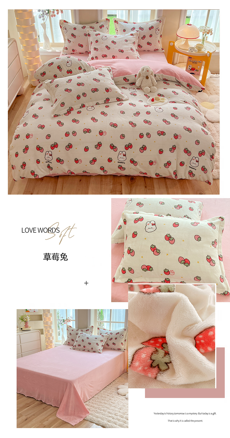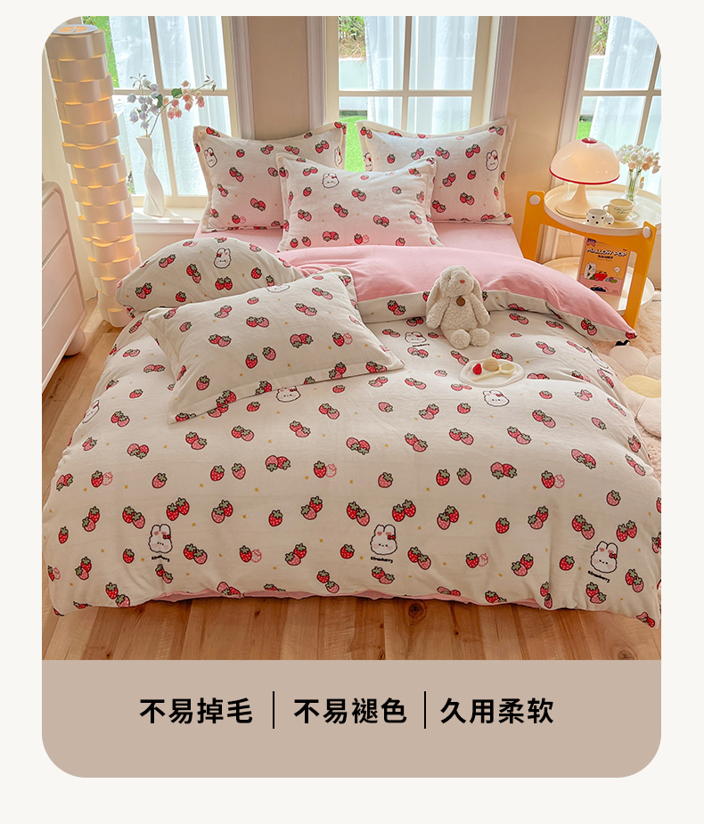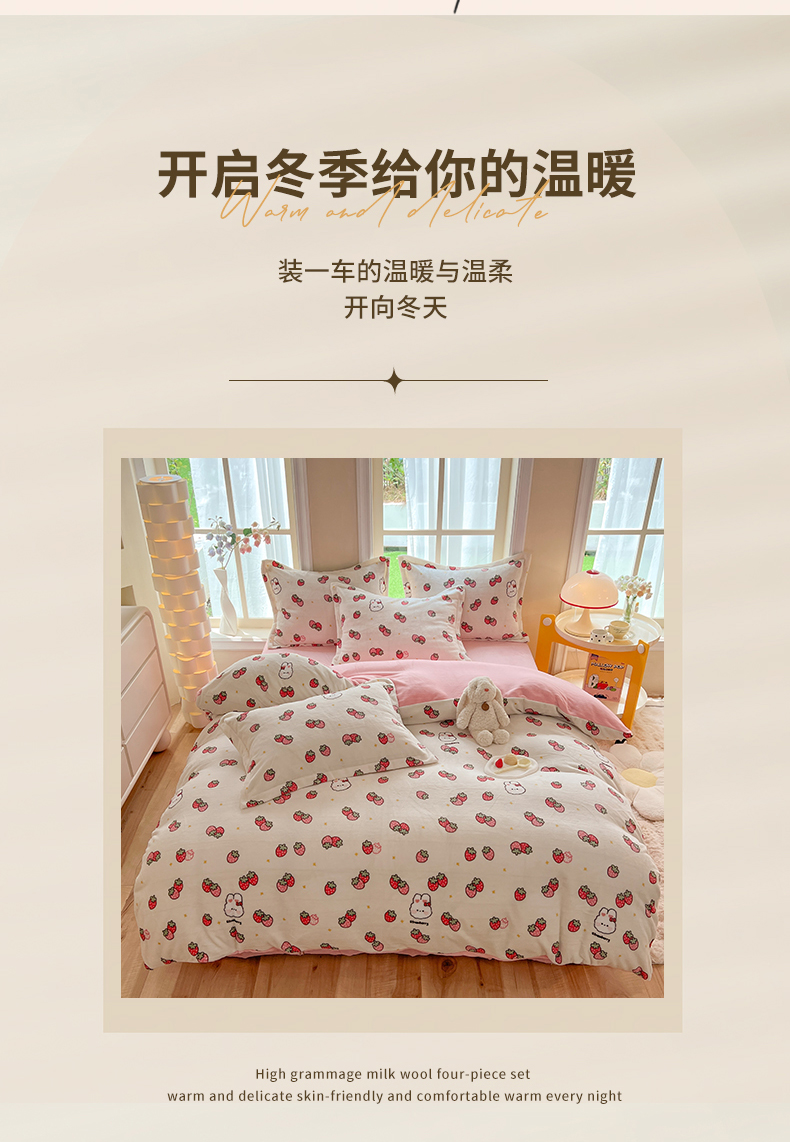 当前位置: 91家纺网 > 商品网购 > 床品套件 > 四件套 > 牛奶绒四件套 > 妖妖家纺 2023新款牛奶绒四件套 草莓兔