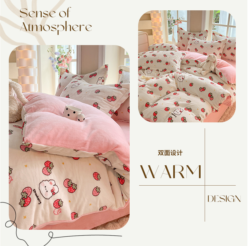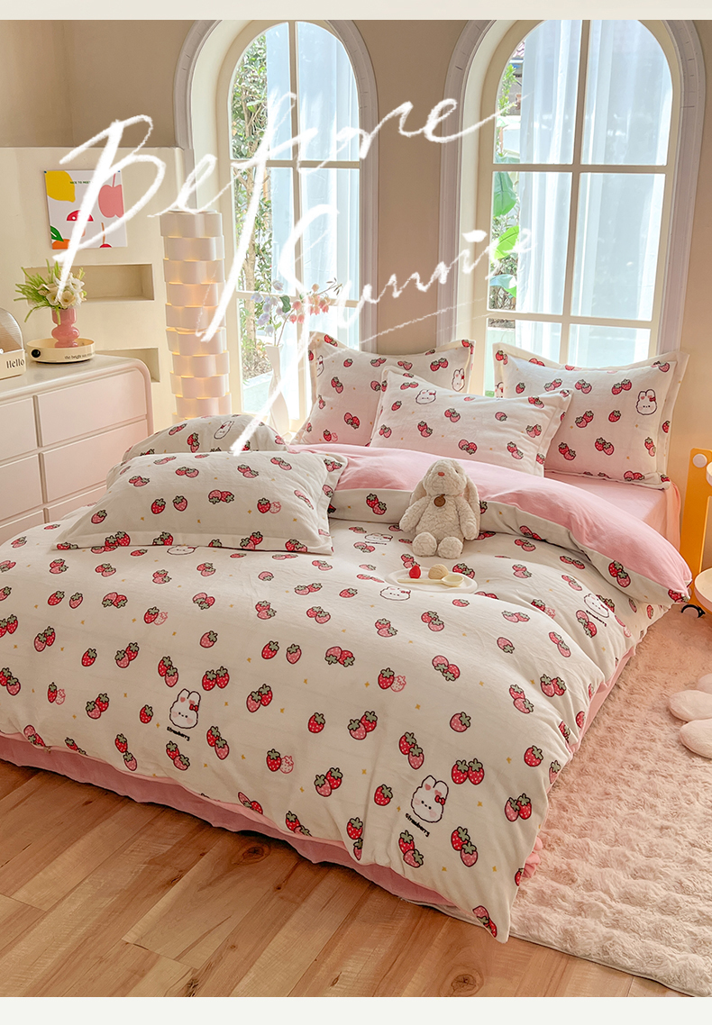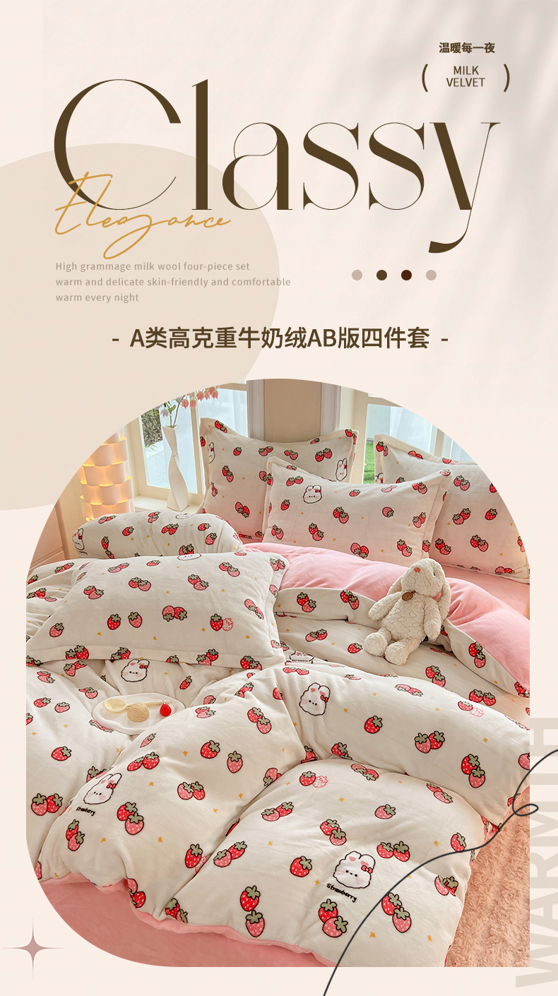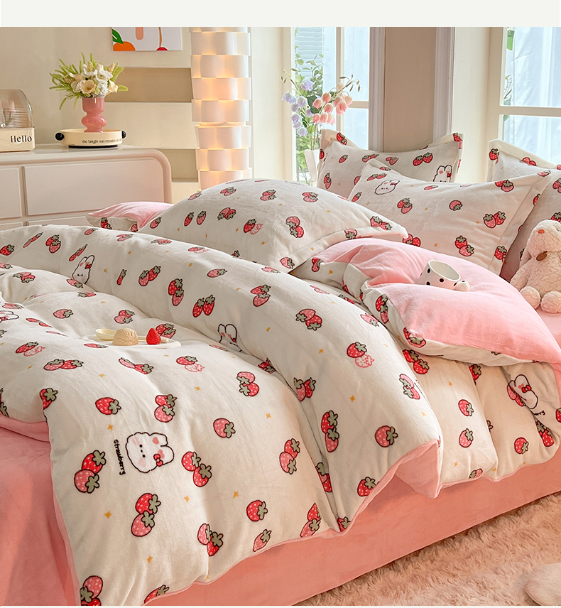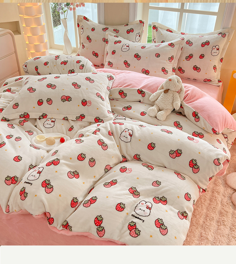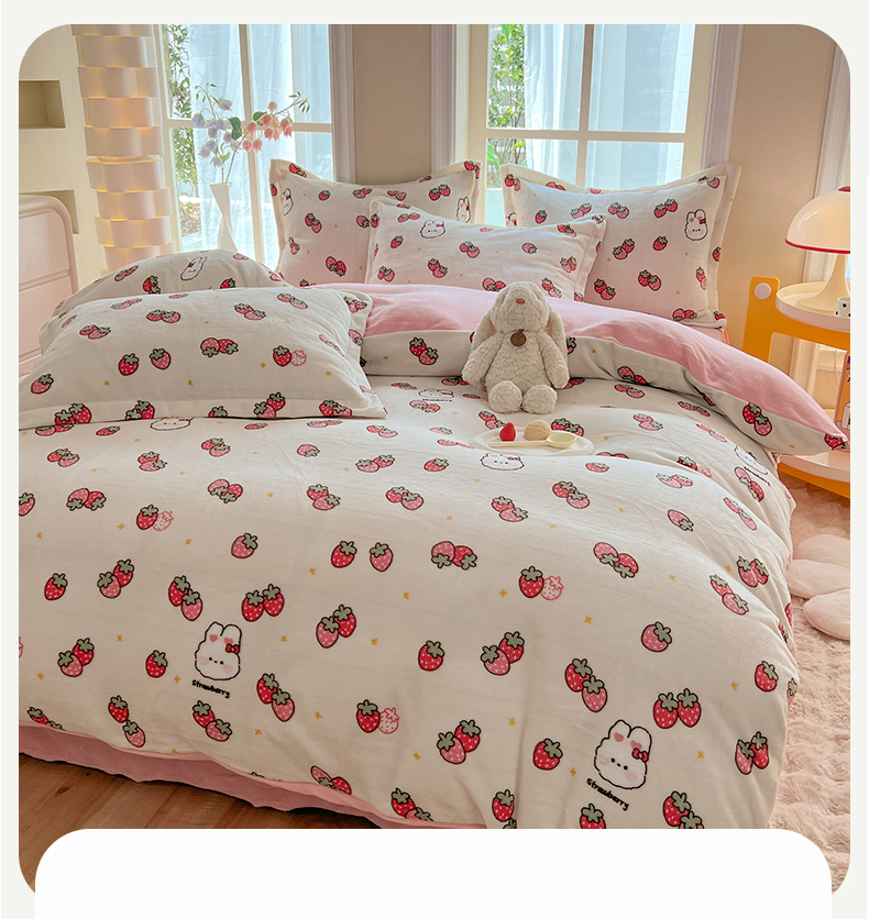 当前位置: 91家纺网 > 商品网购 > 床品套件 > 四件套 > 牛奶绒四件套 > 妖妖家纺 2023新款牛奶绒四件套 草莓兔