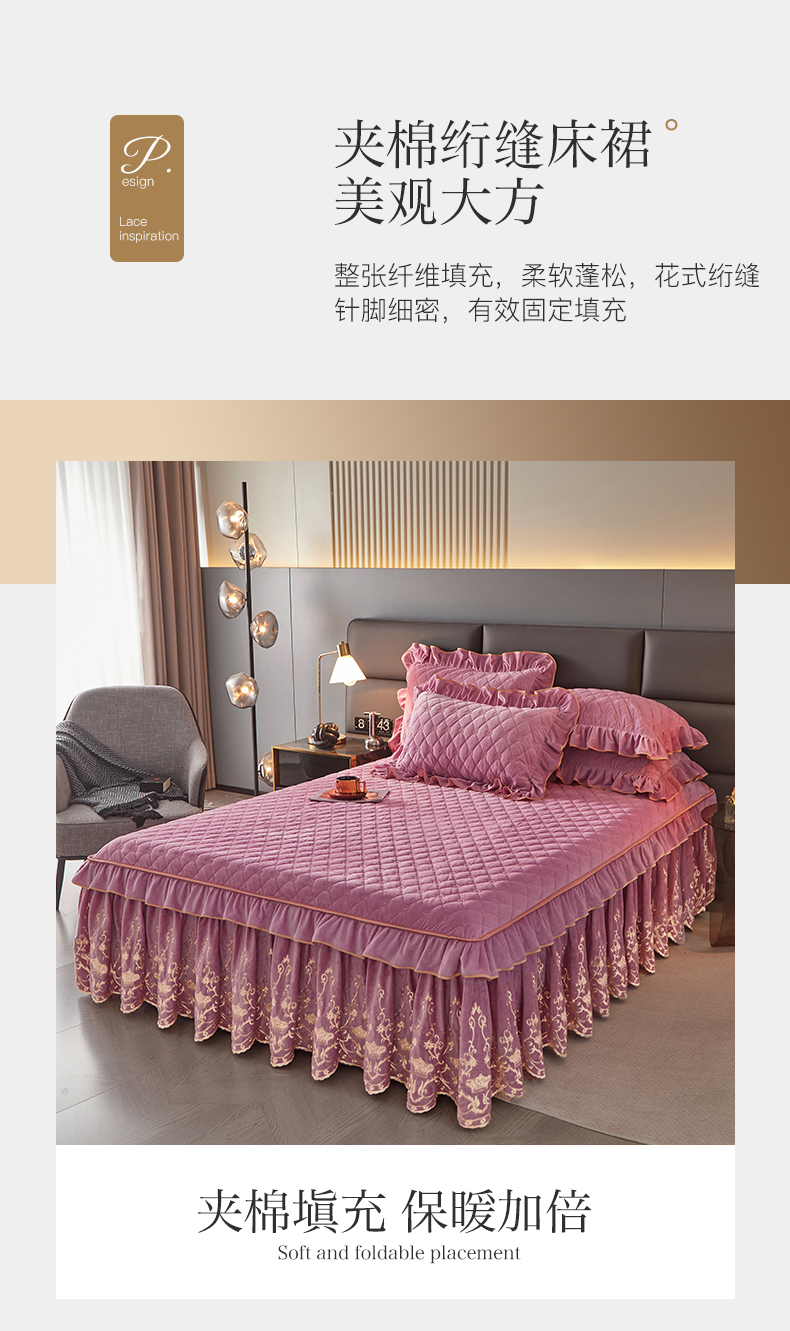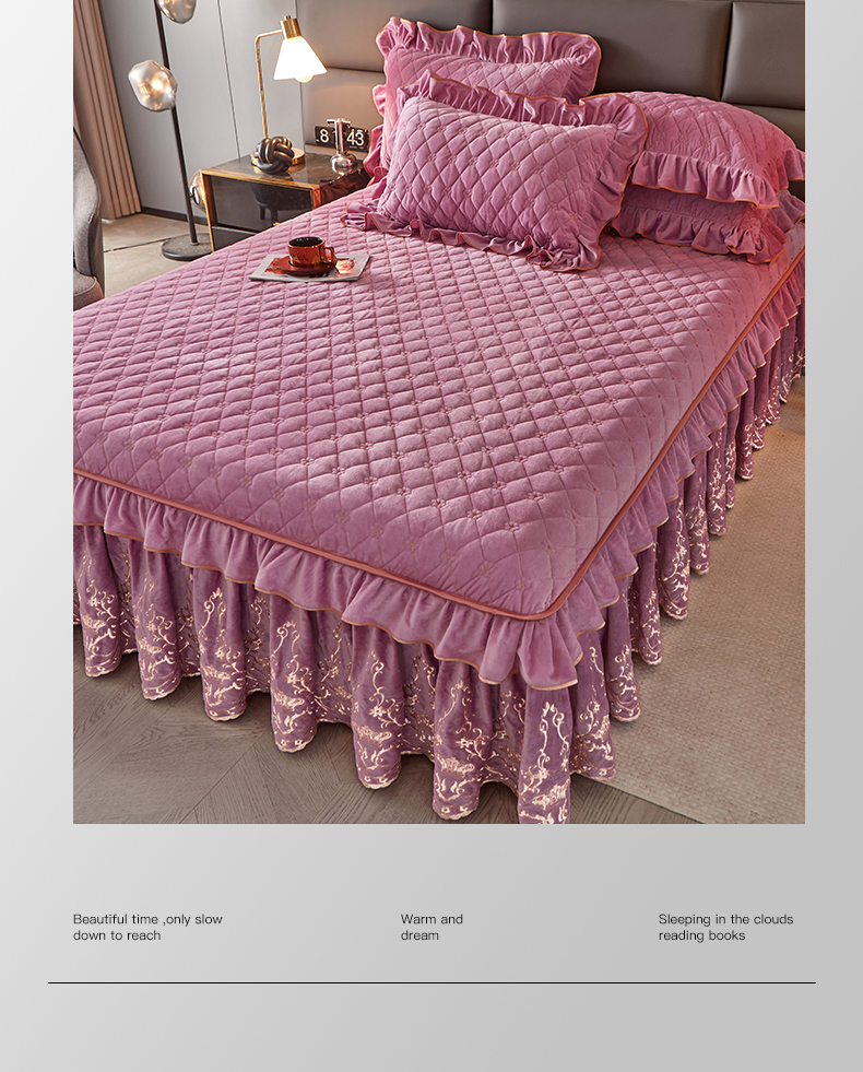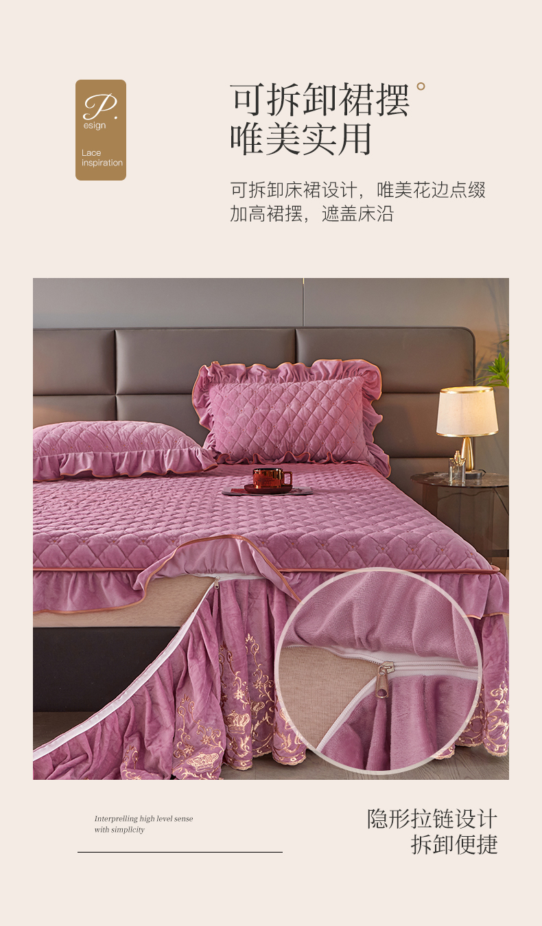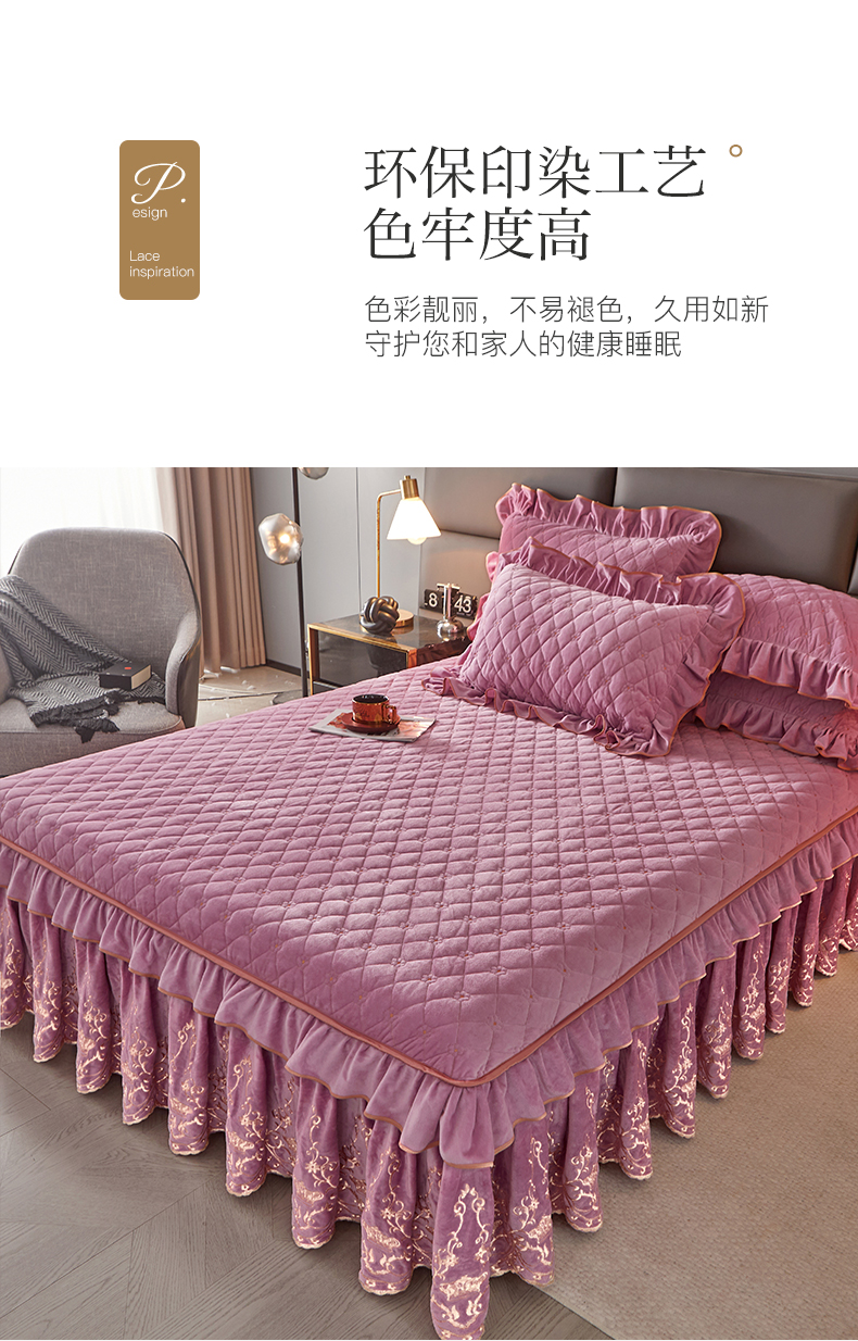 当前位置: 91家纺网 > 商品网购 > 床品套件 > 三件套 > 罗艺轩 2024新款欧洲风情宝宝绒可拆卸夹棉床裙三件套 丁香紫