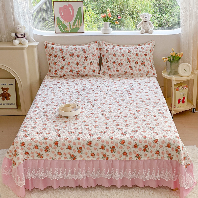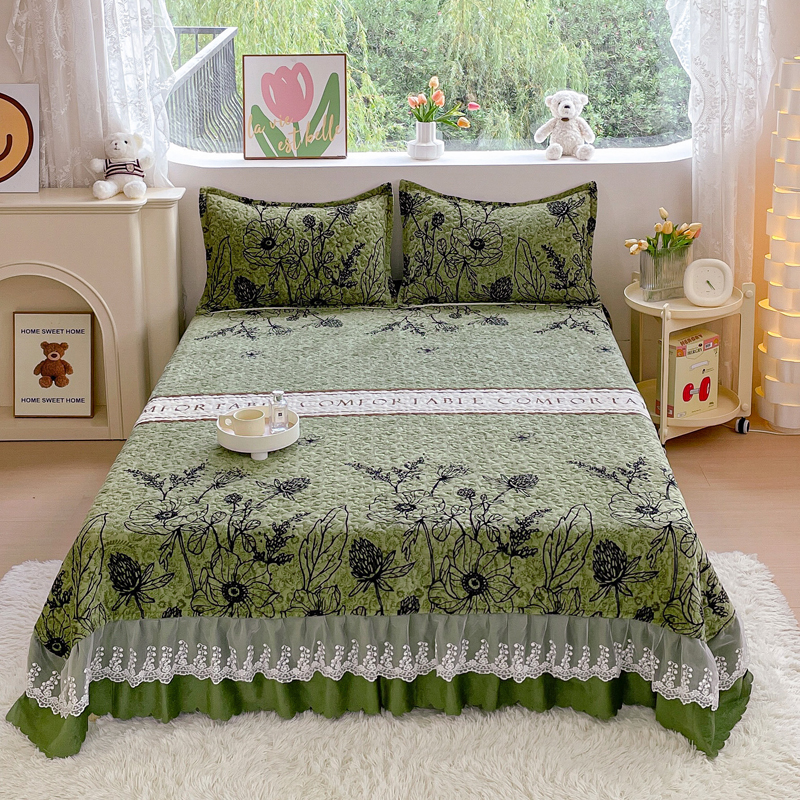 (总)雅眠居 2023新款直播爆款牛奶绒双层蕾丝床盖夹棉床裙款