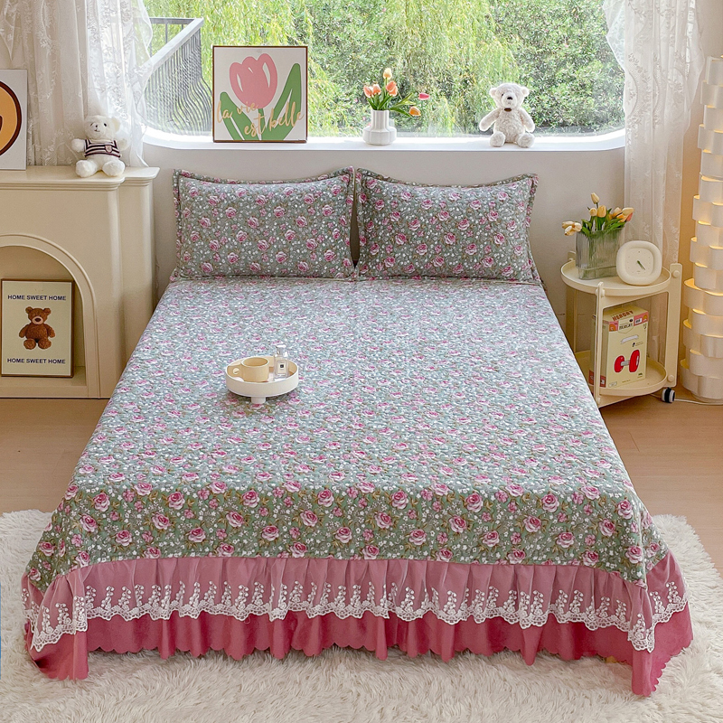 雅眠居 2023新款直播爆款牛奶绒双层蕾丝床盖夹棉床裙款 玫瑰庄园