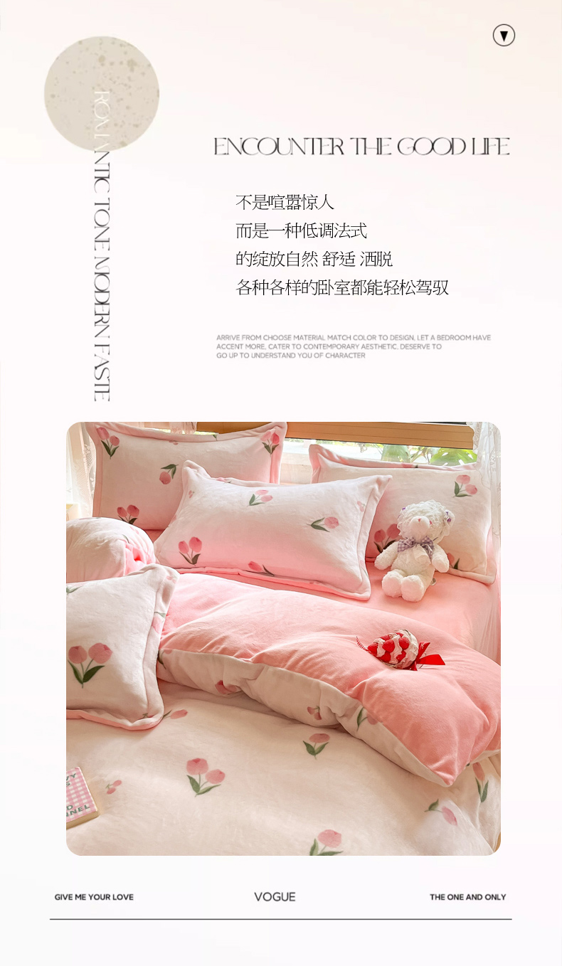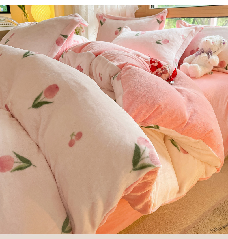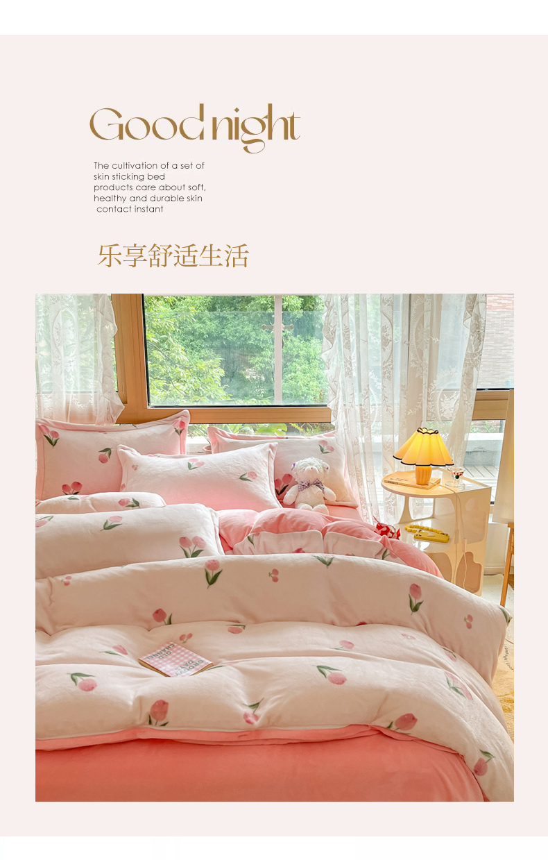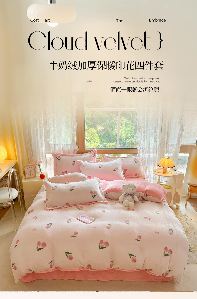 当前位置: 91家纺网 > 商品网购 > 床品套件 > 四件套 > 牛奶绒四件套 > 慕澄家纺 2023新款小清新牛奶绒印花四件套 粉小花