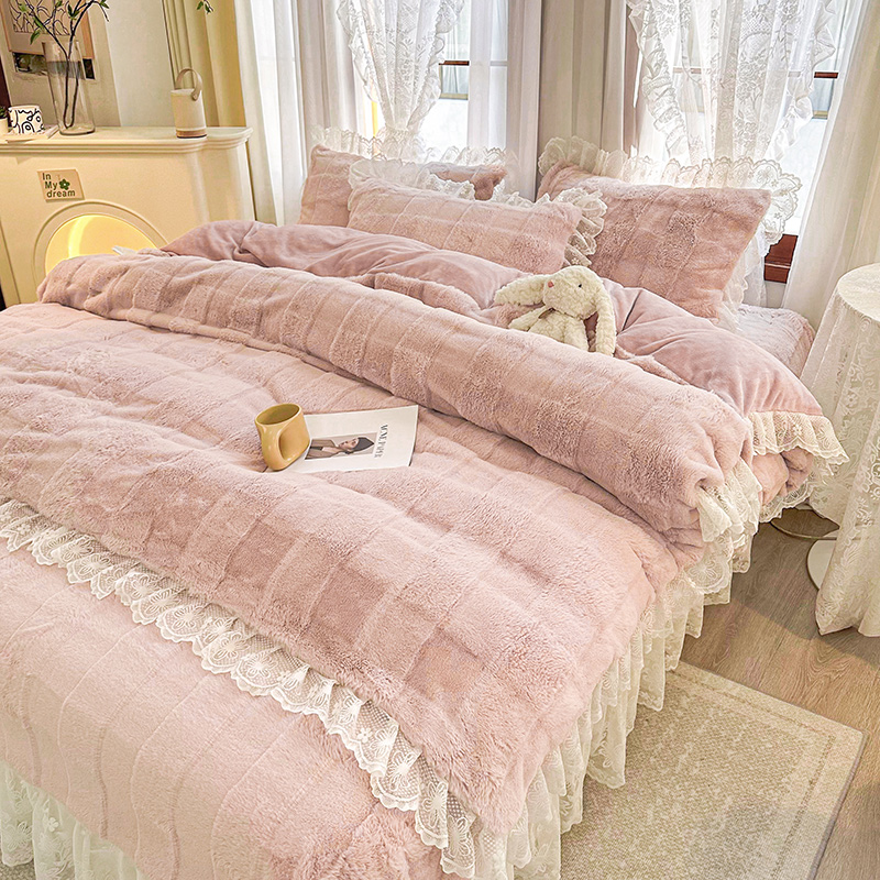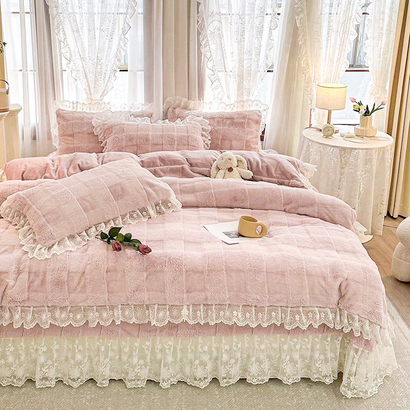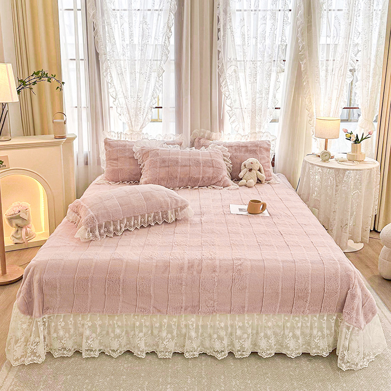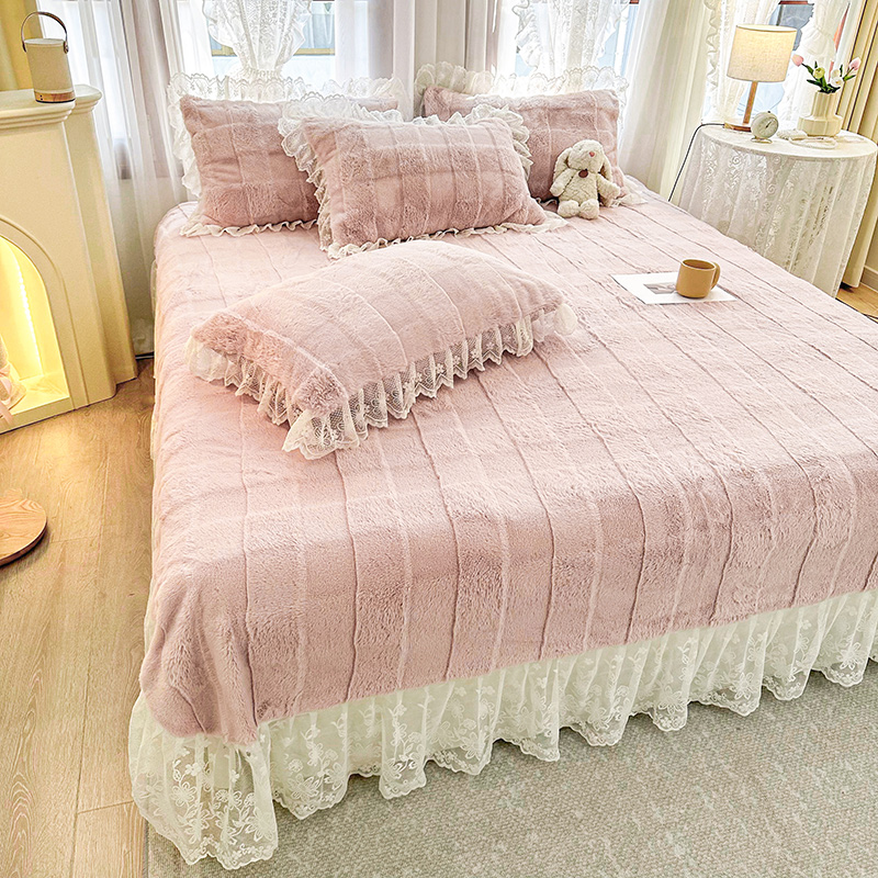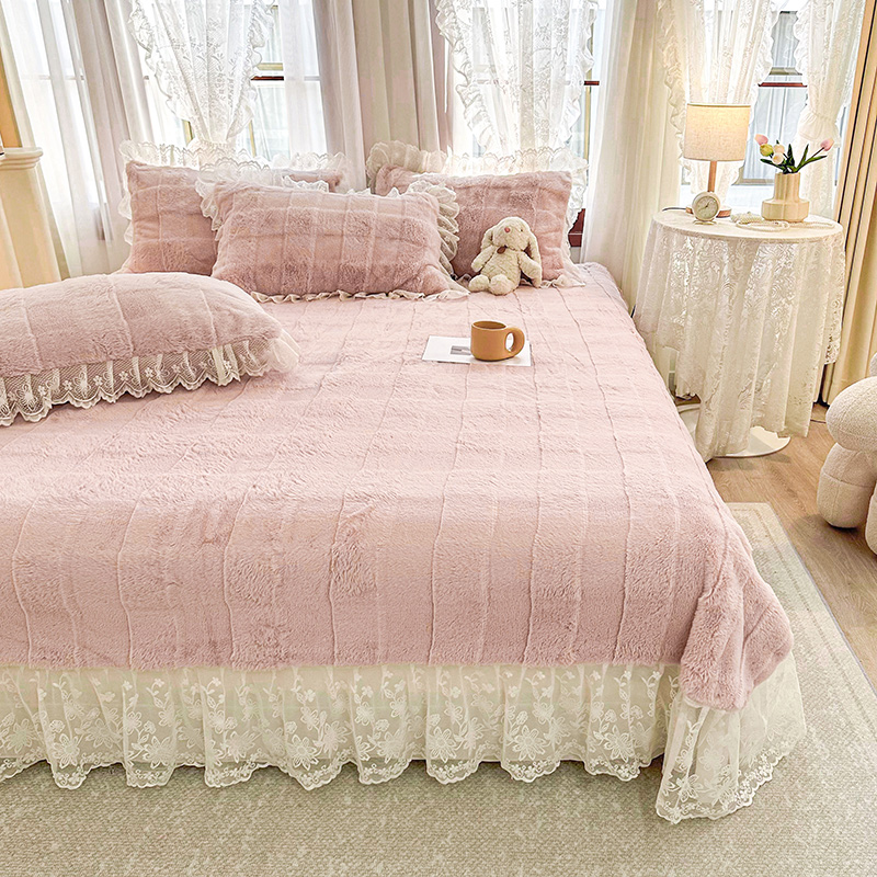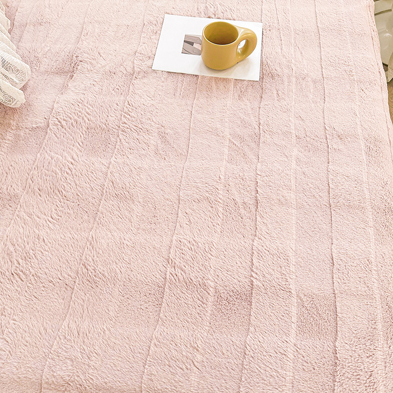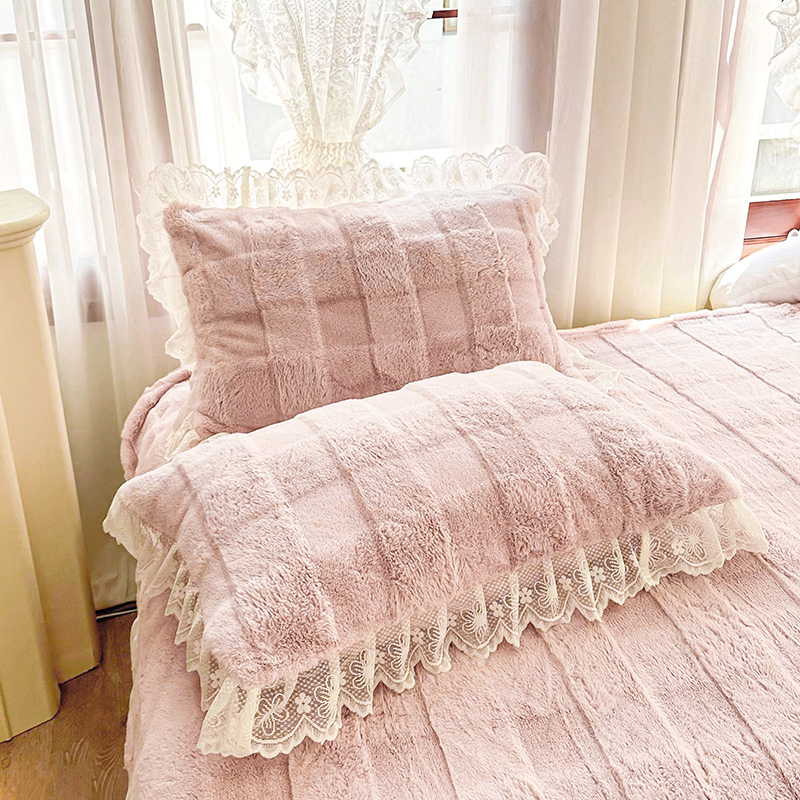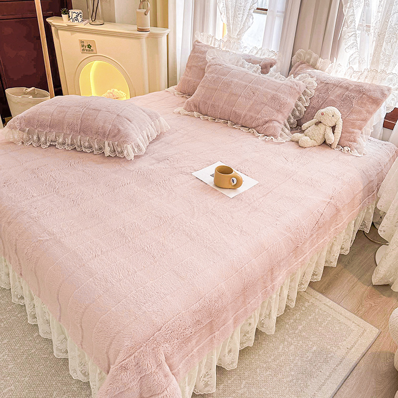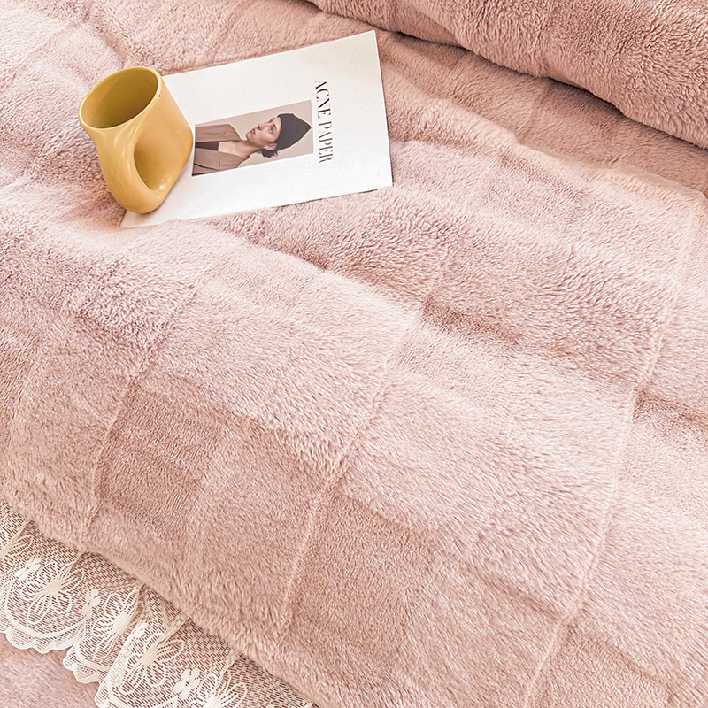 商品名称:宜凡家纺 2023新款宜凡-高克重兔绒牛奶绒床盖三件套 方格纹-温莎粉