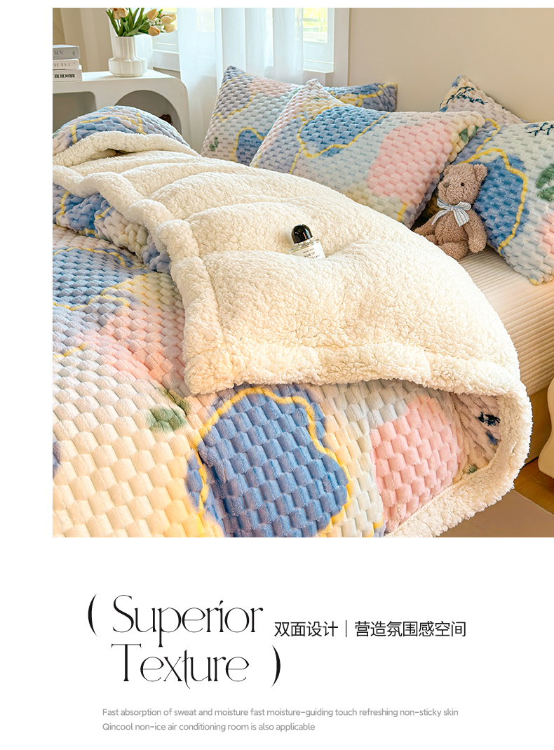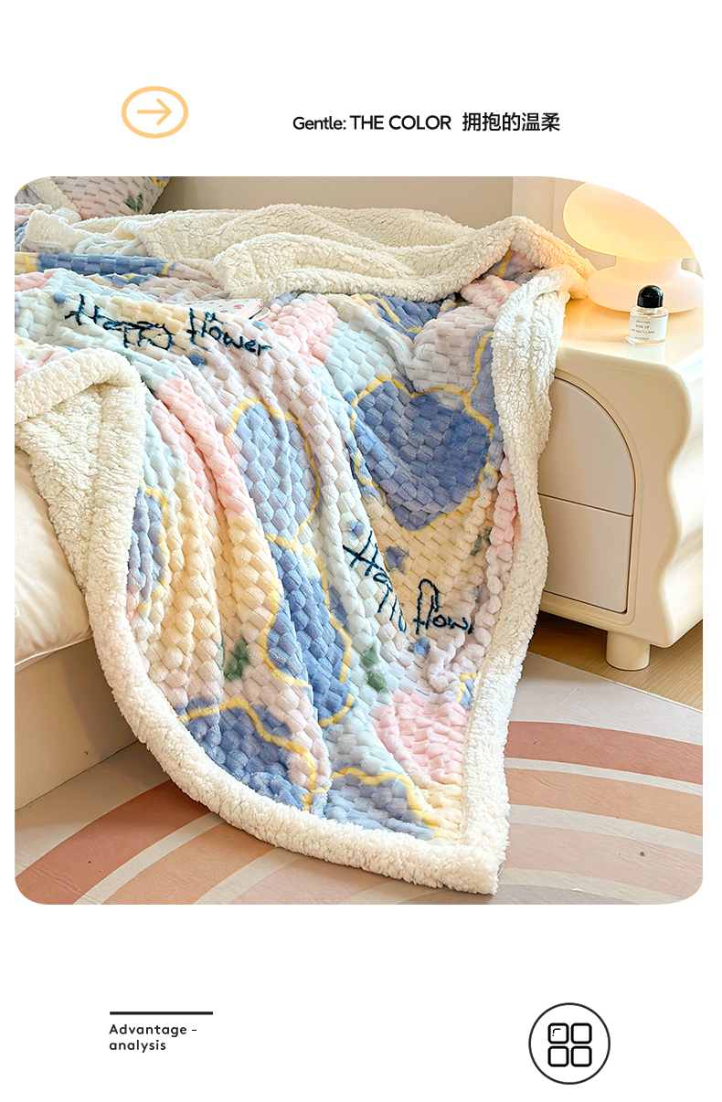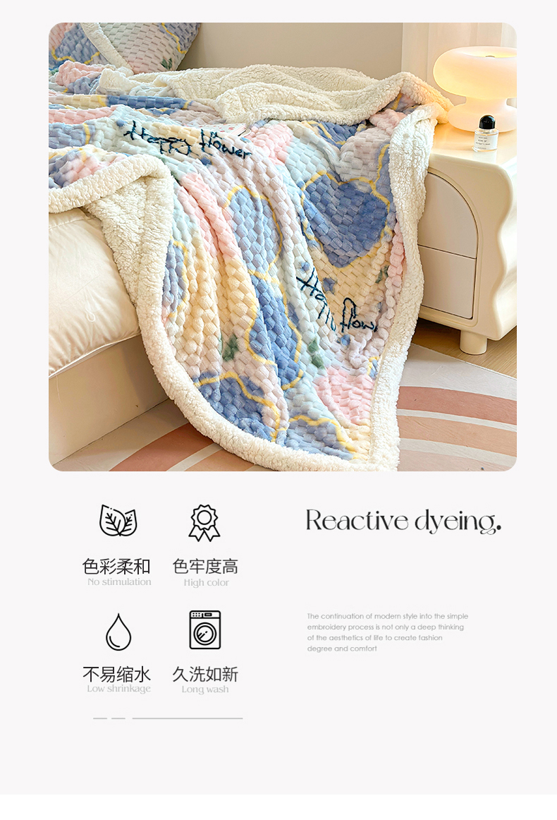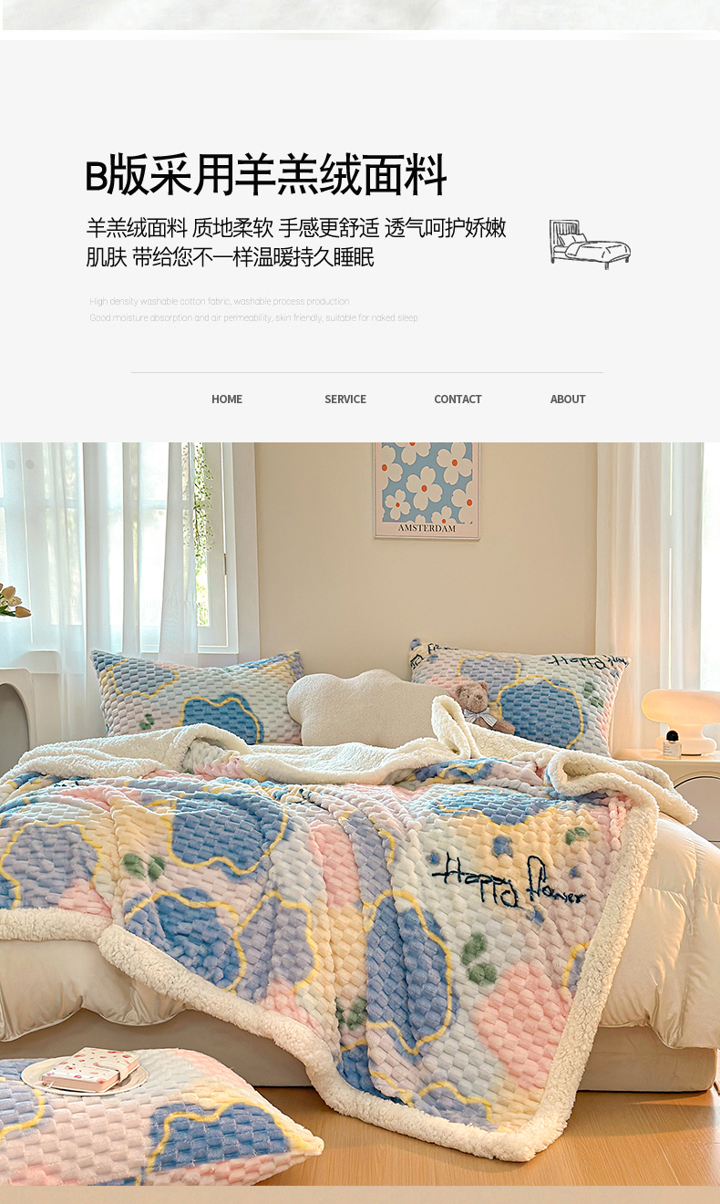 网客 2024新款豆豆绒印花被套毯 开心花