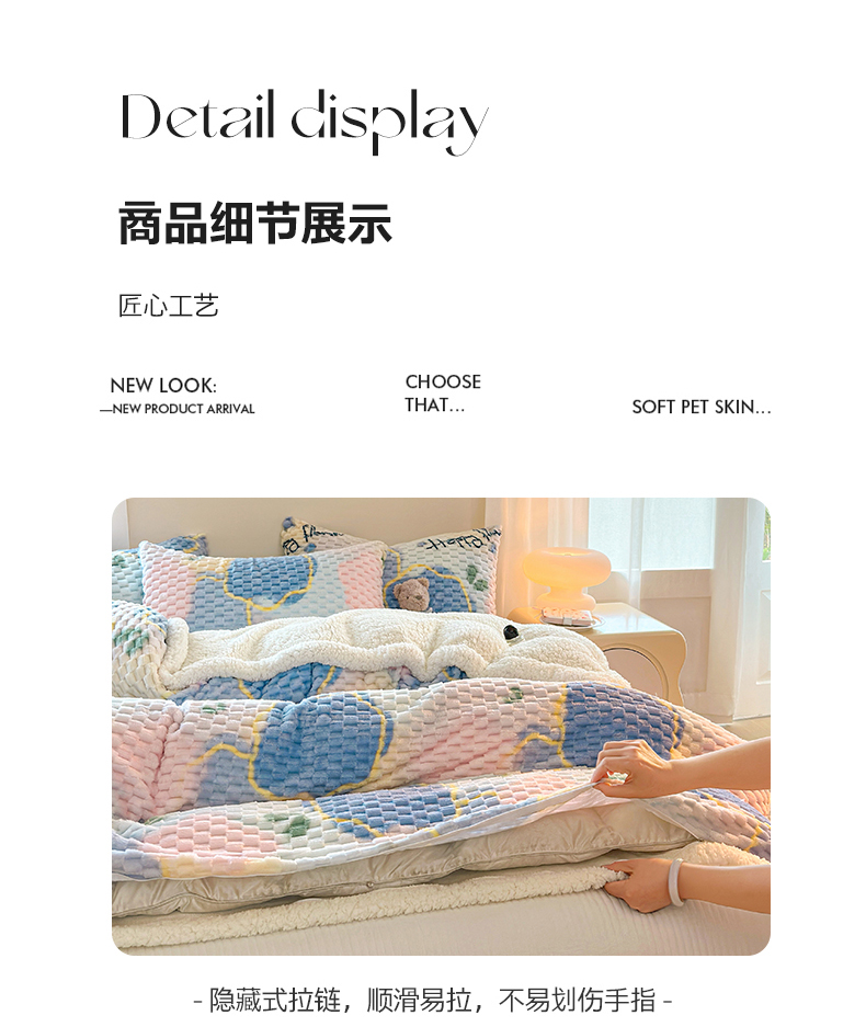 (总)网客家纺 2025新款羊毛绒牛奶绒夹棉床盖四件套,豹点-深灰,简格-黑色,简格-咖色,空间-红色,泥点-灰色,泥点-咖色,维奥-灰色,斜格-灰色,斜格-墨绿