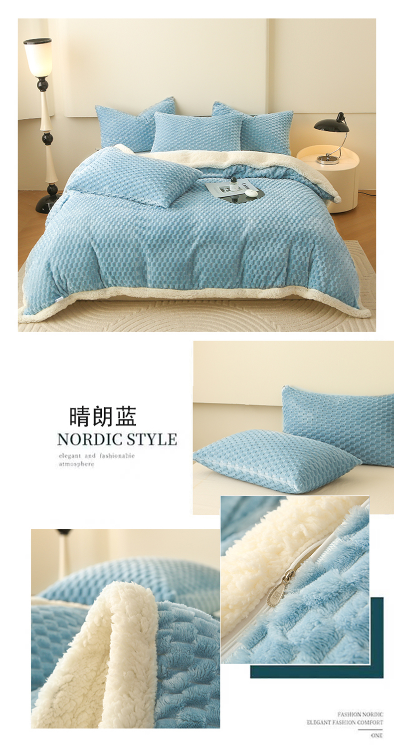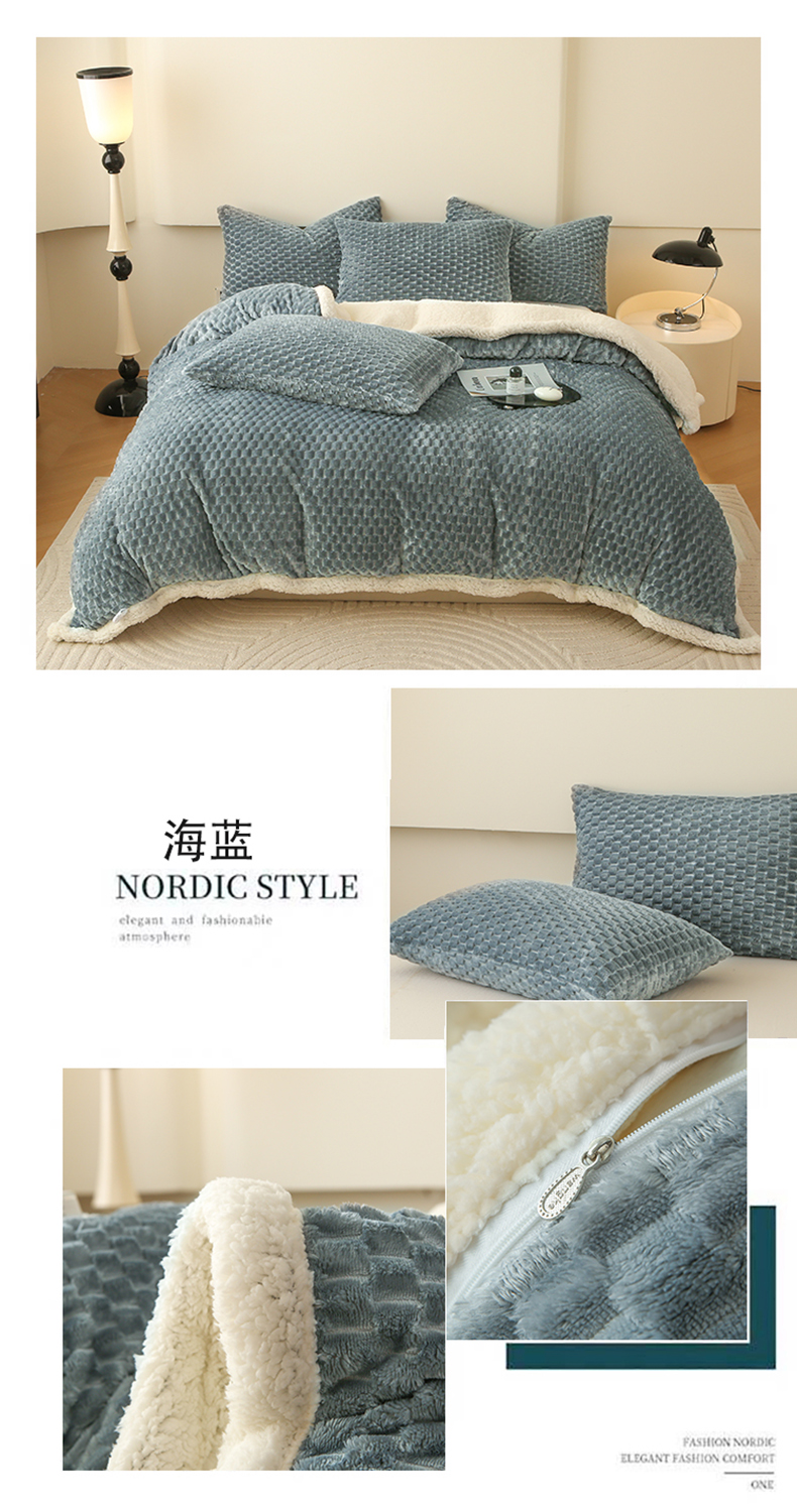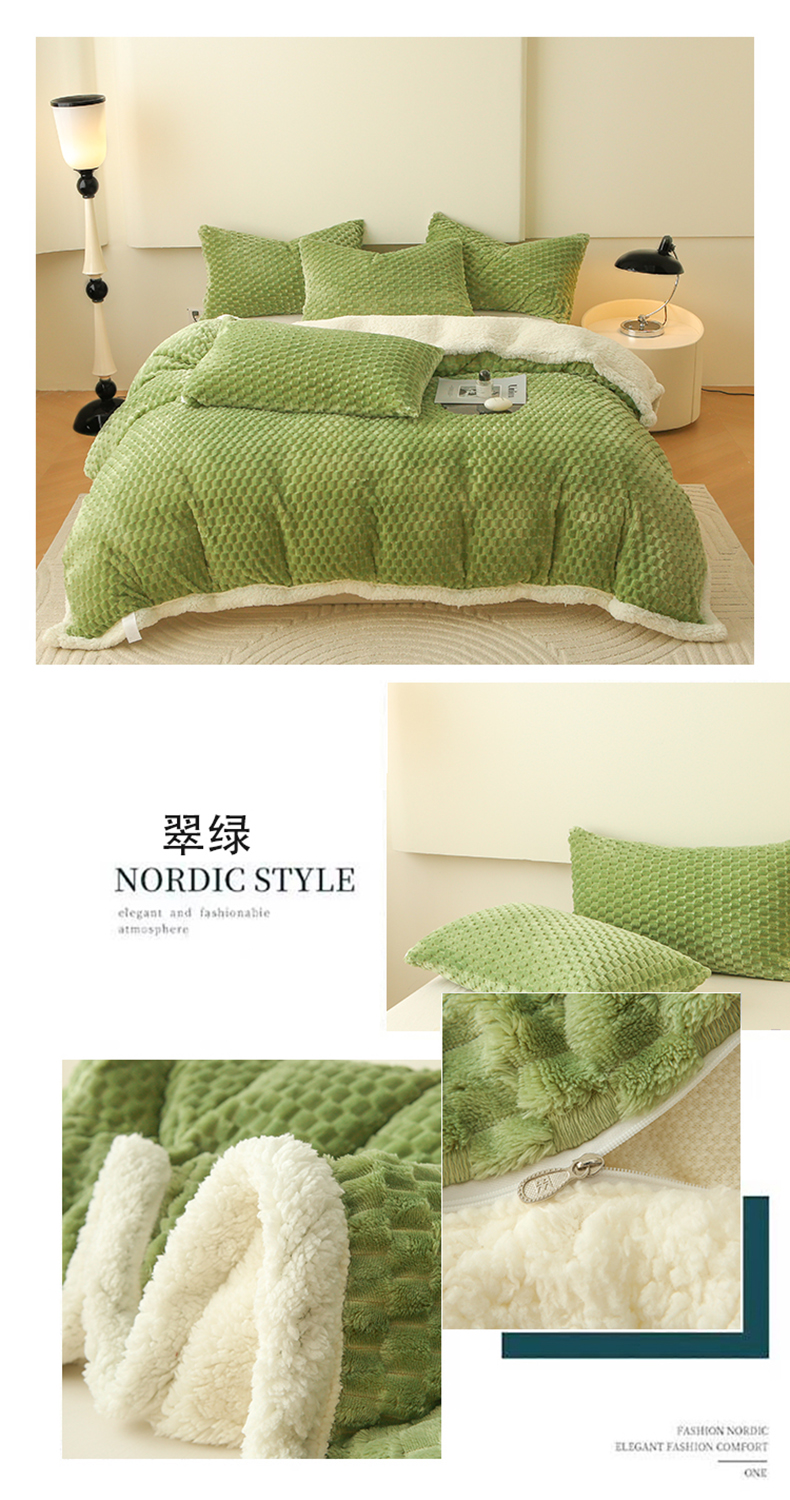 (总)网客家纺 2025新款羊毛绒牛奶绒夹棉床盖四件套,豹点-深灰,简格-黑色,简格-咖色,空间-红色,泥点-灰色,泥点-咖色,维奥-灰色,斜格-灰色,斜格-墨绿