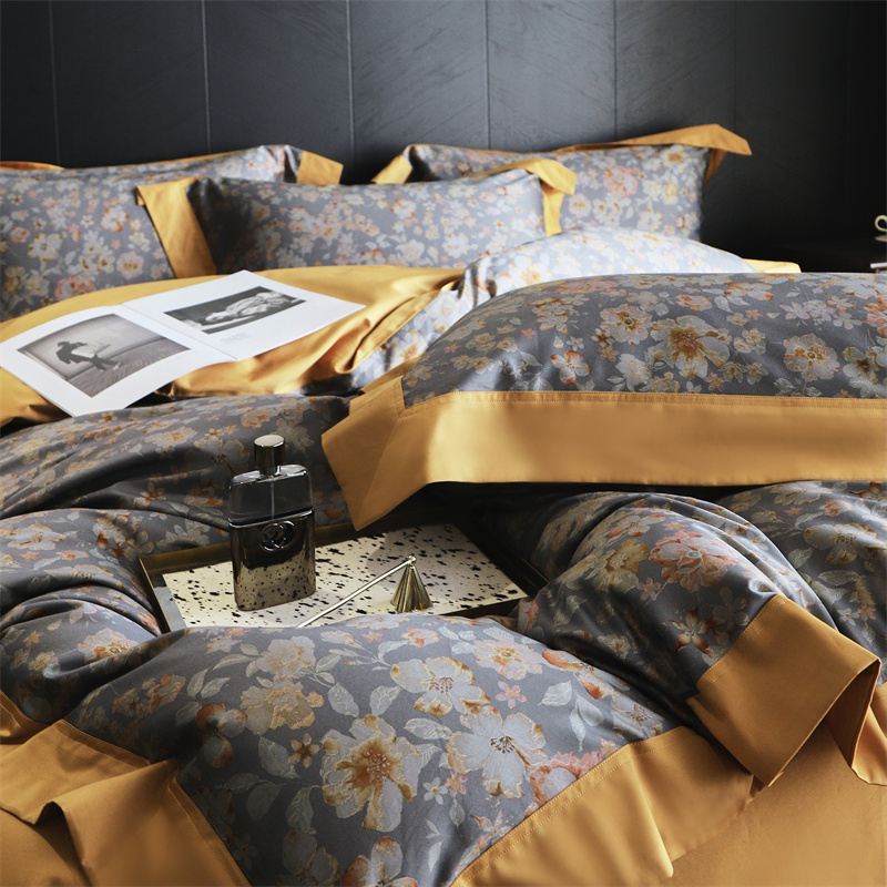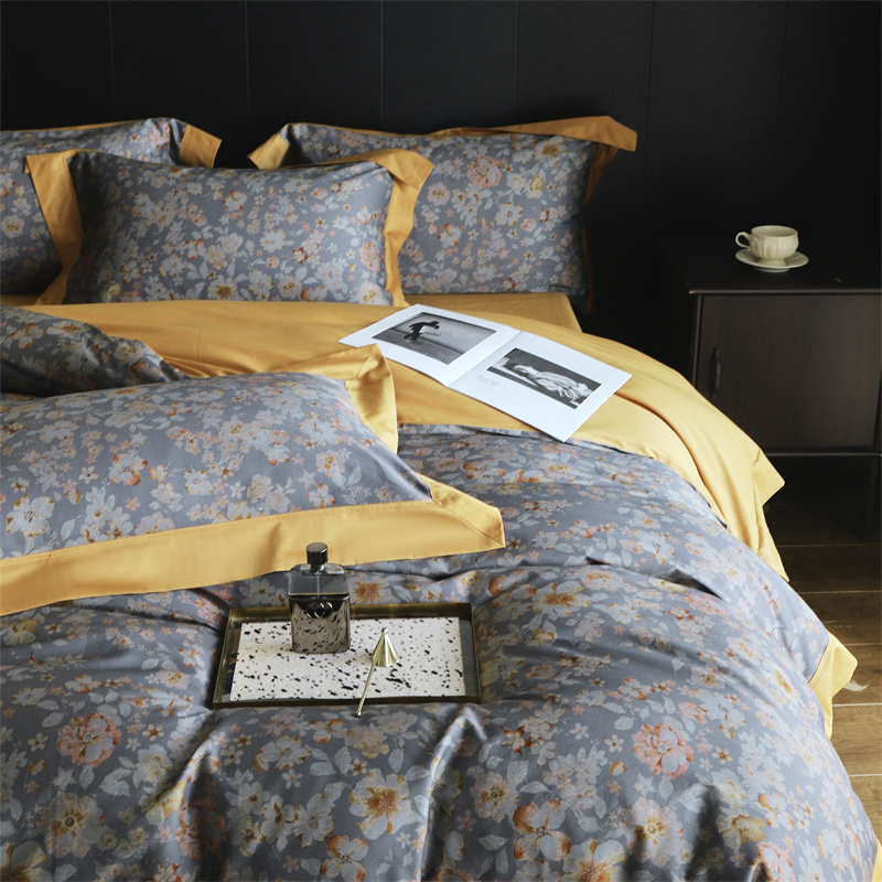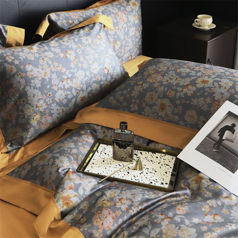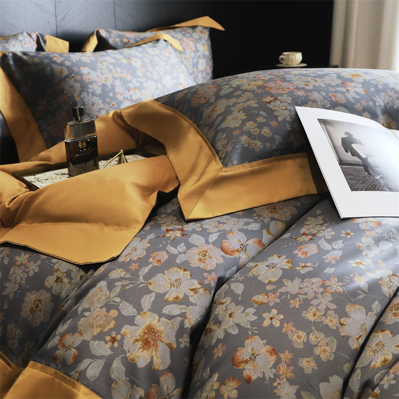 商品名称:朵美 2023新款160支全棉数码印花四件套 琉花(灰)