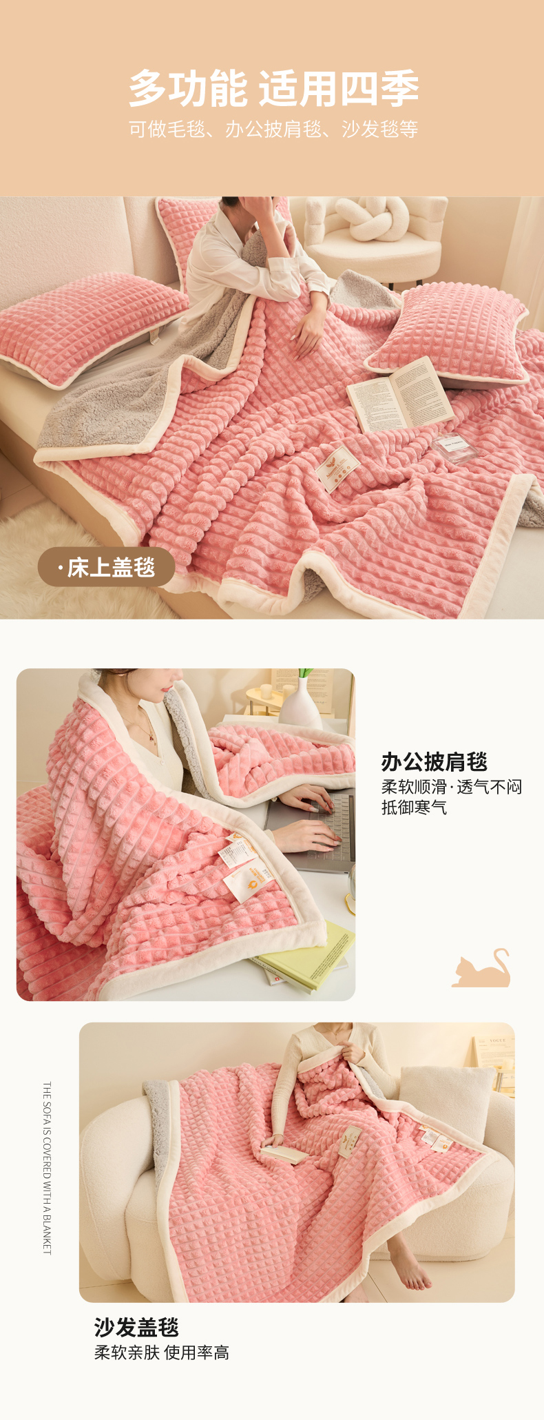 (总)21度C 2025新款暖阳牛奶绒多功能复合毯毛毯,云朵-卡其,云朵-奶白,云朵-浅粉,云朵-浅蓝,云朵-雾蓝,云朵-烟灰