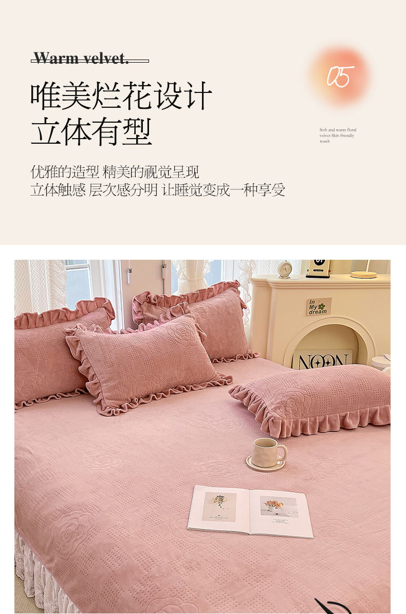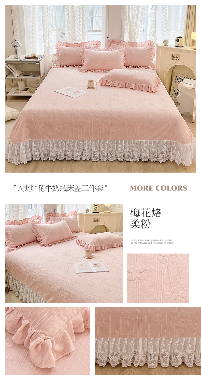 商品名称:宜凡 2023新款烂花牛奶绒床盖三件套 梅花烙-柔粉