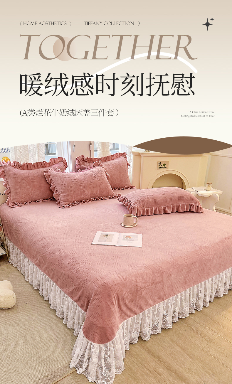 (总)宜凡家纺 2025新款兔绒提花牛奶绒夹棉床裙四件套,爱心 少女粉,爱心 粉紫,爱心 驼色,蝶舞 大红,蝶舞 米色,蝶舞 浅紫,蝶舞 玉色,简爱 苍青,简爱 豆沙紫,简爱 玉色,樱桃 苍青,樱桃 豆沙紫,樱桃 奶油白