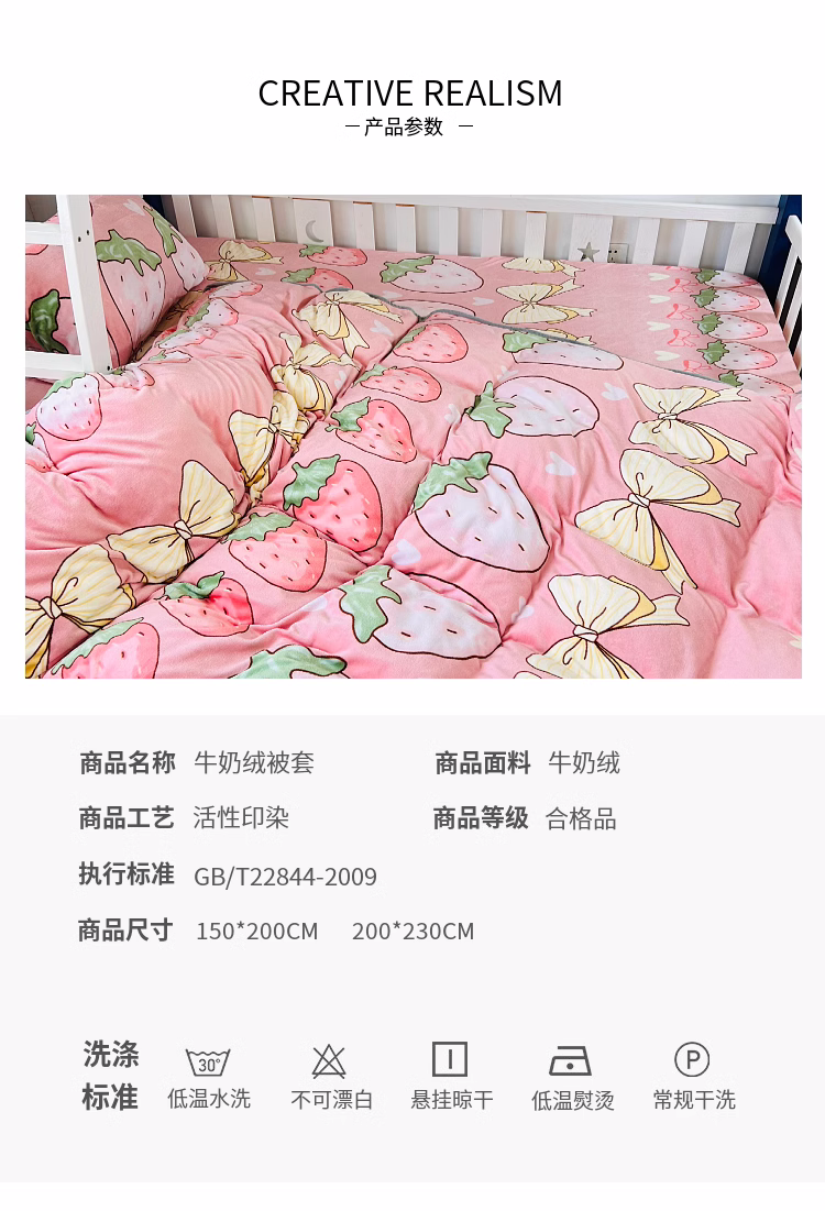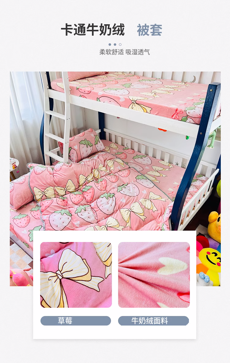 当前位置: 91家纺网 > 商品网购 > 床上用品 > 被套 > 小虾米 2023新款上下床加厚牛奶绒被套 草莓