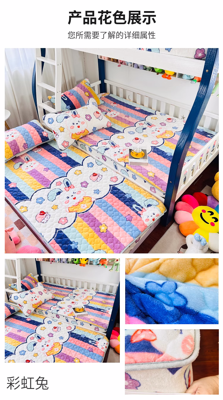 • 91家纺网 家纺一手货源 找家纺 小虾米 2023新款上下床加厚牛奶绒夹棉床笠 彩虹兔