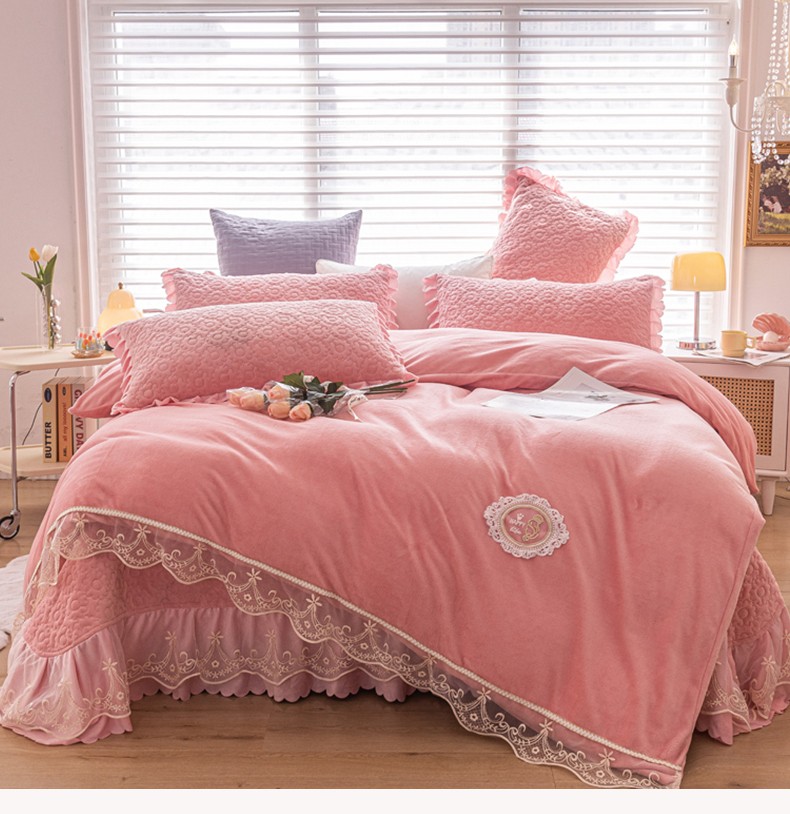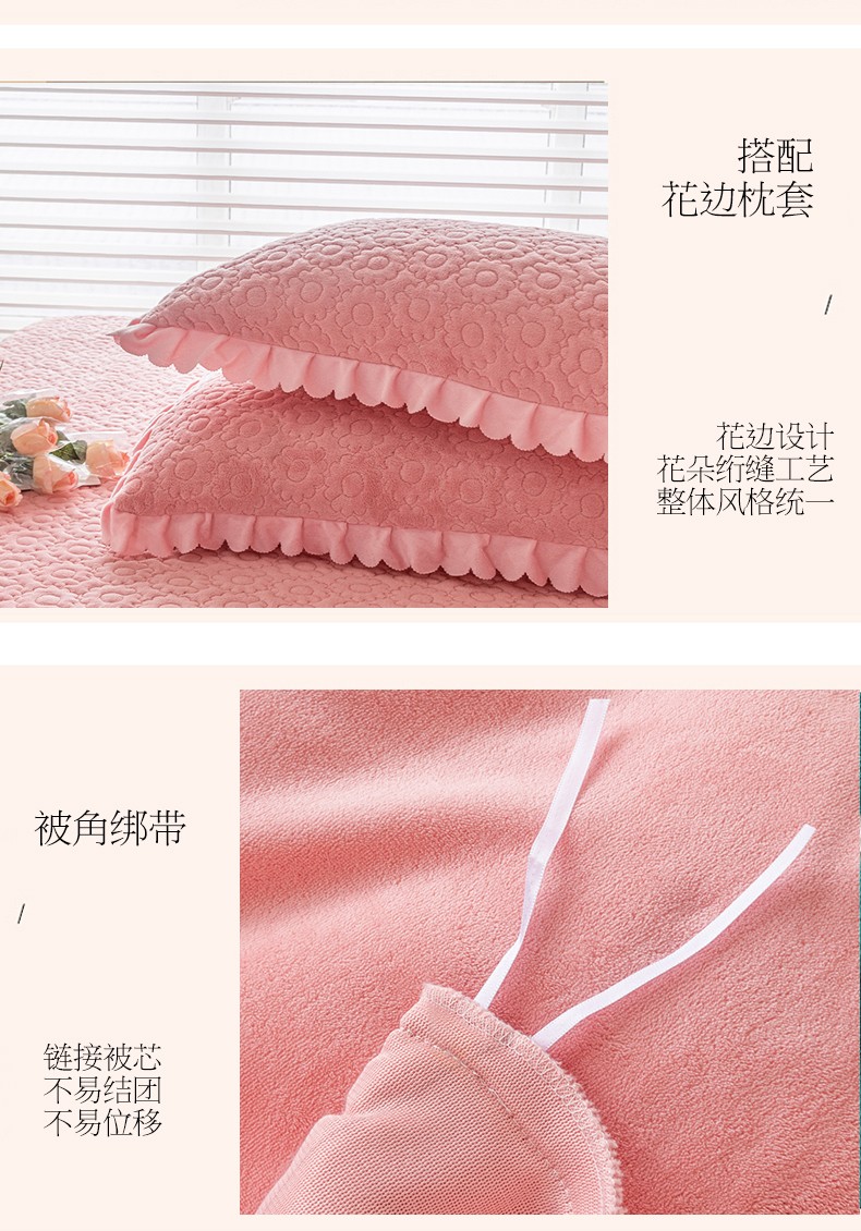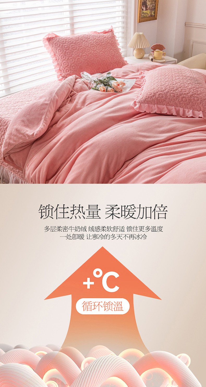 (总)乐嘉盈 2025年新款纯色雕花牛奶绒四件套,粉色