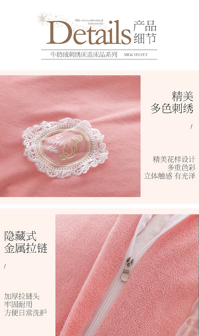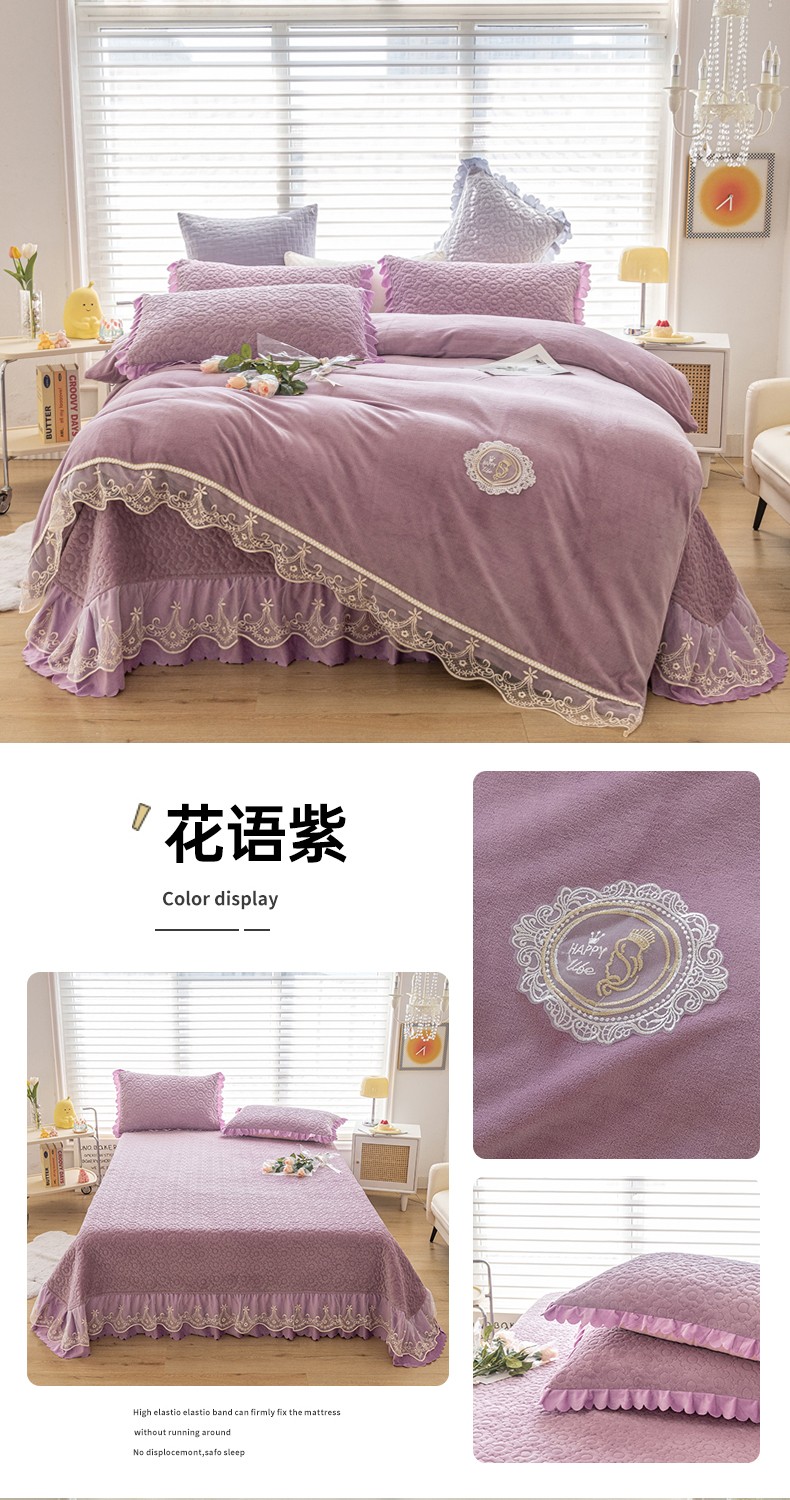 (总)乐嘉盈2025年新款纯色刺绣床裙款牛奶绒四件套-云栖,云栖-豆沙,云栖-粉,云栖-蓝,云栖-绿,云栖-米白,云栖-紫