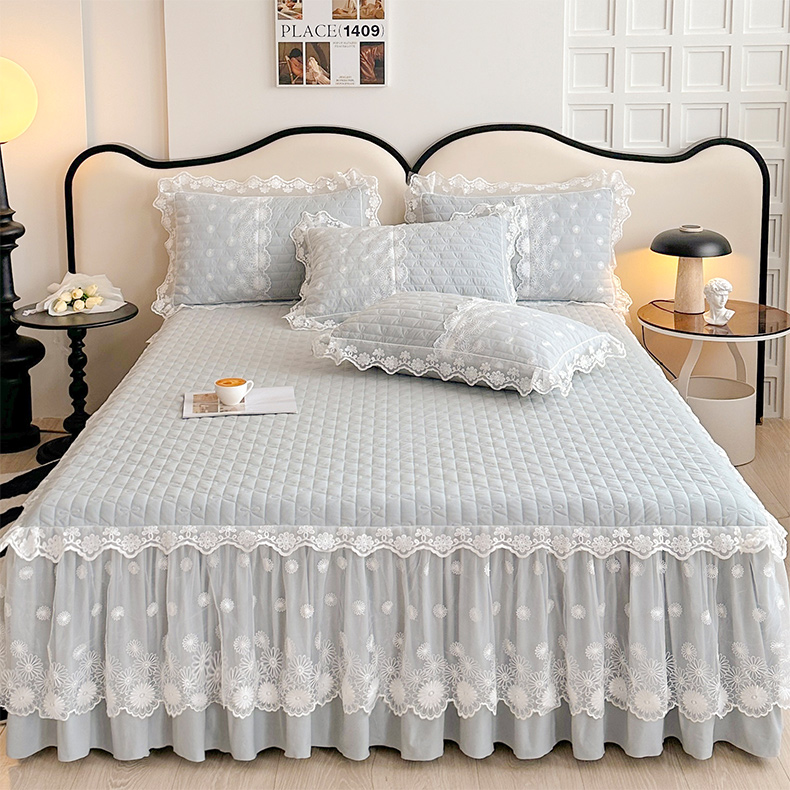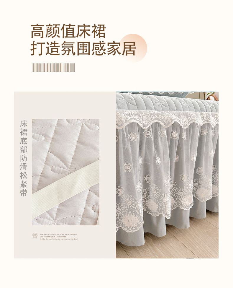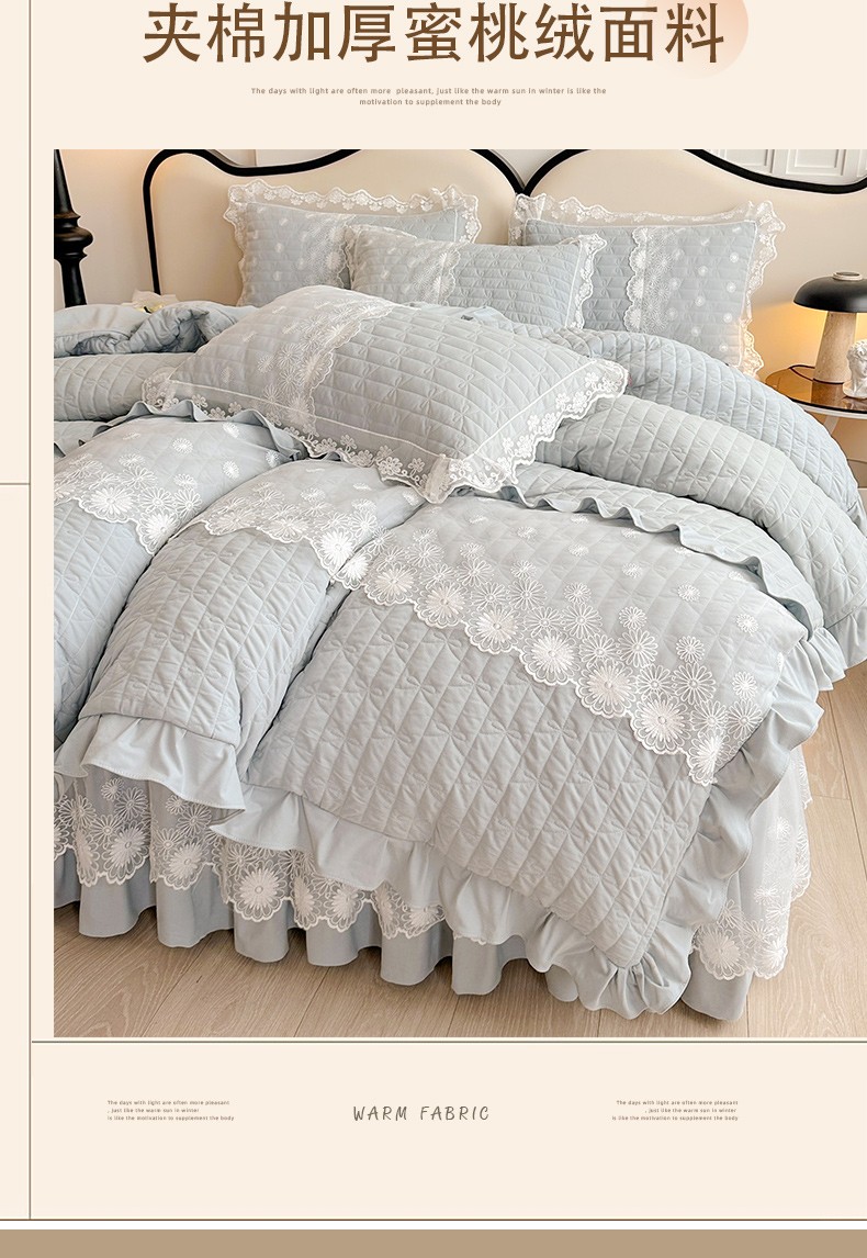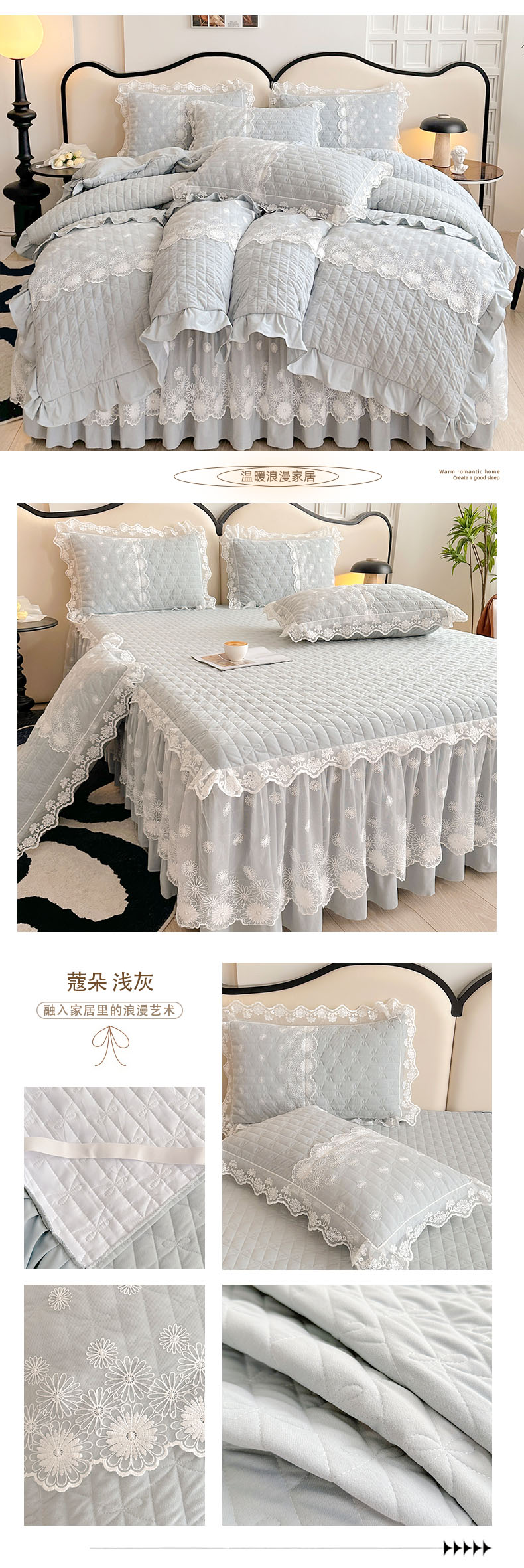 • 91家纺网 家纺一手货源 找家纺 恋尚 2023新款保暖蜜桃绒拉芙绒夹棉床裙四件套-蔻朵系列 蔻朵-浅灰