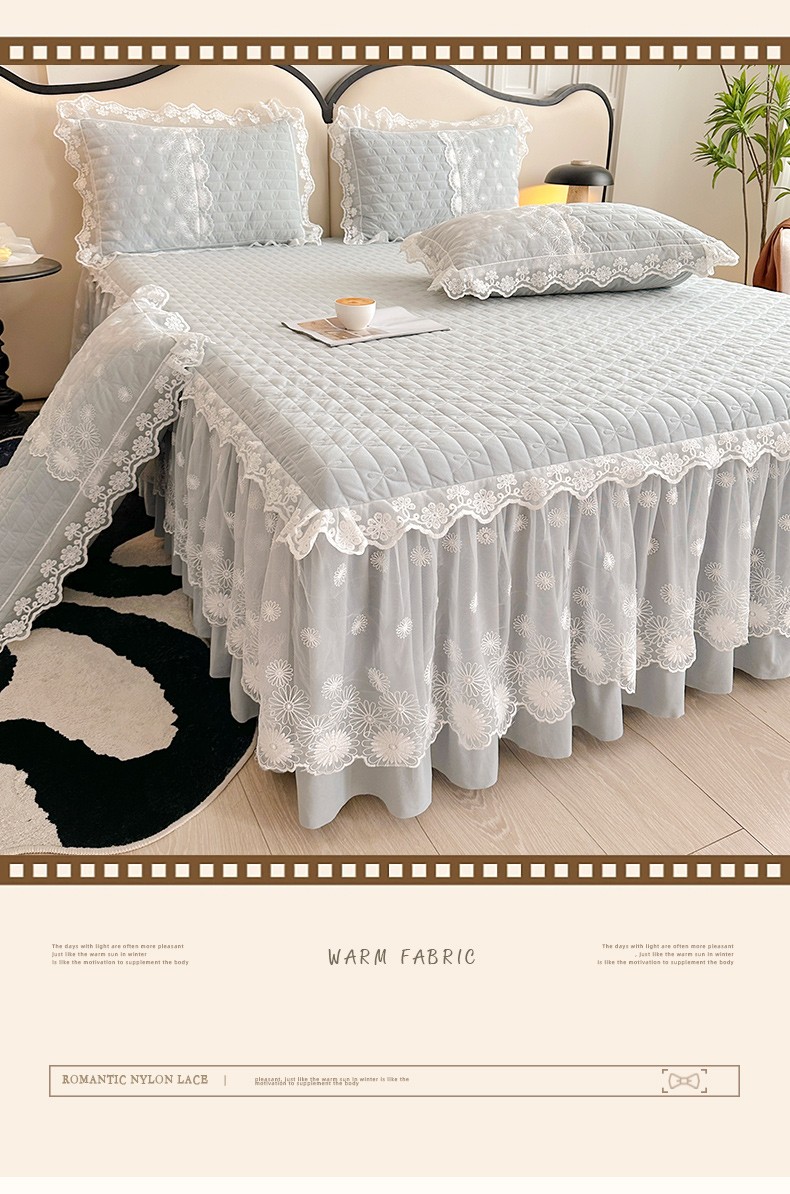恋尚 2023新款保暖蜜桃绒拉芙绒夹棉床裙四件套-蔻朵系列 蔻朵-浅灰