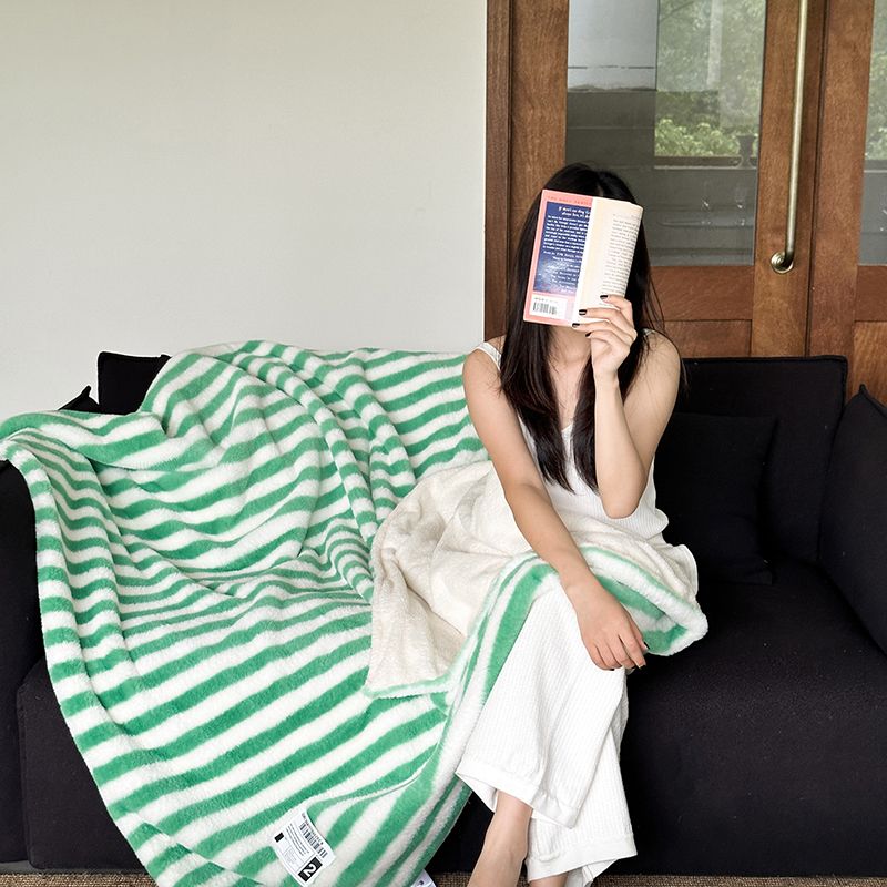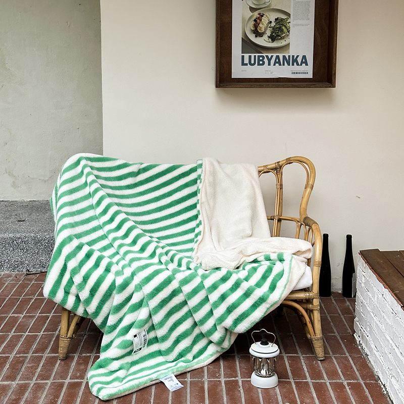 桔子家纺 2023新款兔兔绒皮草毛毯 绿色条纹