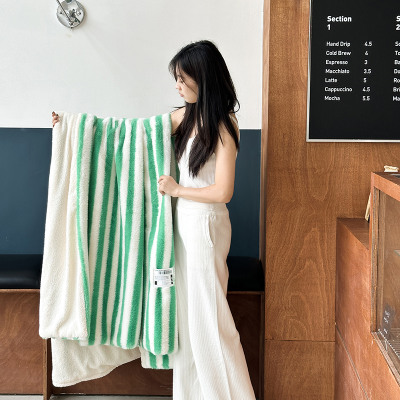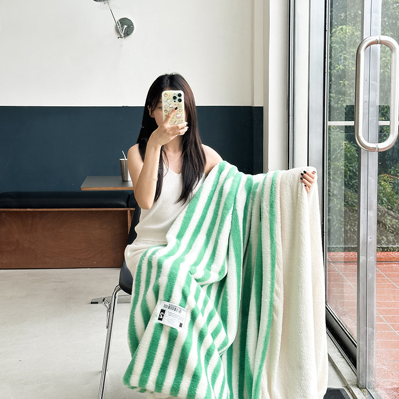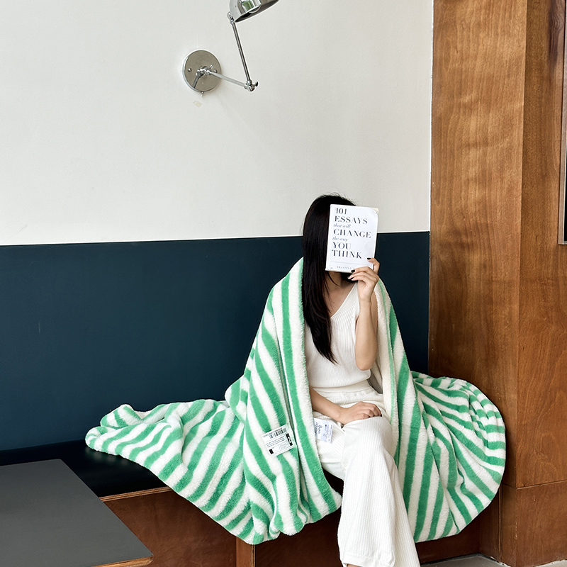 商品名称:桔子家纺 2023新款兔兔绒皮草毛毯 绿色条纹