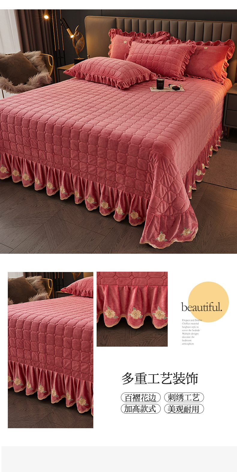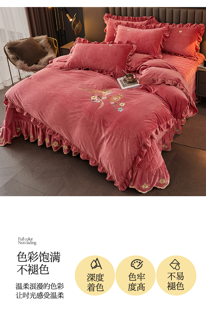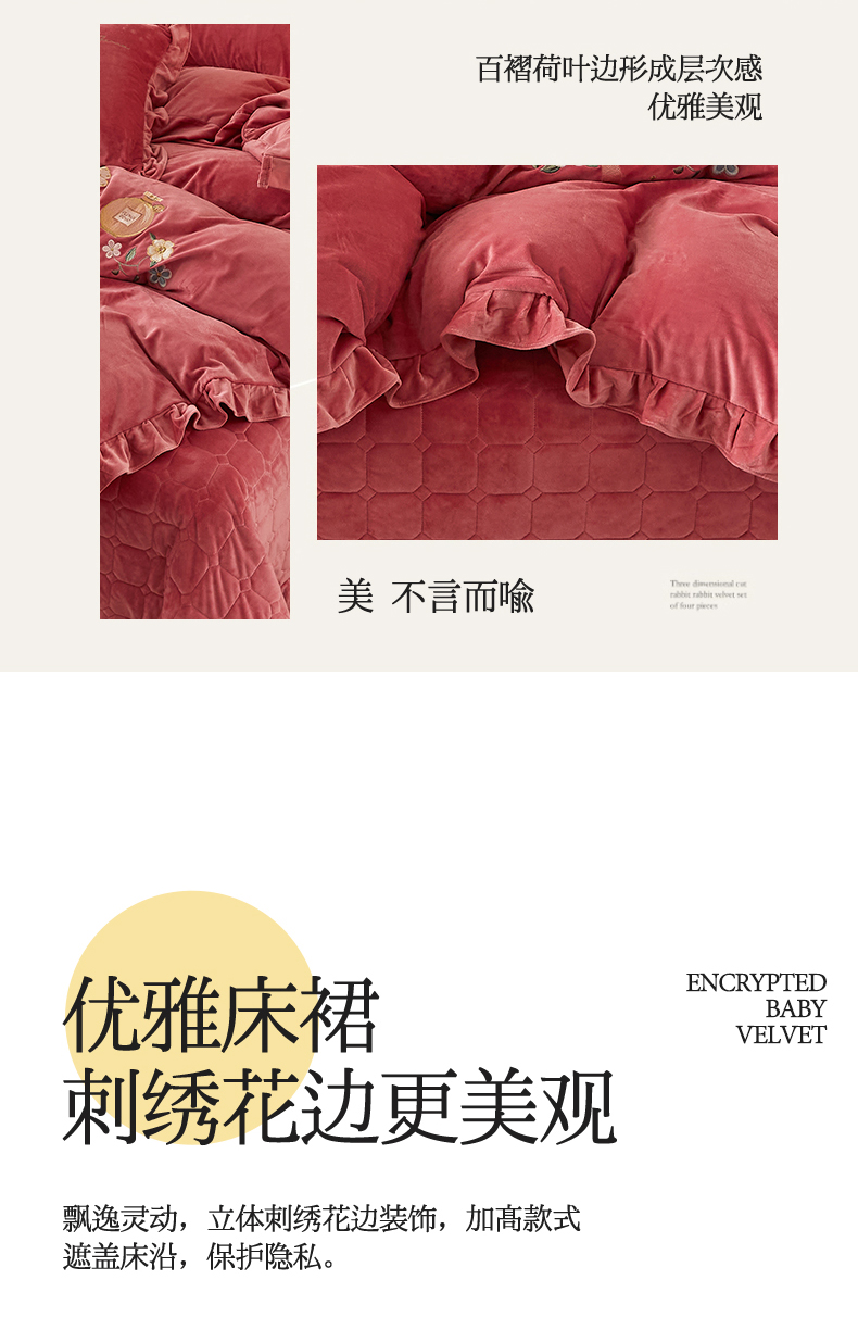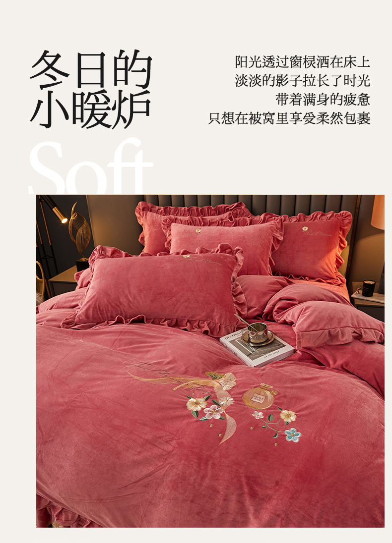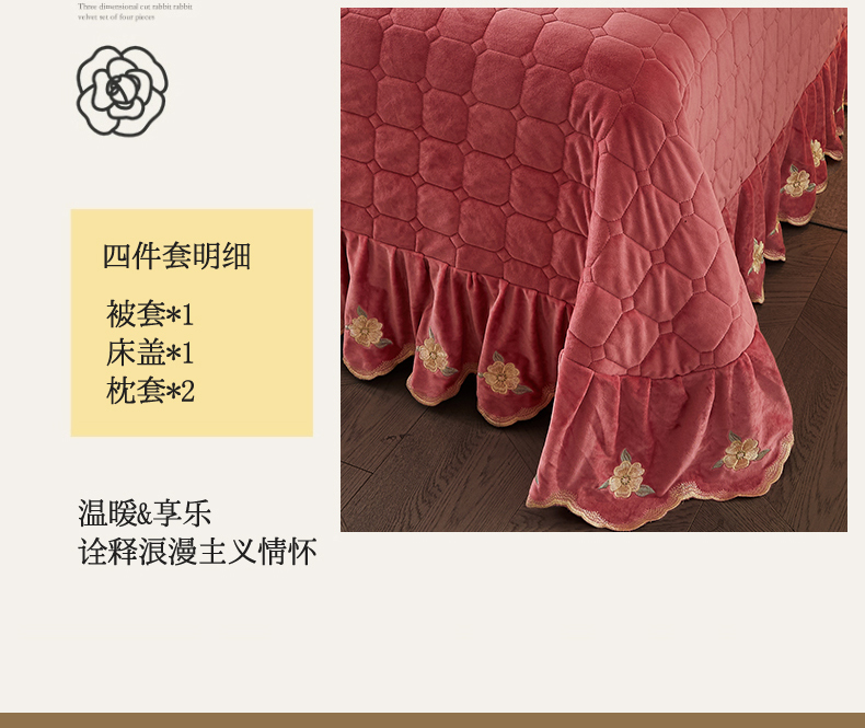 当前位置: 91家纺网 > 商品网购 > 床品套件 > 四件套 > 宝宝绒四件套 > 恒爱家纺 2023新款温暖舒适加密宝宝绒床盖四件套-邂逅系列 豆沙