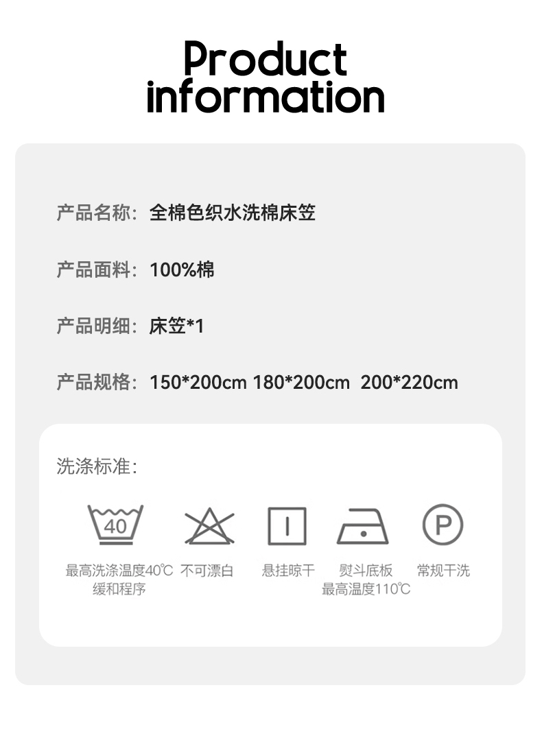商品名称:(总)恒爱家纺 2023新款舒适亲肤全棉色织水洗棉床笠