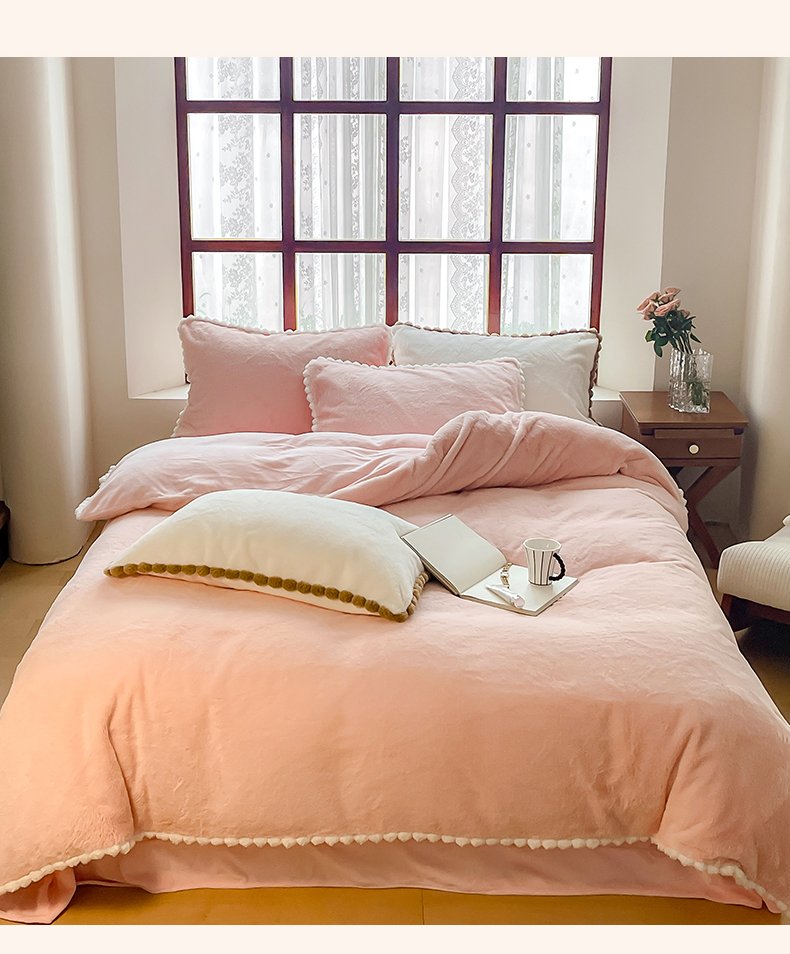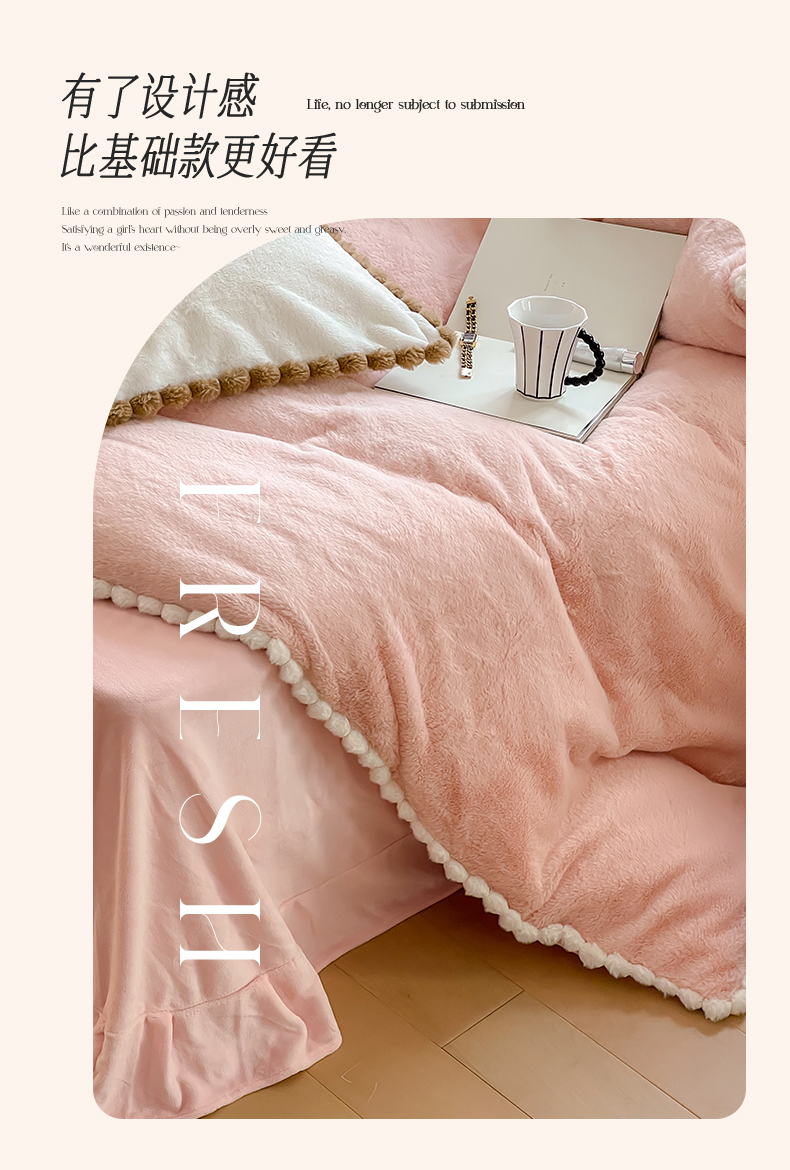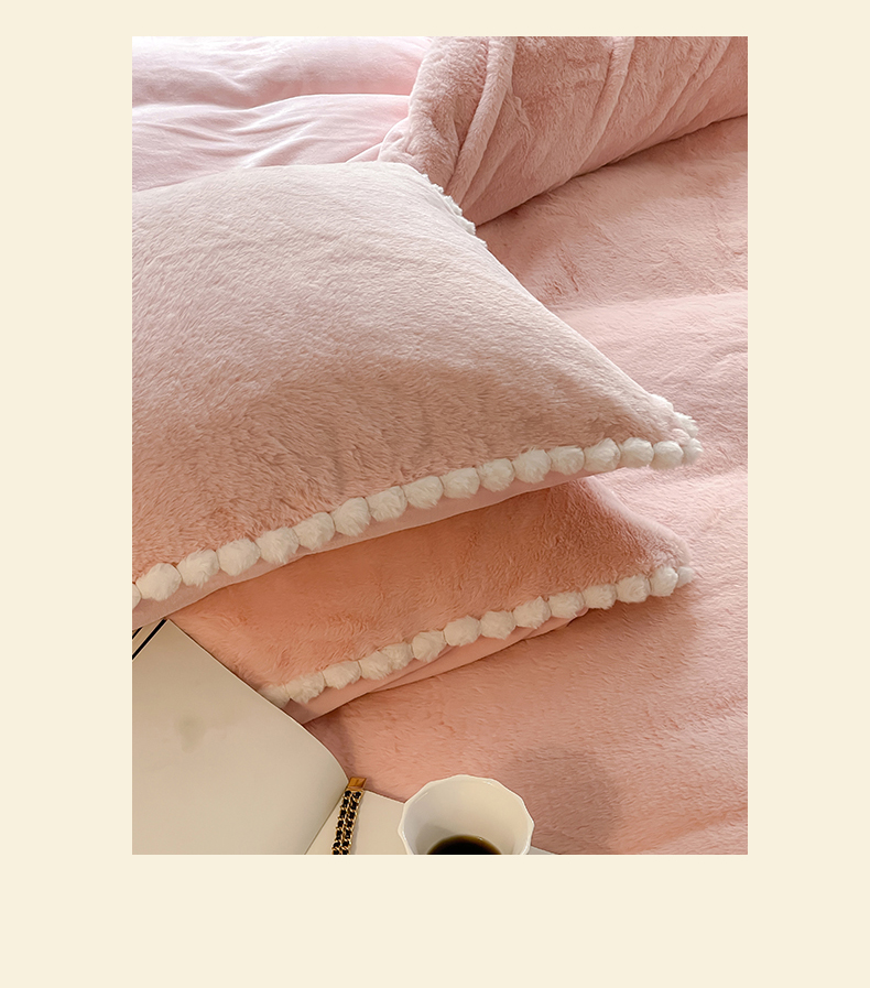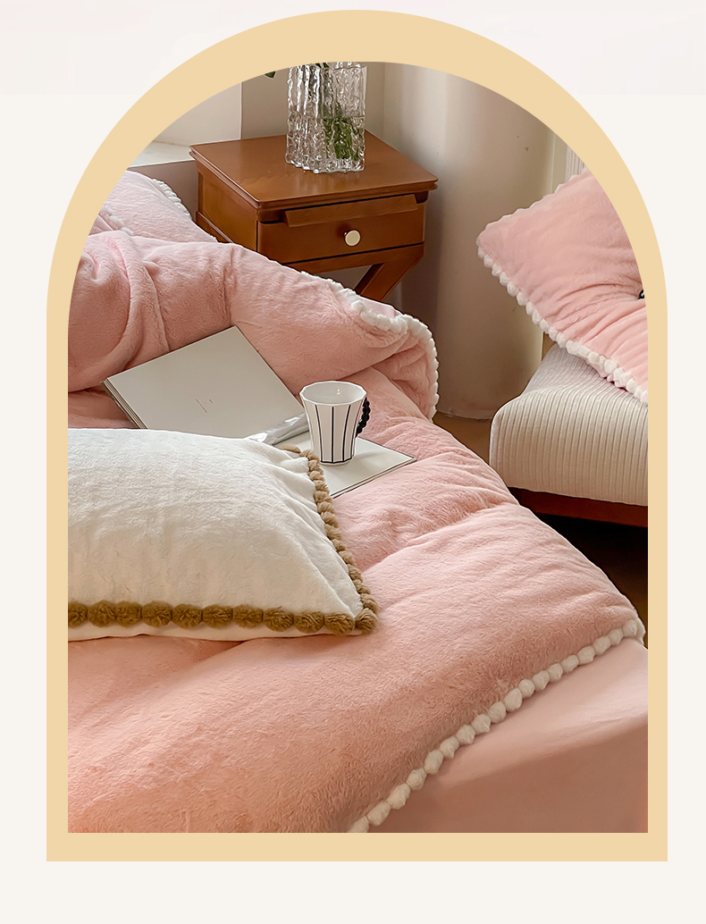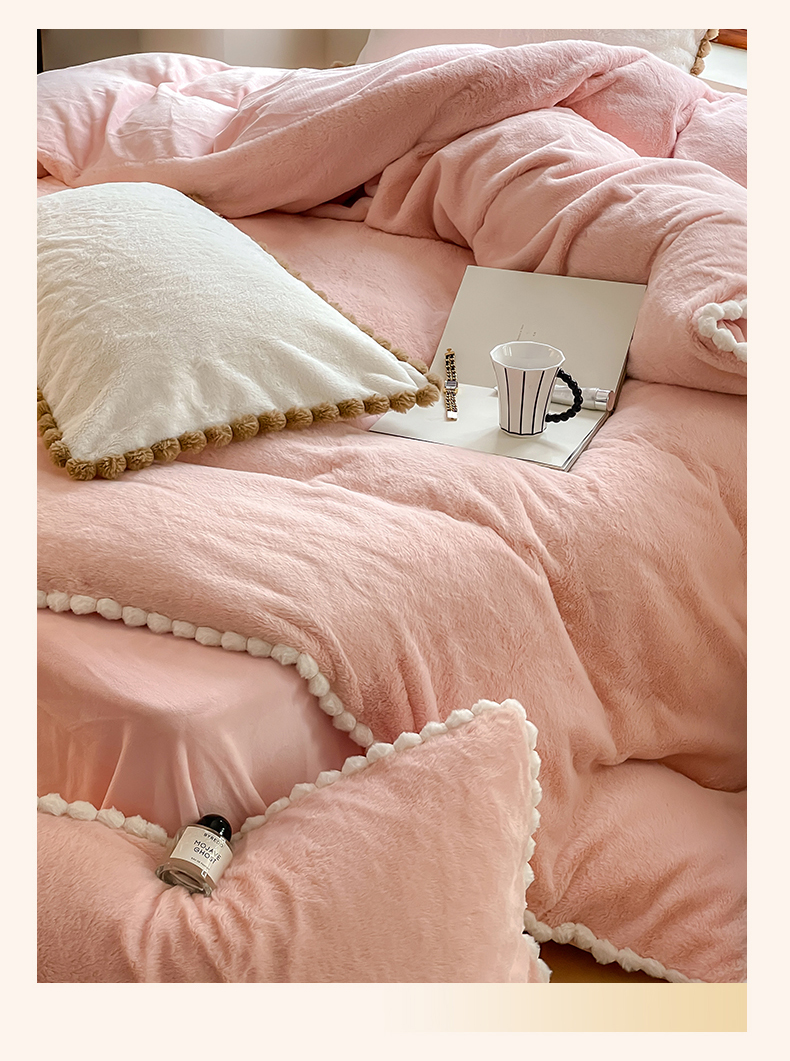 名品优仓 2023新款高克重兔绒边带球球款四件套 藕荷粉