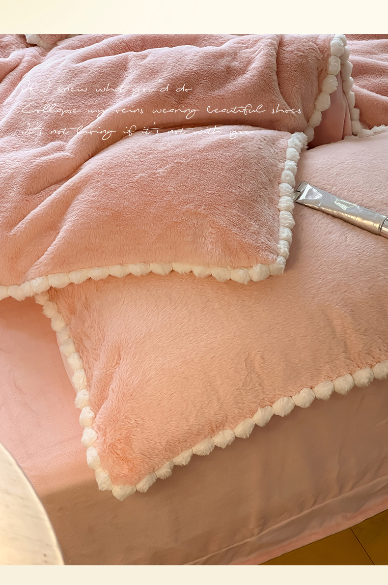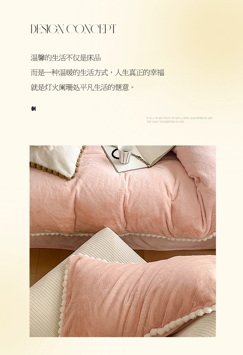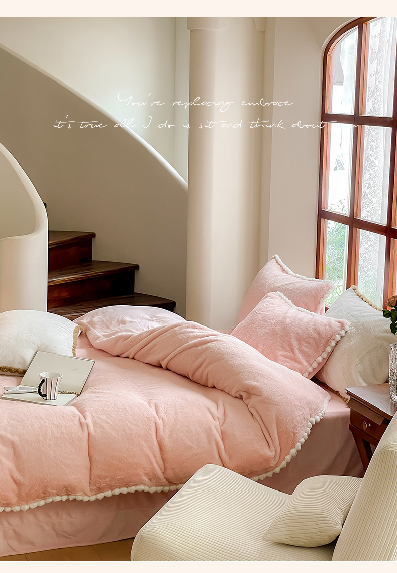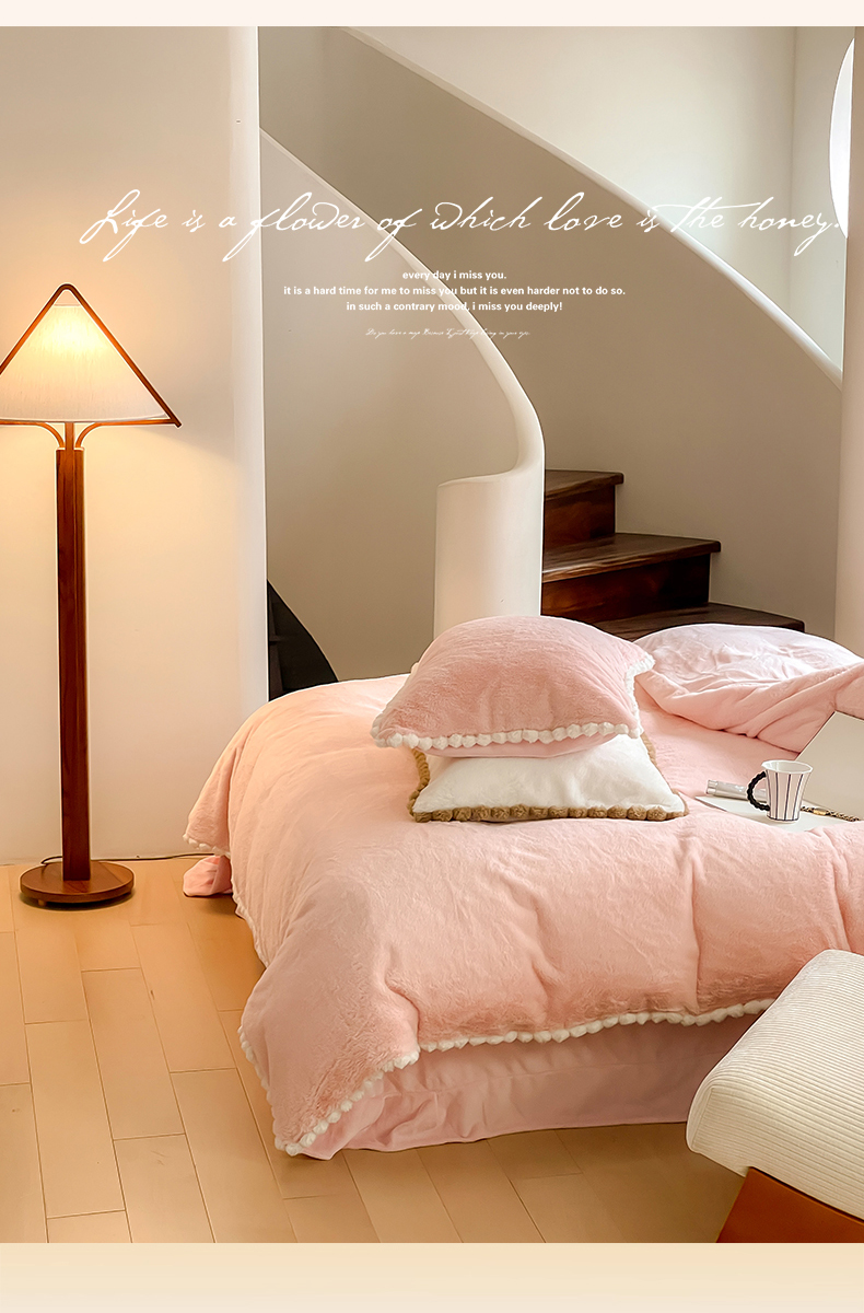 名品优仓 2023新款高克重兔绒边带球球款四件套 藕荷粉