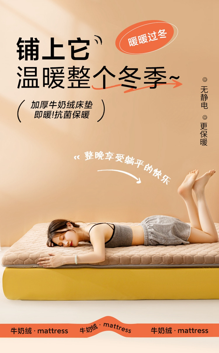 当前位置: 91家纺网 > 商品网购 > 床垫/床褥 > 普通床垫 > 元昊 2025新款加厚即暖抗菌牛奶绒记忆棉床垫 牛奶绒驼色