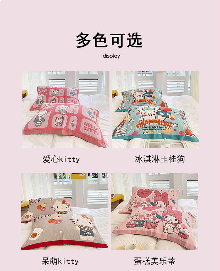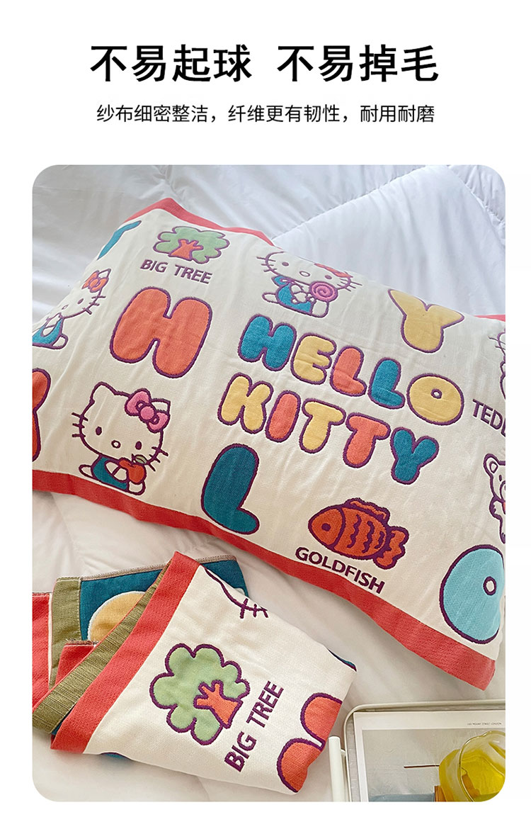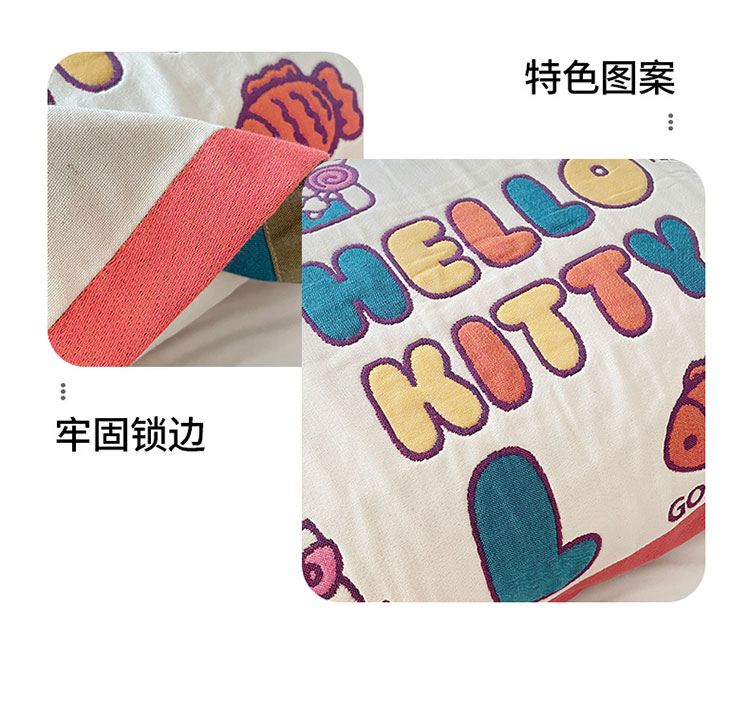 • 91家纺网 家纺一手货源 找家纺 麻依新款三丽鸥八层纱布全棉枕巾卡通一对装55*80 童趣kitty